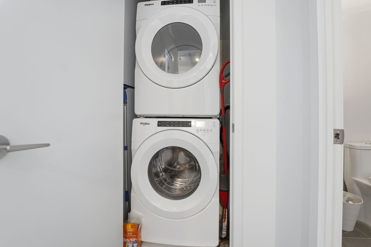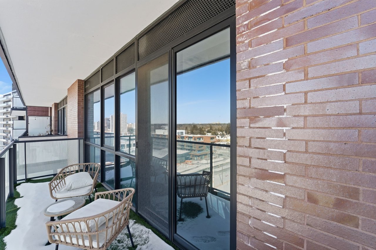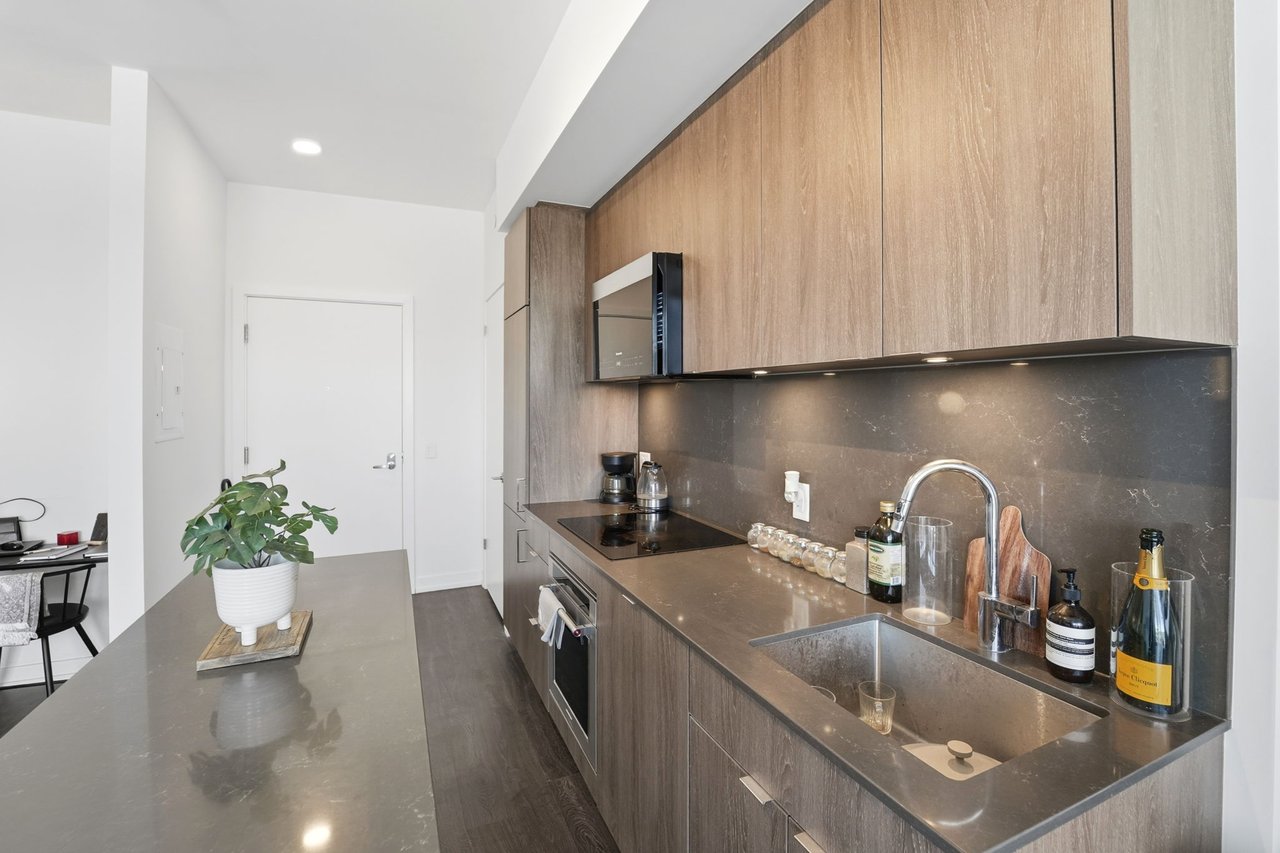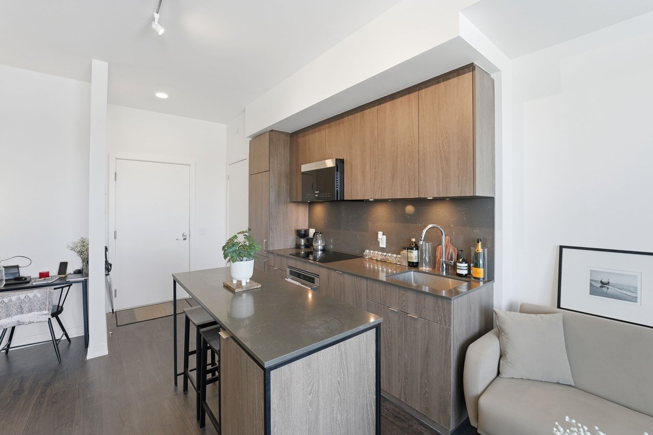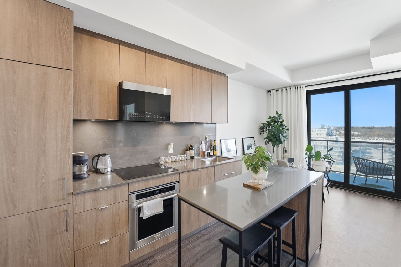 and floor-to-ceiling-style large windows for abundant natural light,plus a sleek kitchen with granite countertops, centre island, and built-in appliances. Enjoy in-suite laundry and an open balcony with city views. Building amenities include a gym/exercise room and party room, with