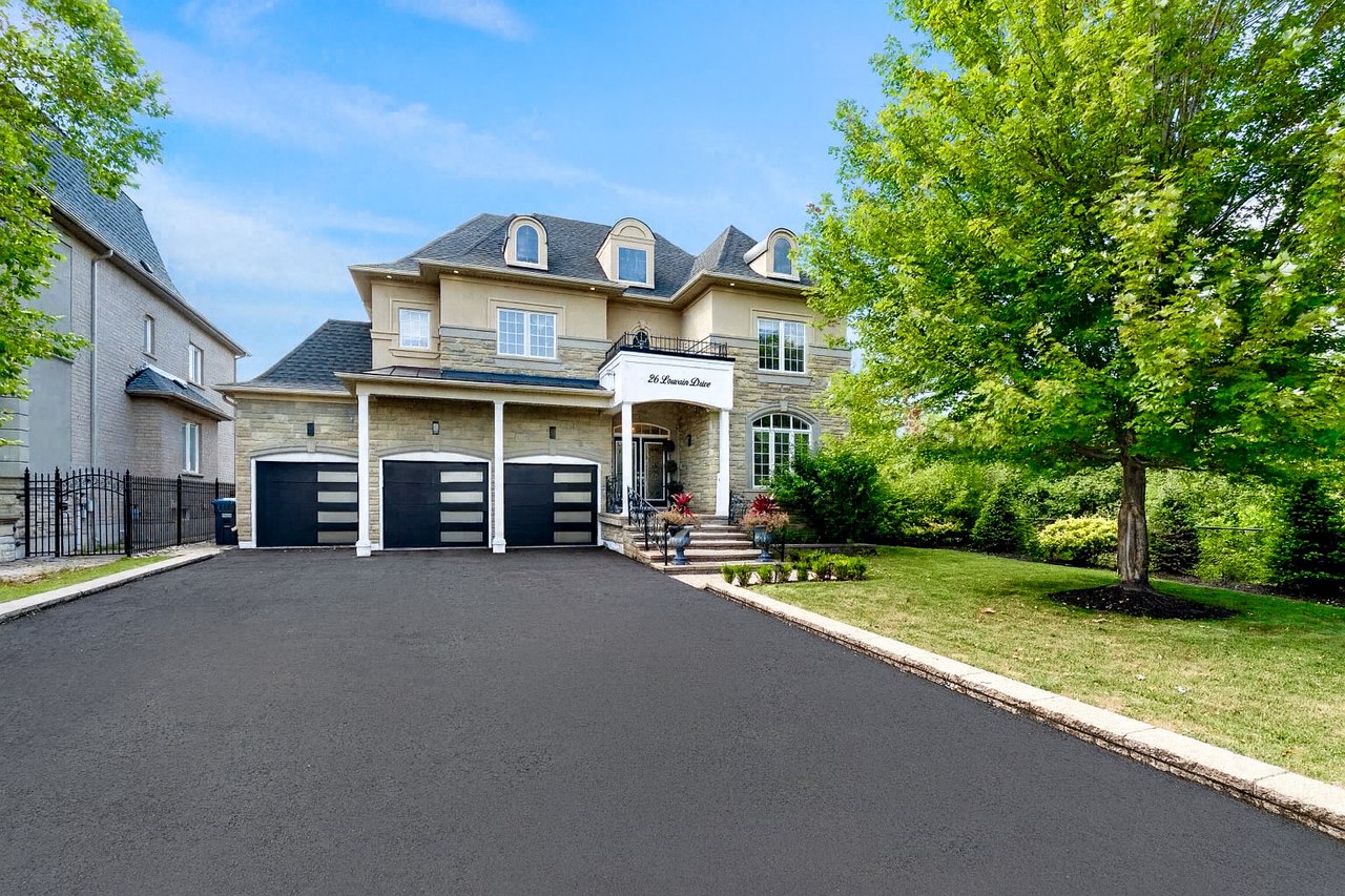 Welcome to 26 Louvain Dr, a rare offering in The Chateaus. This executive 6-bed, 6-bath residence boasts over 5,200 sq. ft. of finished living space on the community's largest pie-shaped lot. Highlights include a 4-car garage, a fully finished basement with in-law suite potential, and a bright, open-concept family room overlooking a private, professionally landscaped backyard oasis. Inside, you'll find a gourmet granite kitchen, wide-plank hardwood floors, elegant crown molding, and ensuite bathrooms for every bedroom. Major recent upgrades include a new AC and furnace (2023), roof (2024), owned hot water tank (2025), and newly paved driveway (2025). Perfectly positioned beside Spearhead Valley, this home offers the best of both worlds-family-friendly living and tranquil nature views. A truly exceptional opportunity to enjoy luxury, space, and privacy in one of Brampton's most sought-after neighbourhoods. Bring the whole family!