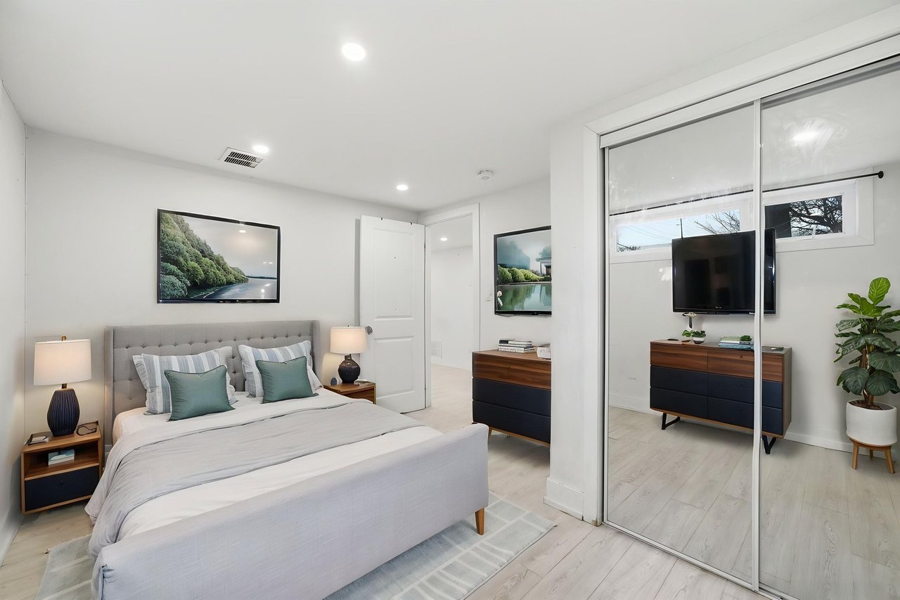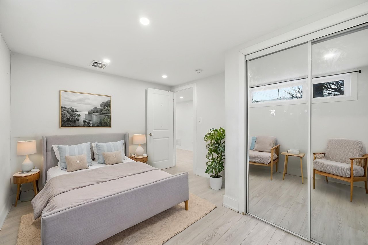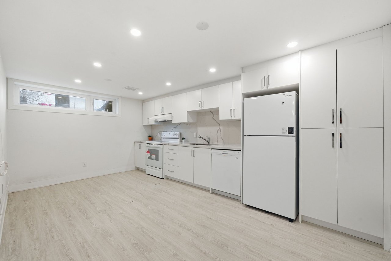 Welcome to this beautifully appointed 1-bedroom lower-level suite at 27 Kingsview Blvd offering a refined blend of comfort and convenience in one of Toronto's established residential enclaves. Thoughtfully designed with a functional, open-concept layout, this residence features a spacious bedroom and a contemporary kitchen complete with full-size appliances, including fridge, stove, and dishwasher. The suite is meticulously maintained and provides a quiet, private living environment ideal for professionals. Residents will appreciate the convenience of shared laundry facilities and the rare offering of up to two dedicated parking spaces. Perfectly situated in a serene, tree-lined neighborhood, this home offers excellent connectivity with nearby TTC transit options providing efficient access to downtown Toronto and surrounding areas. Enjoy close proximity to parks, walking trails, local shops, and everyday amenities, as well as quick access to major highways for effortless commuting. A superb opportunity to enjoy upscale, comfortable living in a highly desirable Toronto location. The unit is virtually staged.