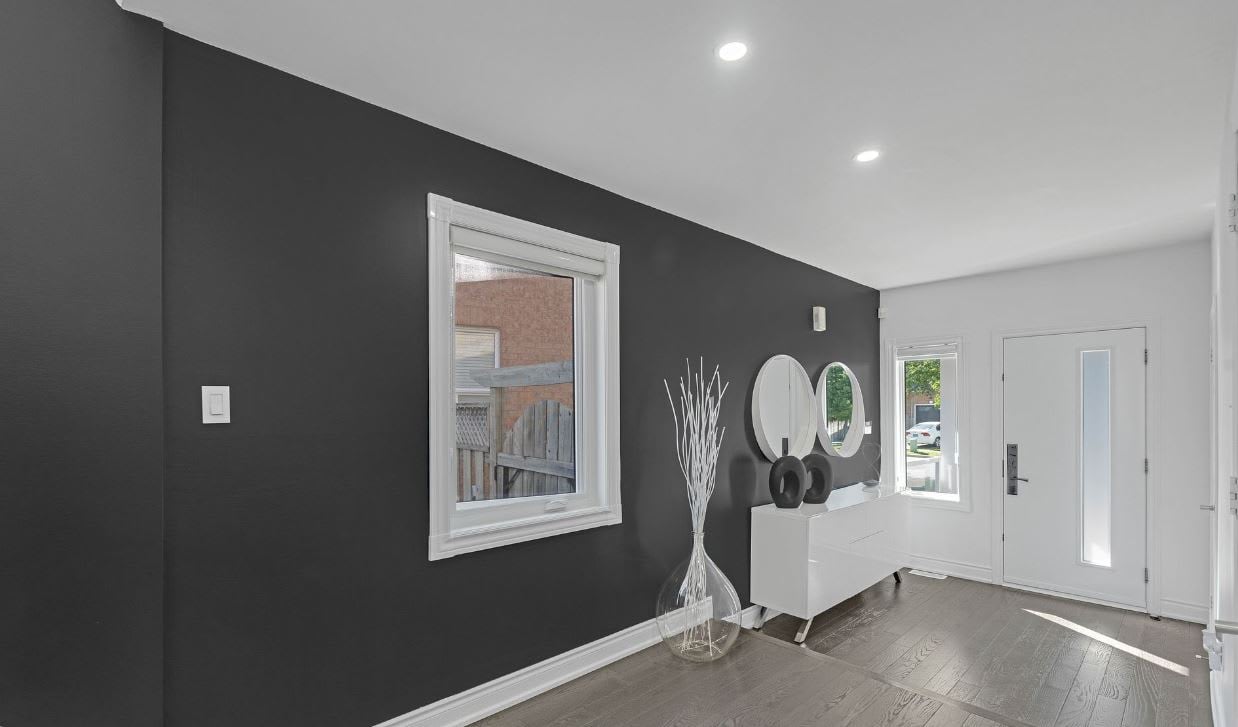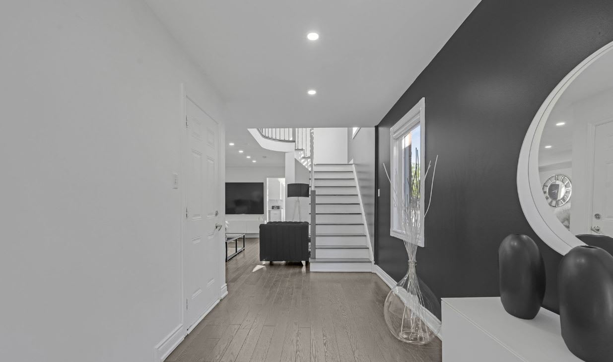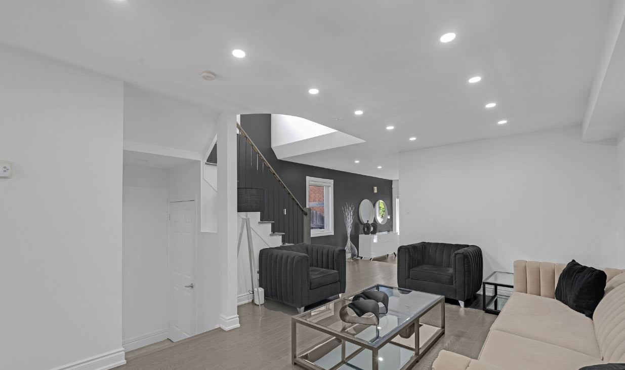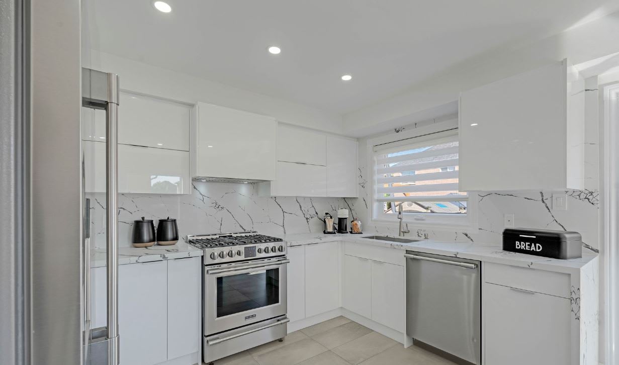 LIKE A SEMI (ATTACHED ONLY BY GARAGE) End Unit Townhome Nestled On A Premium Pie-Shaped Lot, Boasting A Spacious Rear Yard. Impeccably Renovated, This Inviting 2-Storey Residence Features 3 Bedrooms And 3 Bathrooms, Making It An Ideal Sanctuary For A Young Family Seeking A Move-In Ready Home. Step Inside To Find Gleaming Hardwood Floors Throughout. The Heart Of The Home Lies In The Newly Updated White Kitchen, Adorned With Luxurious Quartz Countertops And An Expensive Island, Perfect For Hosting Gatherings. With A Seamless Transition To The Large Rear Yard, Entertaining Becomes Effortless With Easy Access Through The Newer Large Sliding Doors. Upstairs, Three Generously Sized Bedrooms Await, Basking In Natural Light Pouring In Through Oversized Updated Windows. This End Unit Epitomizes The Spaciousness Of A Semi-Detached Home, With Recent Upgrades Including A Replaced Roof, Doors, And Windows, Alongside Modern, Sleek Renovations Throughout. Don't Miss Out On This Gem Firsthand!