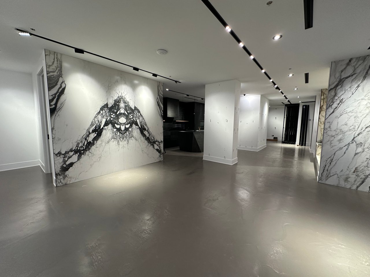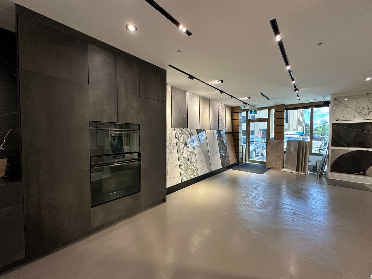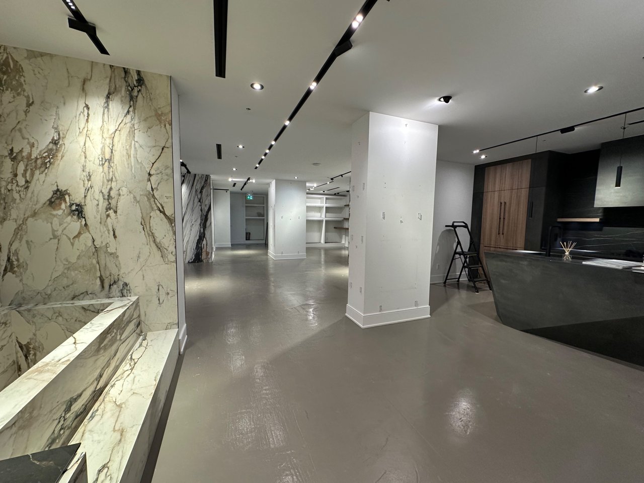 This spacious commercial retail unit in Vaughan offers just under 2000 square feet of prime space with modern luxurious finishes throughout. Previously used as a tile and stone showroom, the unit features high ceilings, accent lighting, and a flexible layout that allows for easy customization and expansion. A private office at the rear provides a quiet space for meetings or administration, while front and back entrances offer convenient access. This turnkey facility is ideal for a showroom, retail store, gallery, construction firm, or interior design studio. Located in a high-traffic area, this unit offers exceptional visibility and a professional environment for any growing business.