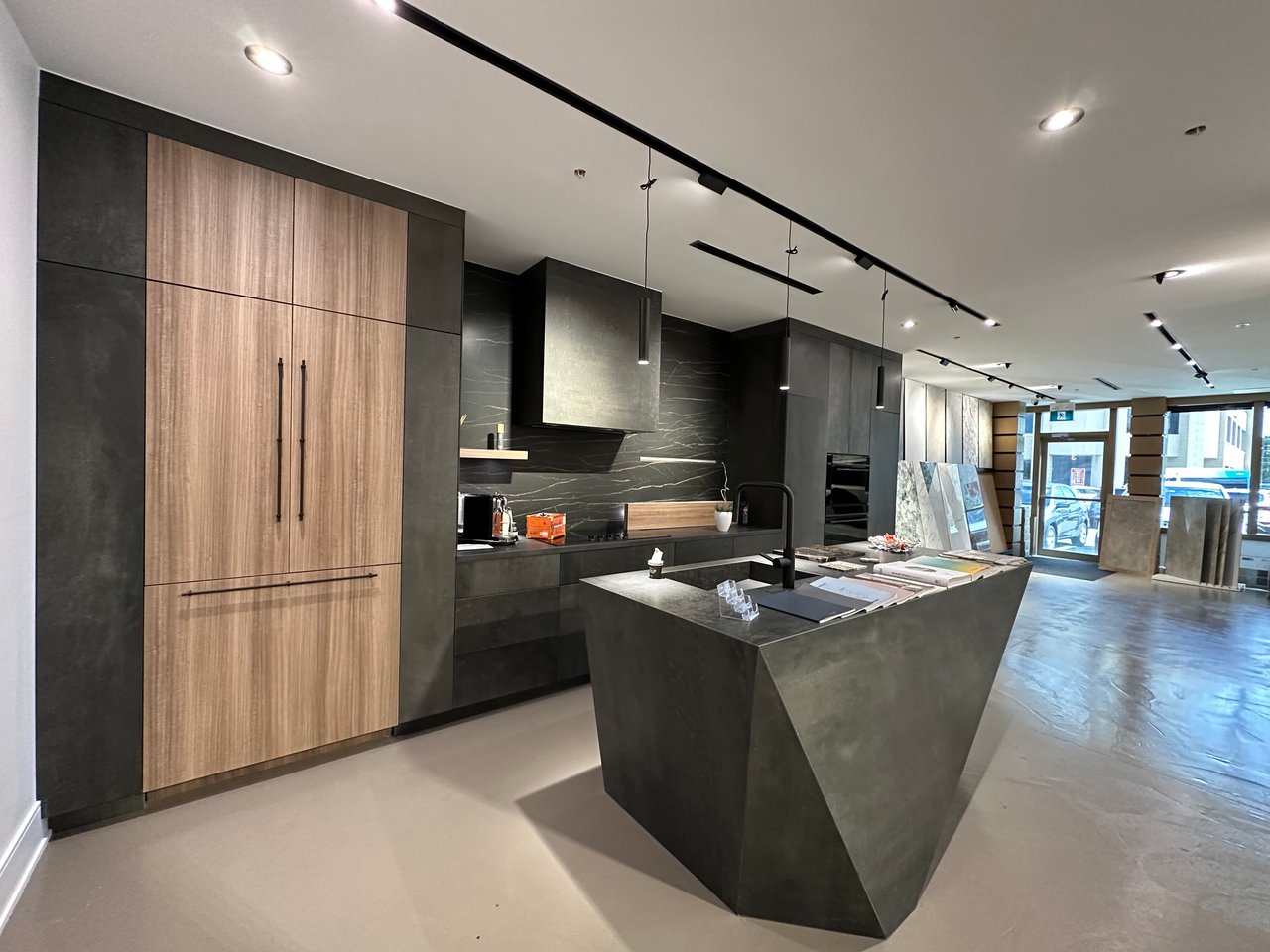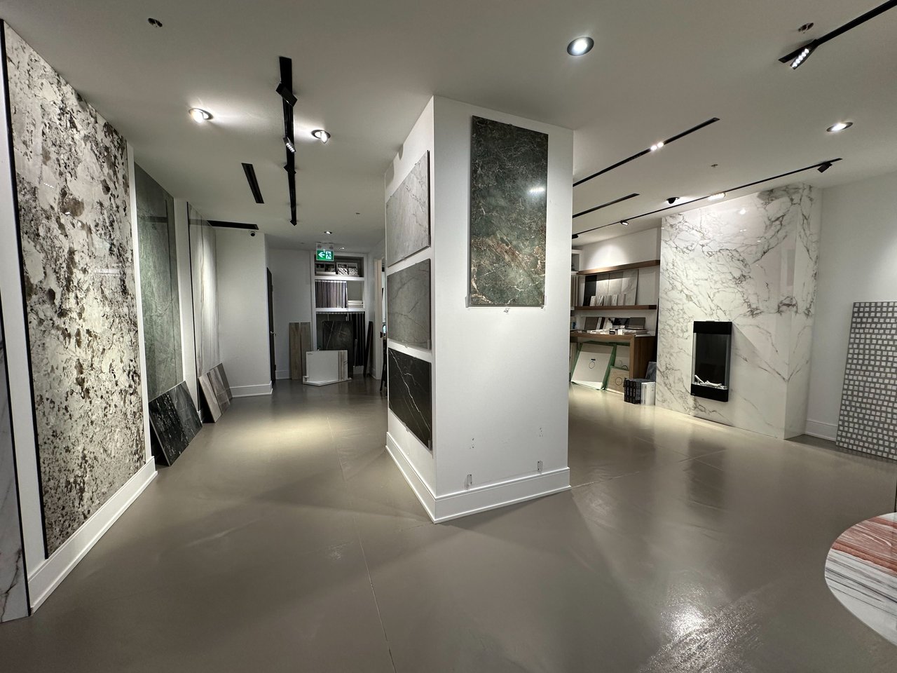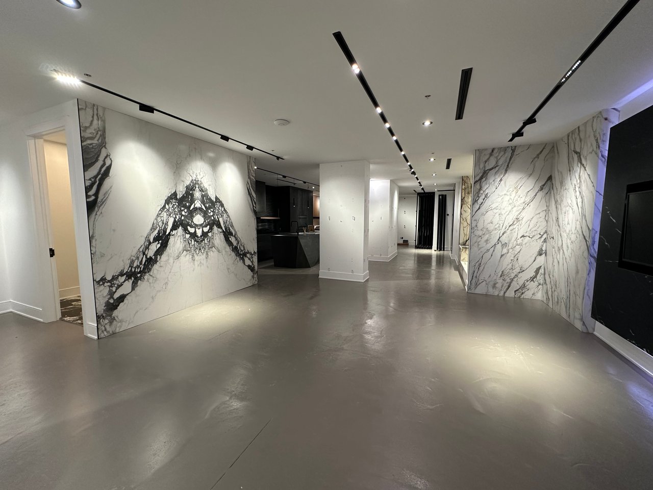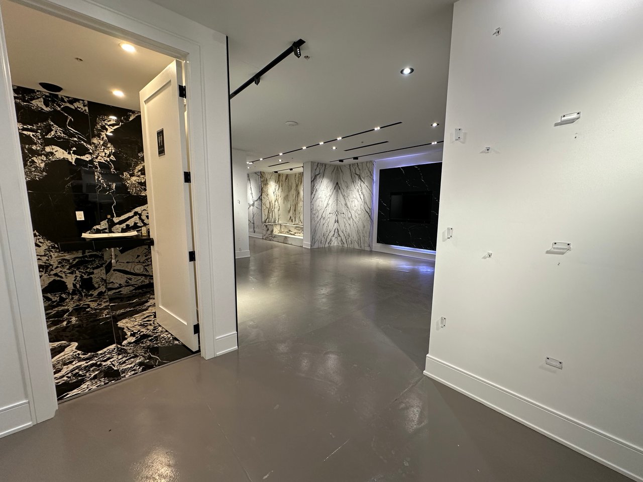 This spacious commercial retail unit in Vaughan offers just under 2000 square feet of prime space with modern luxurious finishes throughout. Previously used as a tile and stone showroom, the unit features high ceilings, accent lighting, and a flexible layout that allows for easy customization and expansion. A private office at the rear provides a quiet space for meetings or administration, while front and back entrances offer convenient access. This turnkey facility is ideal for a showroom, retail store, gallery, construction firm, or interior design studio. Located in a high-traffic area, this unit offers exceptional visibility and a professional environment for any growing business.