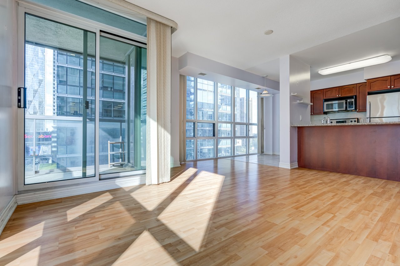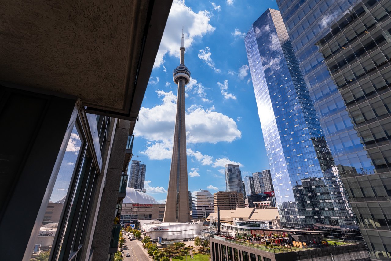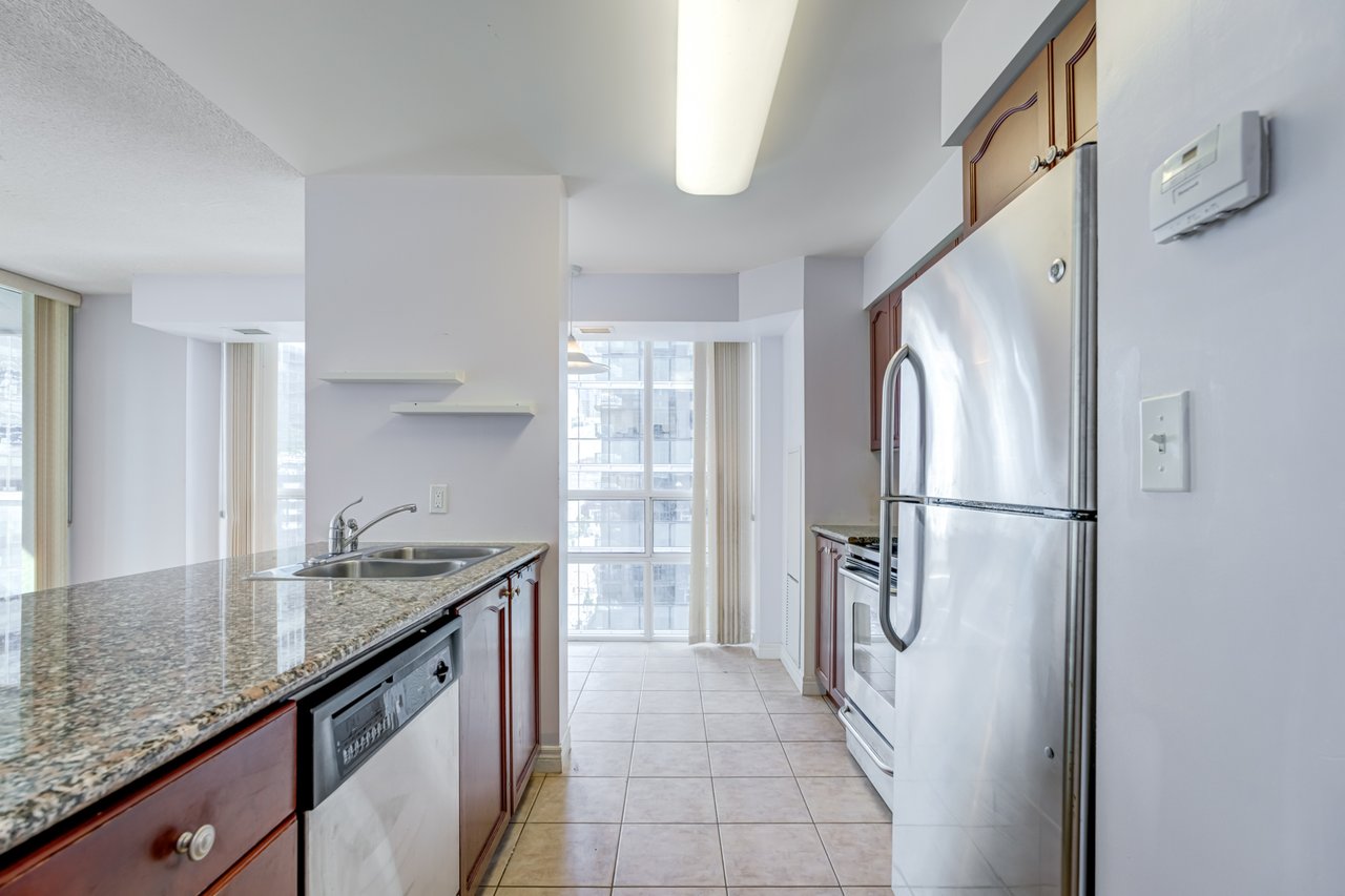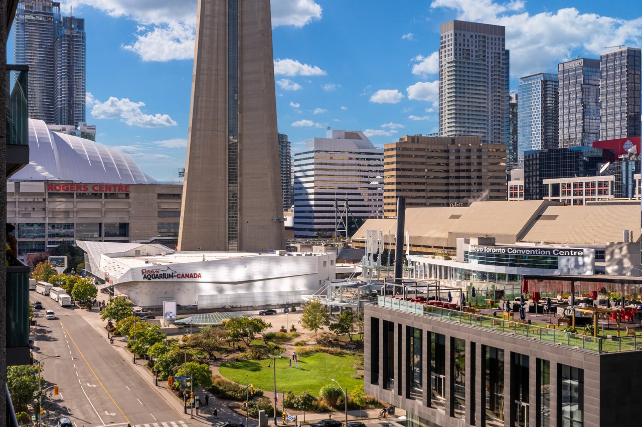 Welcome to Infinity I Condos! Centrally Located, Spacious 2 Bedroom, 2 Bathroom Suite Spanning Just Shy of 900 SF Of Functional Living Space. Generously Sized Bedrooms Both Offering Like-New Laminate Flooring. Primary Bedroom Retreat Offers 4 Pc Ensuite. Modern Kitchen Boasts Full-Sized Stainless Steel Appliances & Stone Countertops. Enjoy North & East-Facing Views In This Prime Downtown Location. Steps From all The City Has To Offer, Restaurants, Cafes, Parks, Waterfront, Scotiabank Arena, Rogers Centre & GO Transit/TTC All Just Steps Away.