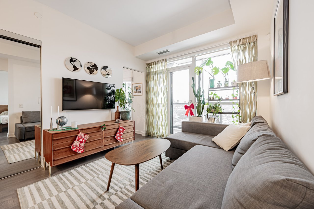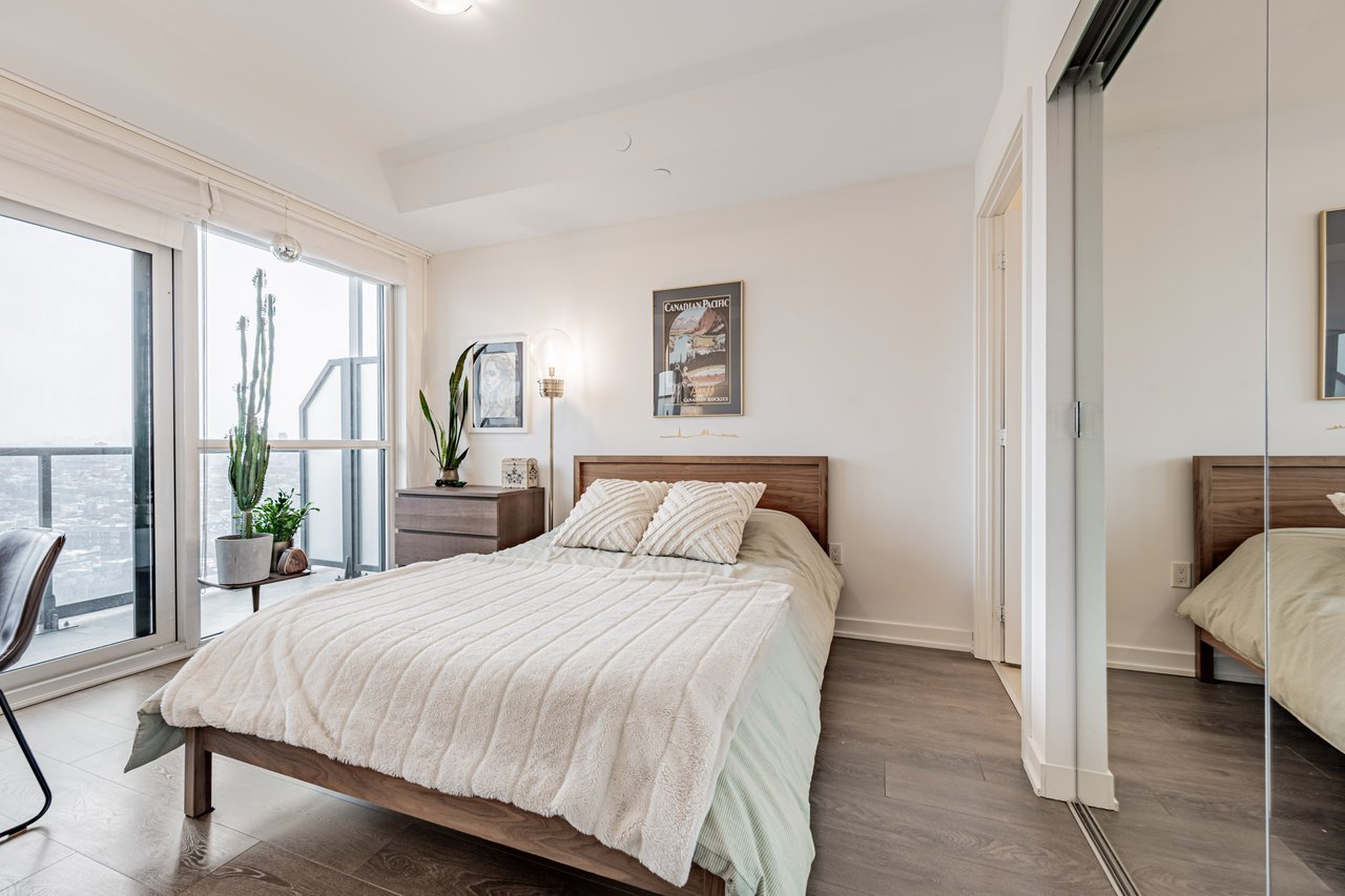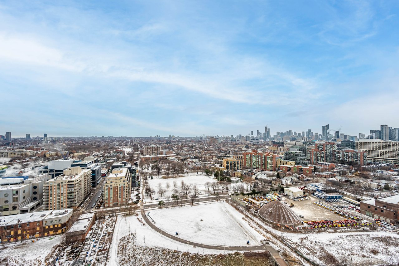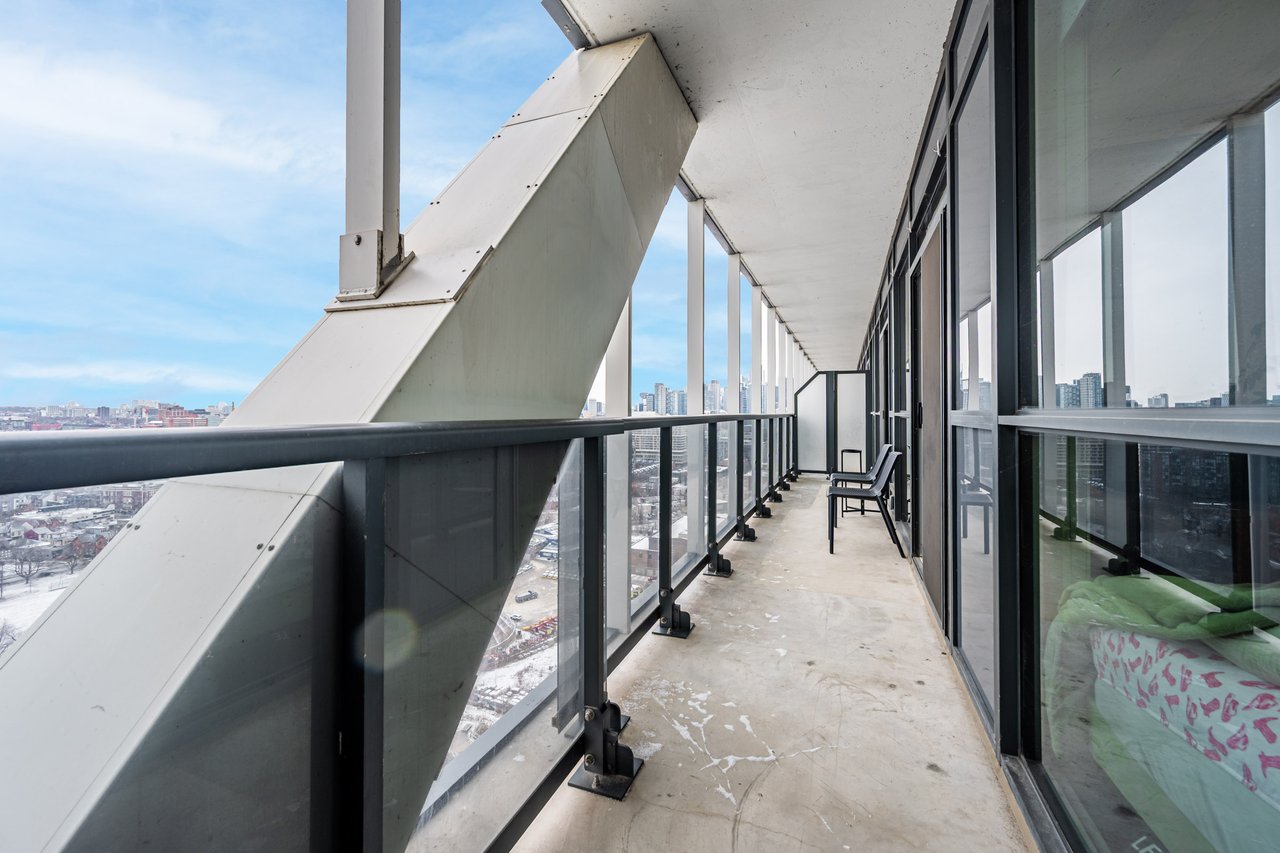 This Well-Laid-Out 2-Bedroom, 2-Bathroom Residence Features A Functional Split-Bedroom Floor Plan Across Approximately 688 Sq Ft, Ideal For Both Everyday Living And Hosting. The Open-Concept Living And Kitchen Area Is Wrapped In Floor-To-Ceiling Windows And Enhanced By 9-Foot Ceilings, Creating A Bright And Airy Feel Throughout. The Modern Kitchen Is Equipped With Full-Size Appliances, Ample Storage, And Clean Contemporary Finishes That Blend Seamlessly Into The Living Space. Step Out To The Expansive Balcony, A True Extension Of The Home Offering Unobstructed Views And Flexibility For Lounging, Dining, Or A Home Office Setup. Both Bedrooms Are Thoughtfully Positioned For Privacy And Include Generous Closet Space, While The Two Full Bathrooms Add Everyday Convenience. Located Just Steps From Liberty Village, Transit, Shops, Cafes, And Waterfront Trails, This Is A Move-In-Ready Opportunity In One Of Toronto's Most Connected Neighbourhoods.
