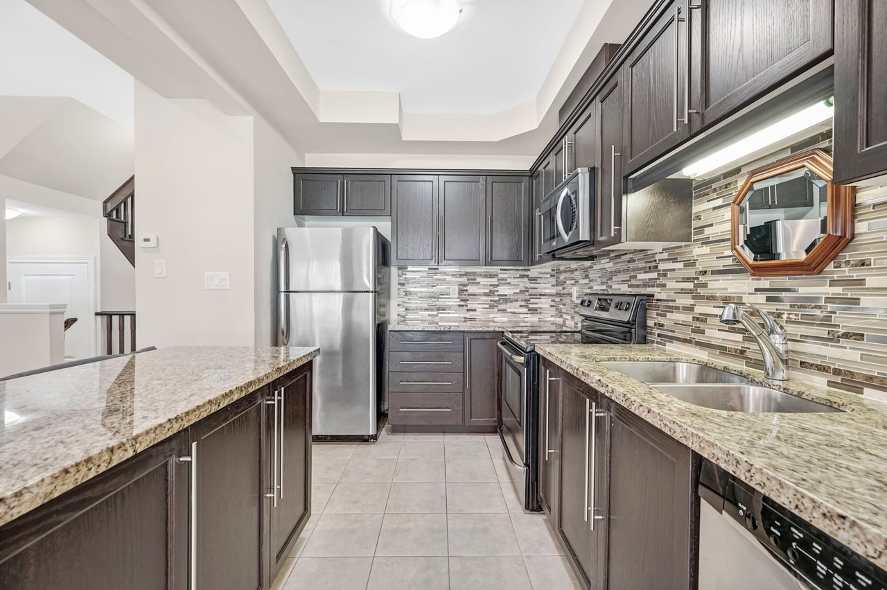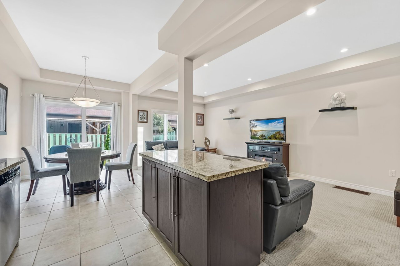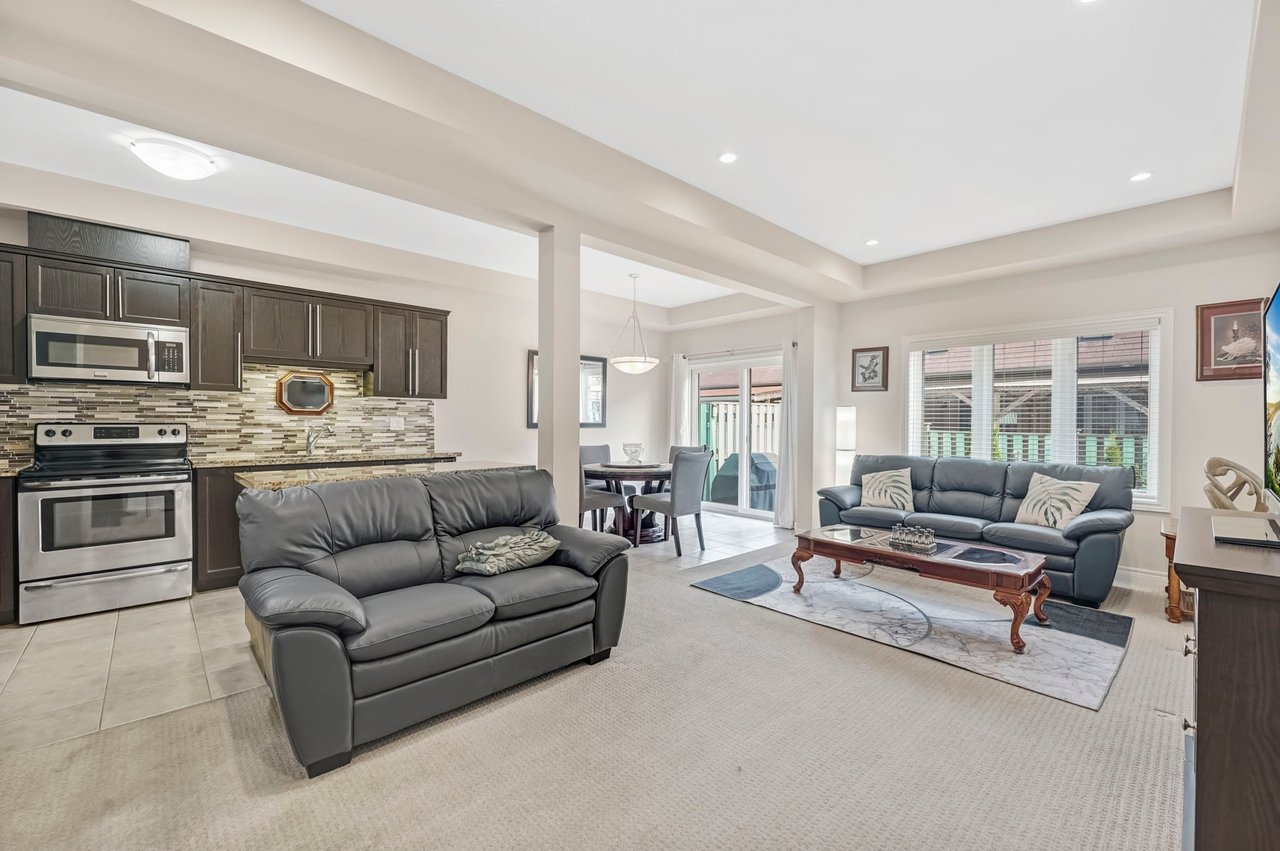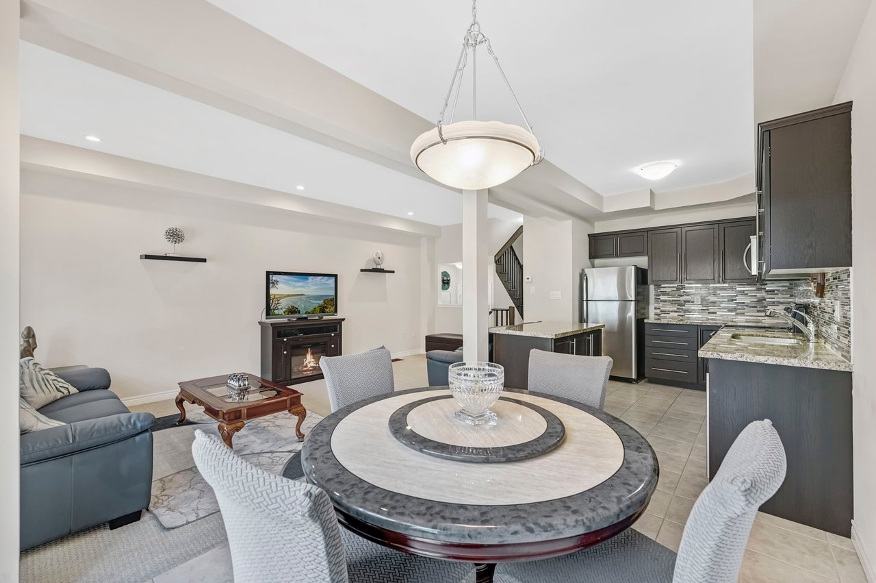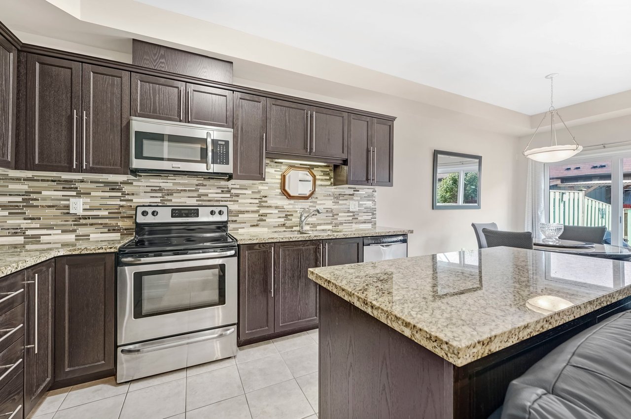 Welcome to this stunning Losani-built townhouse, offering a perfect blend of style, comfort, and convenience. The fabulous eat-in kitchen is a true showstopper, featuring custom cabinetry, soft-close drawers, granite countertops, stainless steel appliances, a movable granite island, and ceramic tile flooring. Step through the walk-out to a beautifully maintained backyard with a private patio - ideal for relaxing or entertaining. The open-concept living and dining area is bright and inviting, showcasing a large bay window, custom blinds, upgraded lighting, and a convenient 2-piece powder room. Upstairs, the upgraded oak staircase leads to three spacious bedrooms, including a serene primary retreat complete with Berber carpet, a walk-in closet with natural light, and a luxurious 4-piece ensuite. Enjoy the oversized subway tile shower, soaker tub, and ample storage. The additional bedrooms also feature Berber carpets and large closets, while the main 4-piece bath mirrors the elegant finishes of the ensuite. A convenient upper-level laundry room adds to the homes functionality. With an automatic garage, inside entry, and fantastic curb appeal, this home truly has it all. Don't miss your chance to make it yours!