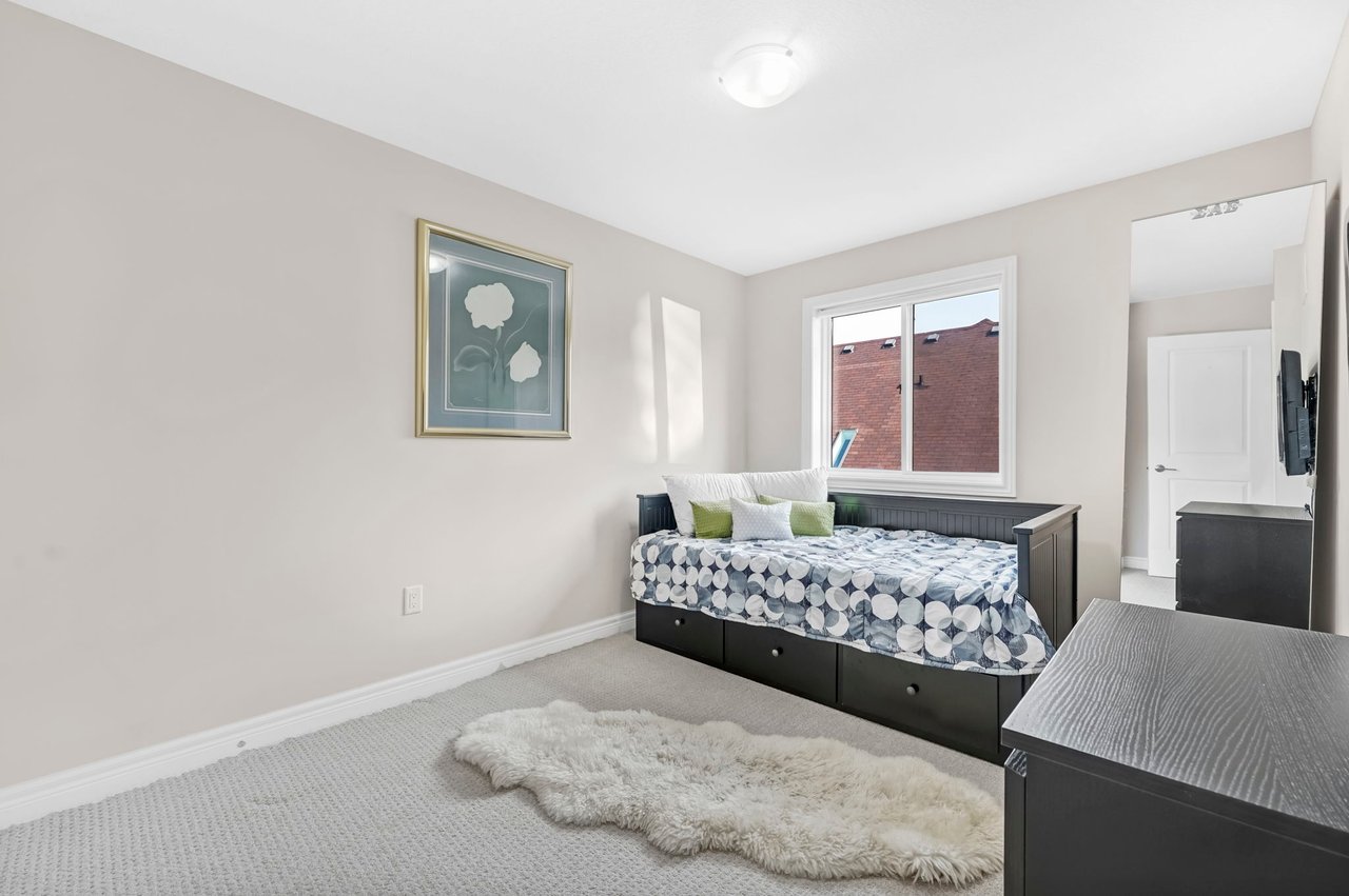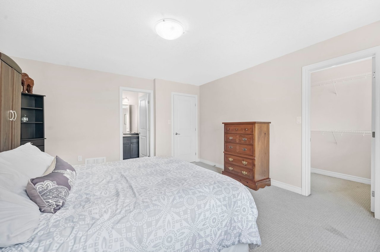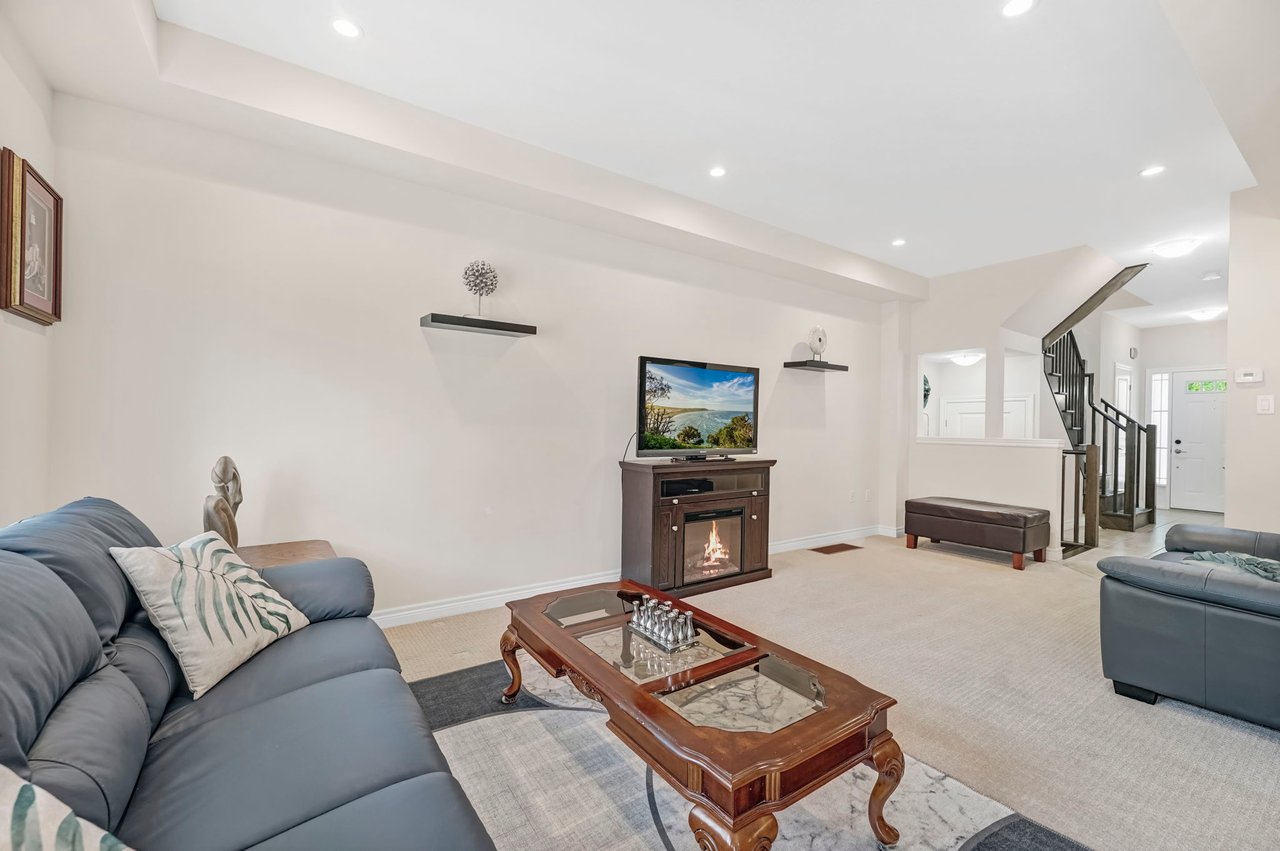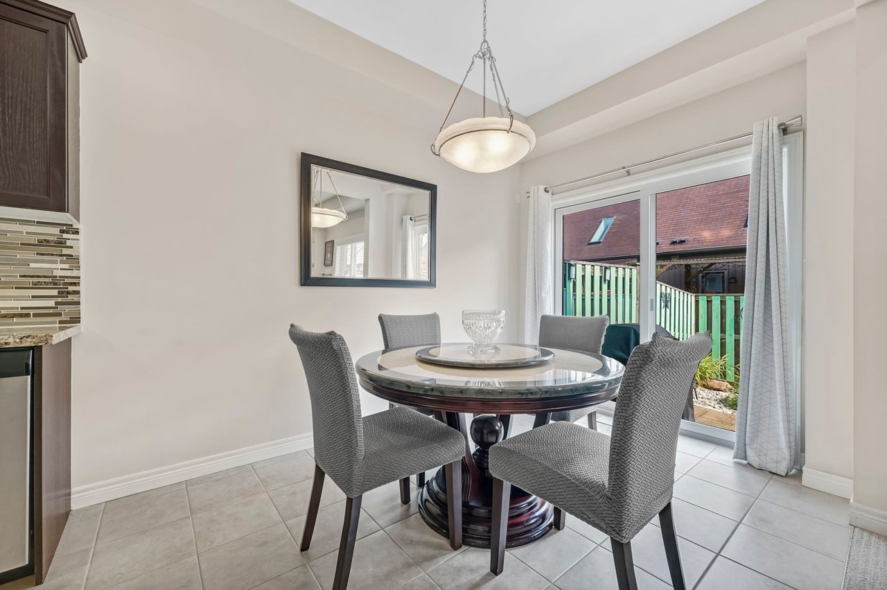 Welcome to this stunning Losani-built townhouse, offering a perfect blend of style, comfort, and convenience. The fabulous eat-in kitchen is a true showstopper, featuring custom cabinetry, soft-close drawers, granite countertops, stainless steel appliances, a movable granite island, and ceramic tile flooring. Step through the walk-out to a beautifully maintained backyard with a private patio - ideal for relaxing or entertaining. The open-concept living and dining area is bright and inviting, showcasing a large bay window, custom blinds, upgraded lighting, and a convenient 2-piece powder room. Upstairs, the upgraded oak staircase leads to three spacious bedrooms, including a serene primary retreat complete with Berber carpet, a walk-in closet with natural light, and a luxurious 4-piece ensuite. Enjoy the oversized subway tile shower, soaker tub, and ample storage. The additional bedrooms also feature Berber carpets and large closets, while the main 4-piece bath mirrors the elegant finishes of the ensuite. A convenient upper-level laundry room adds to the homes functionality. With an automatic garage, inside entry, and fantastic curb appeal, this home truly has it all. Don't miss your chance to make it yours!