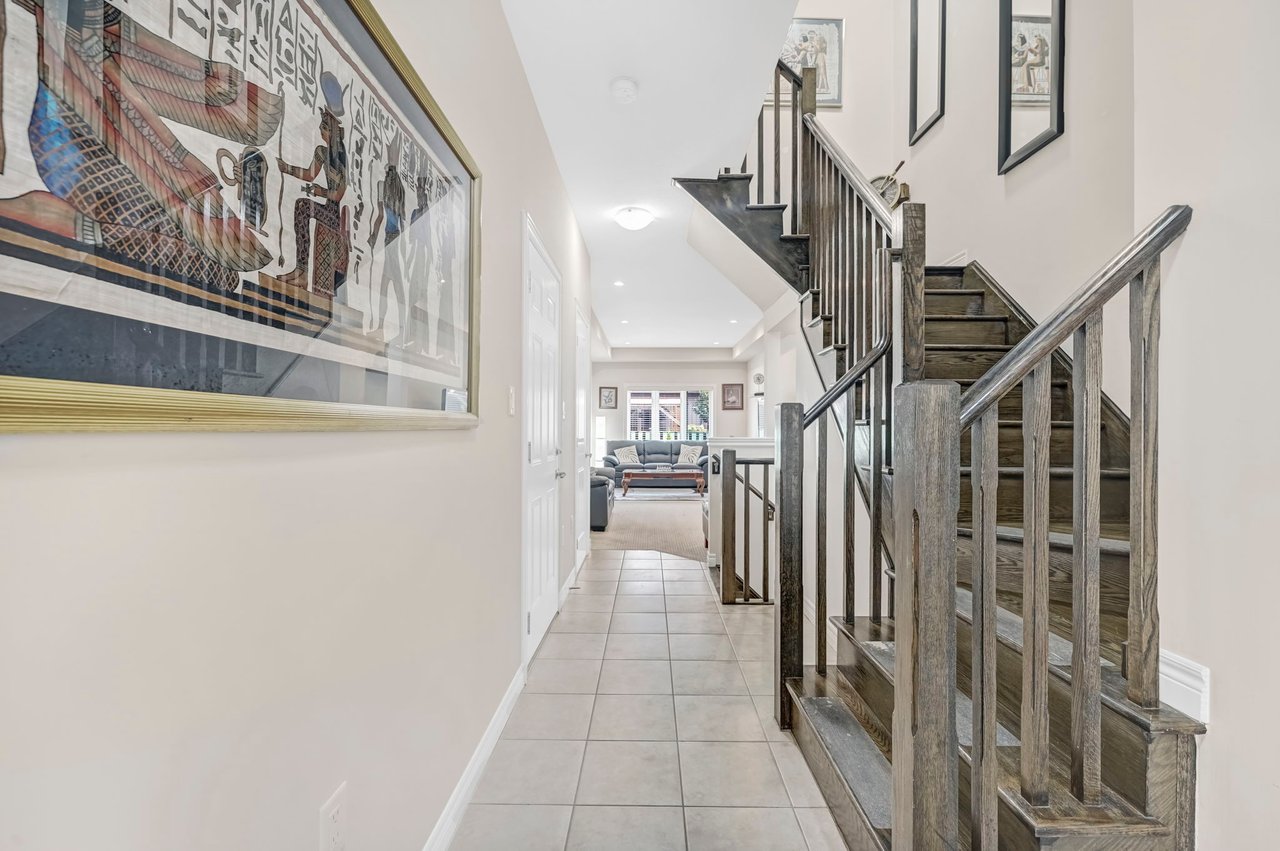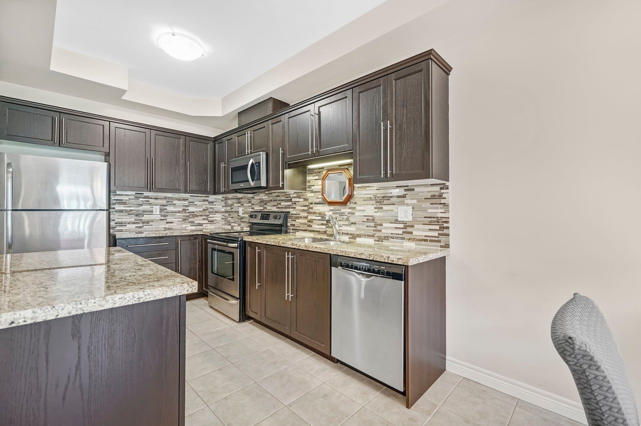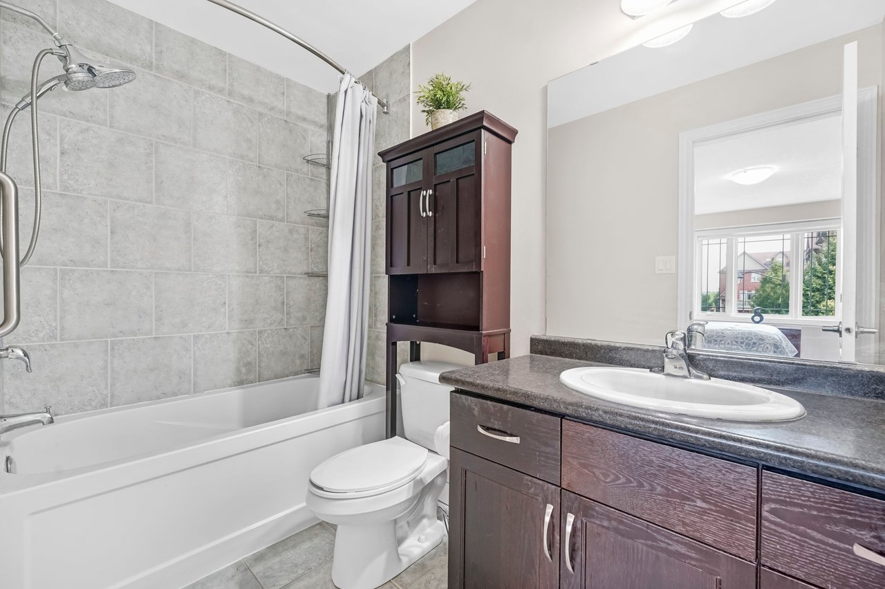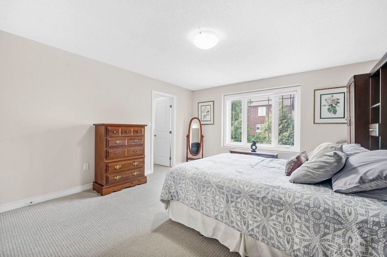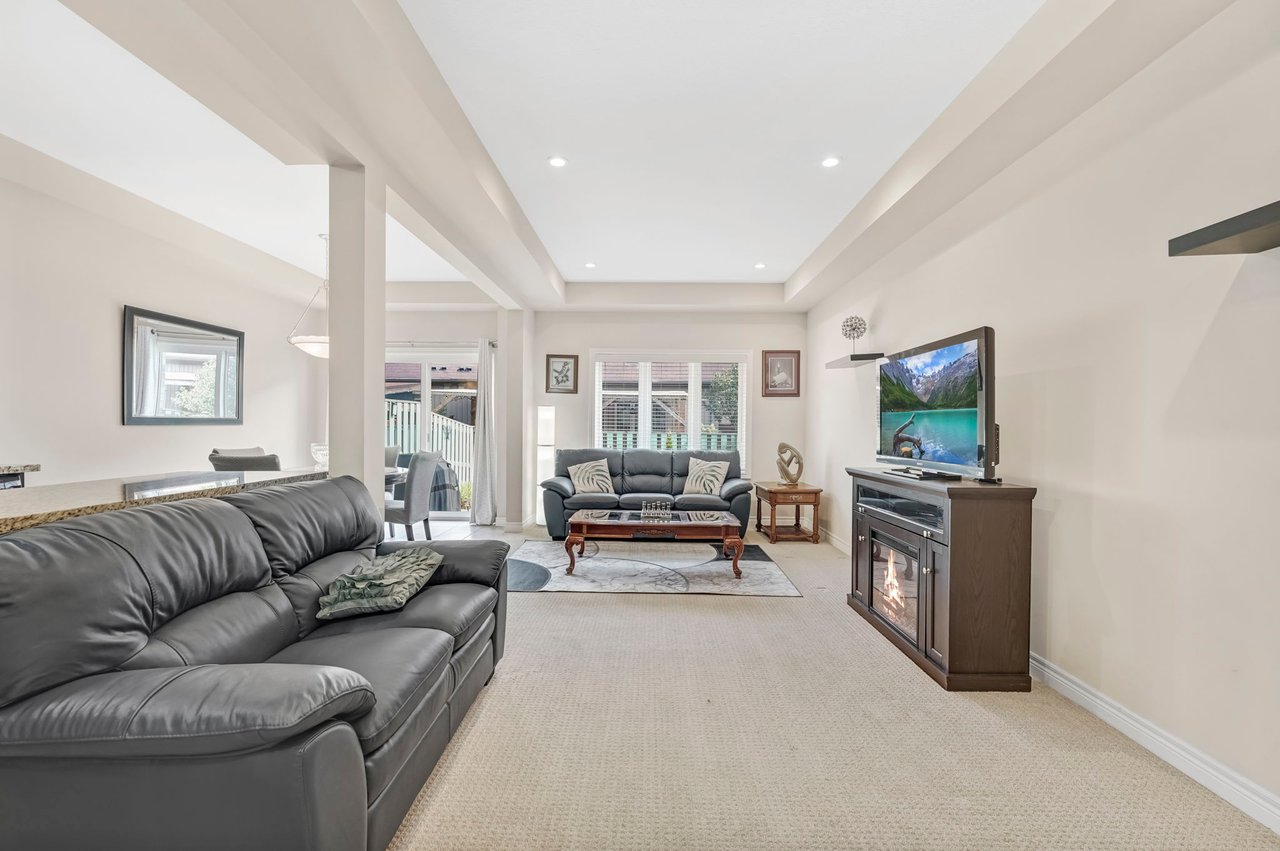Welcome to this stunning Losani-built townhouse, offering a perfect blend of style, comfort, and convenience. The fabulous eat-in kitchen is a true showstopper, featuring custom cabinetry, soft-close drawers, granite countertops, stainless steel appliances, a movable granite island, and ceramic tile flooring. Step through the walk-out to a beautifully maintained backyard with a private patio - ideal for relaxing or entertaining. The open-concept living and dining area is bright and inviting, showcasing a large bay window, custom blinds, upgraded lighting, and a convenient 2-piece powder room. Upstairs, the upgraded oak staircase leads to three spacious bedrooms, including a serene primary retreat complete with Berber carpet, a walk-in closet with natural light, and a luxurious 4-piece ensuite. Enjoy the oversized subway tile shower, soaker tub, and ample storage. The additional bedrooms also feature Berber carpets and large closets, while the main 4-piece bath mirrors the elegant finishes of the ensuite. A convenient upper-level laundry room adds to the homes functionality. With an automatic garage, inside entry, and fantastic curb appeal, this home truly has it all. Don't miss your chance to make it yours!