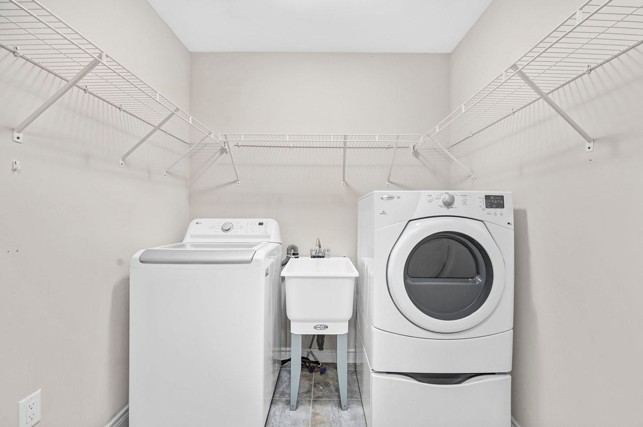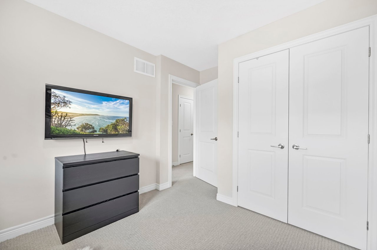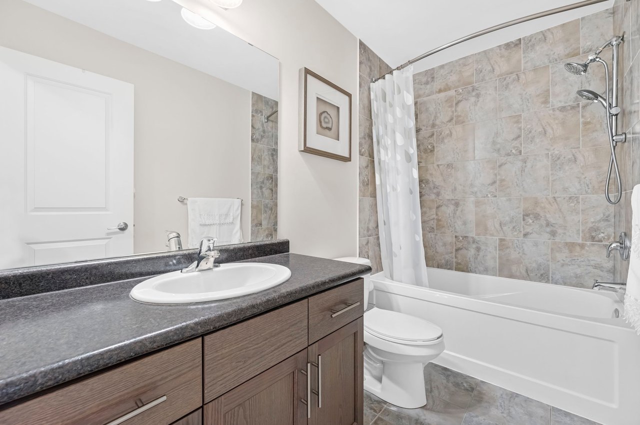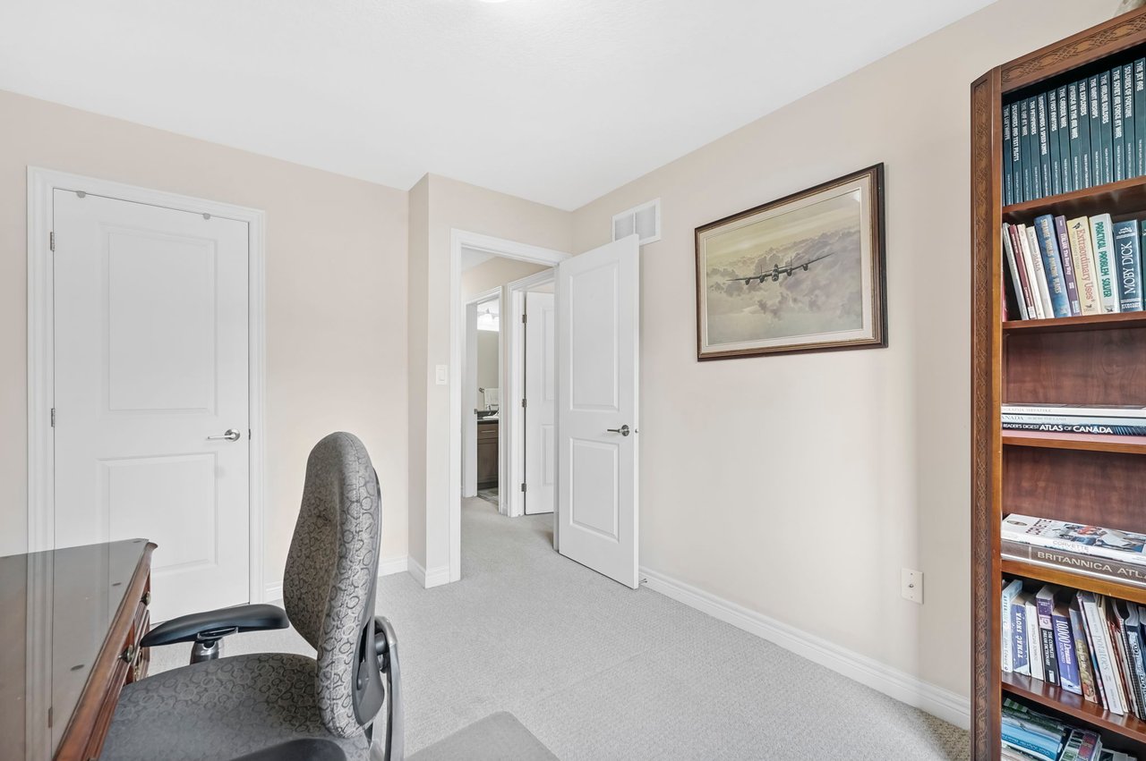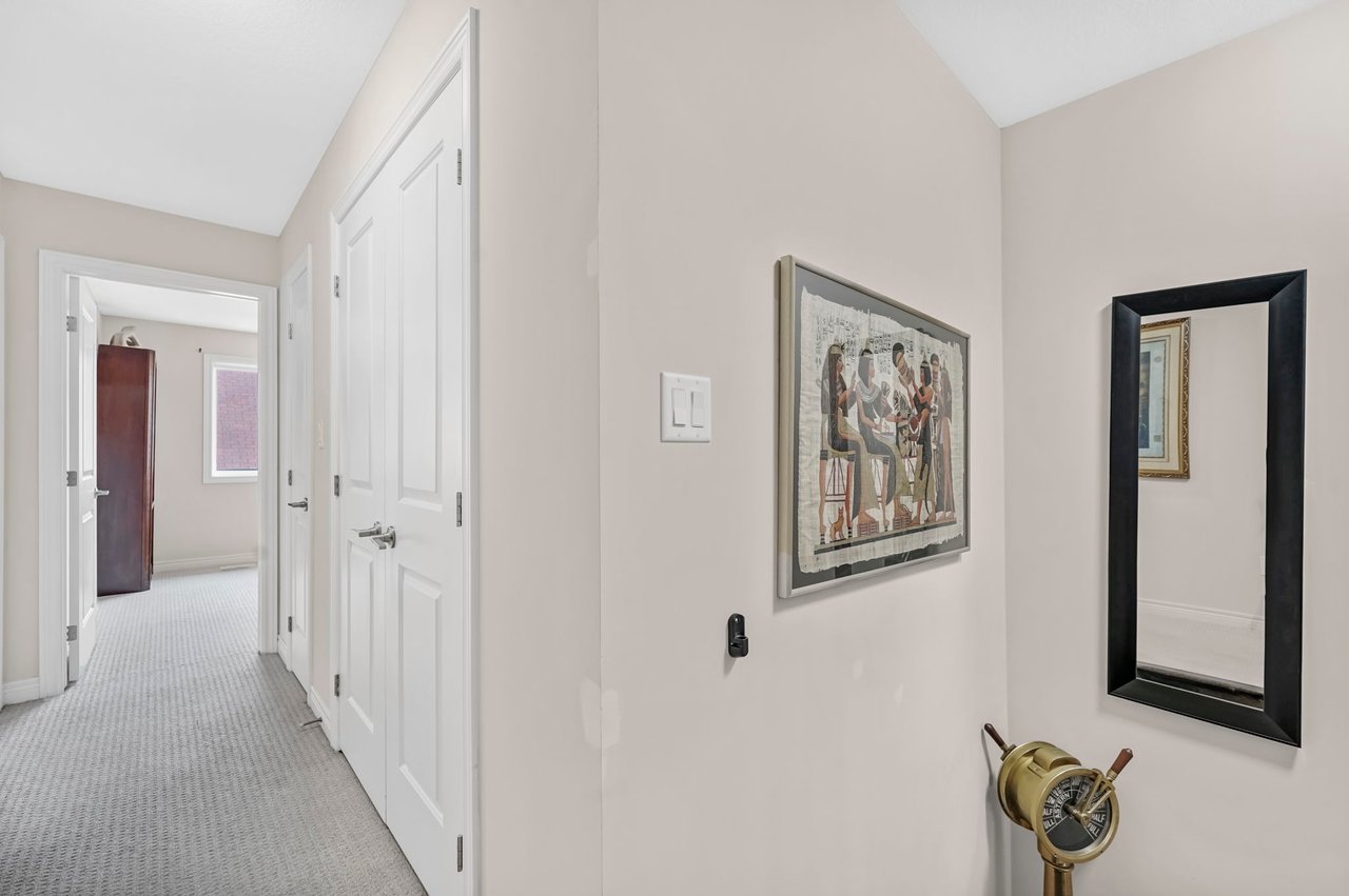 Welcome to this stunning Losani-built townhouse, offering a perfect blend of style, comfort, and convenience. The fabulous eat-in kitchen is a true showstopper, featuring custom cabinetry, soft-close drawers, granite countertops, stainless steel appliances, a movable granite island, and ceramic tile flooring. Step through the walk-out to a beautifully maintained backyard with a private patio - ideal for relaxing or entertaining. The open-concept living and dining area is bright and inviting, showcasing a large bay window, custom blinds, upgraded lighting, and a convenient 2-piece powder room. Upstairs, the upgraded oak staircase leads to three spacious bedrooms, including a serene primary retreat complete with Berber carpet, a walk-in closet with natural light, and a luxurious 4-piece ensuite. Enjoy the oversized subway tile shower, soaker tub, and ample storage. The additional bedrooms also feature Berber carpets and large closets, while the main 4-piece bath mirrors the elegant finishes of the ensuite. A convenient upper-level laundry room adds to the homes functionality. With an automatic garage, inside entry, and fantastic curb appeal, this home truly has it all. Don't miss your chance to make it yours!