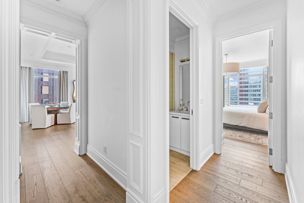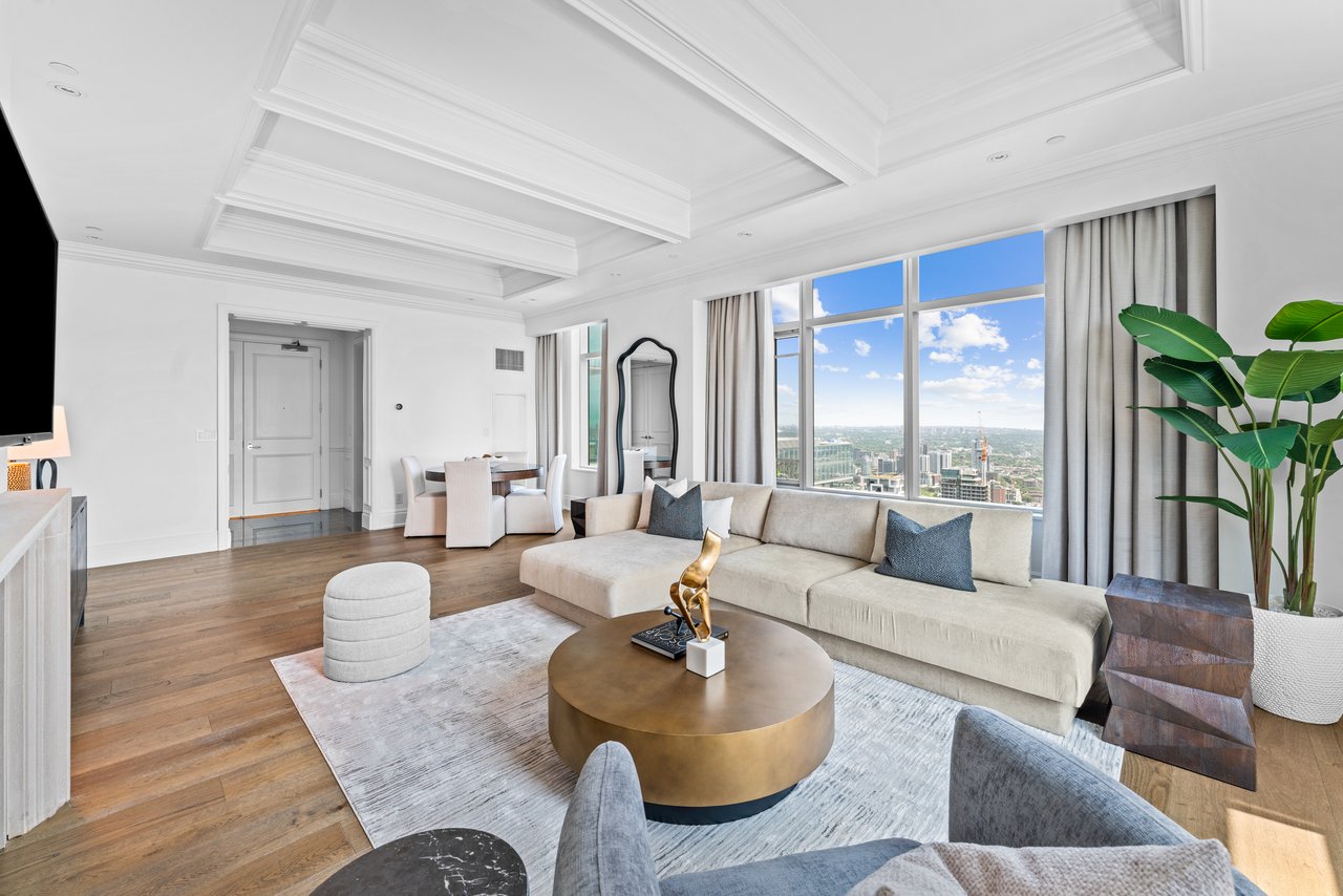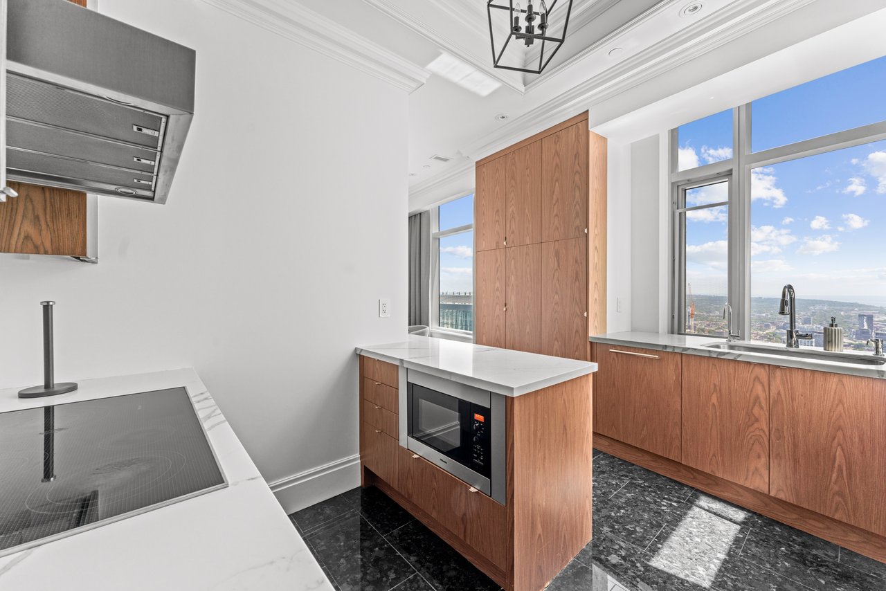 Welcome To The St. Regis Residences - Luxury Living At Its Finest! Impeccably Finished & Beautifully Appointed Corner Suite Boasts Highly Sought After South Exposure With Sweeping Lake & City Views. Suite 4804 Is Situated On The Highest Floor This Plan Is Offered - Spanning Just Shy Of 1,900 SF With 2 Bedrooms & 2 Full Bathrooms. Grand, Open Concept Living & Dining Rooms Are An Entertainers Dream - Boasting 10.5 Ft Coffered Ceilings, Wainscotting, & Designer Finishes Throughout. Primary Bedroom Retreat Offers Generously Sized Double Closets & Spa-Like 6pc. Ensuite With Large Free Standing Soaker Bathtub. All Light Fixtures & Window Coverings [Drapery/Sheers] Included. Chefs Kitchen Offers B/I Miele Appliances, Downsview Cabinetry, & Eat In Breakfast Area. 1 Locker Included & Valet/Parking Available. Enjoy Daily Access To Five Star Hotel Amenities: 24Hr. Concierge, Spa, Indoor Salt Water Pool, Sauna, State Of The Art Fitness Centre, Valet & Visitor Parking, As Well As The Private Residential Sky Lobby & Terrace On 32nd Floor.