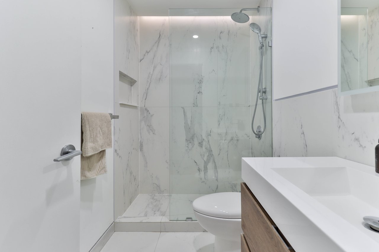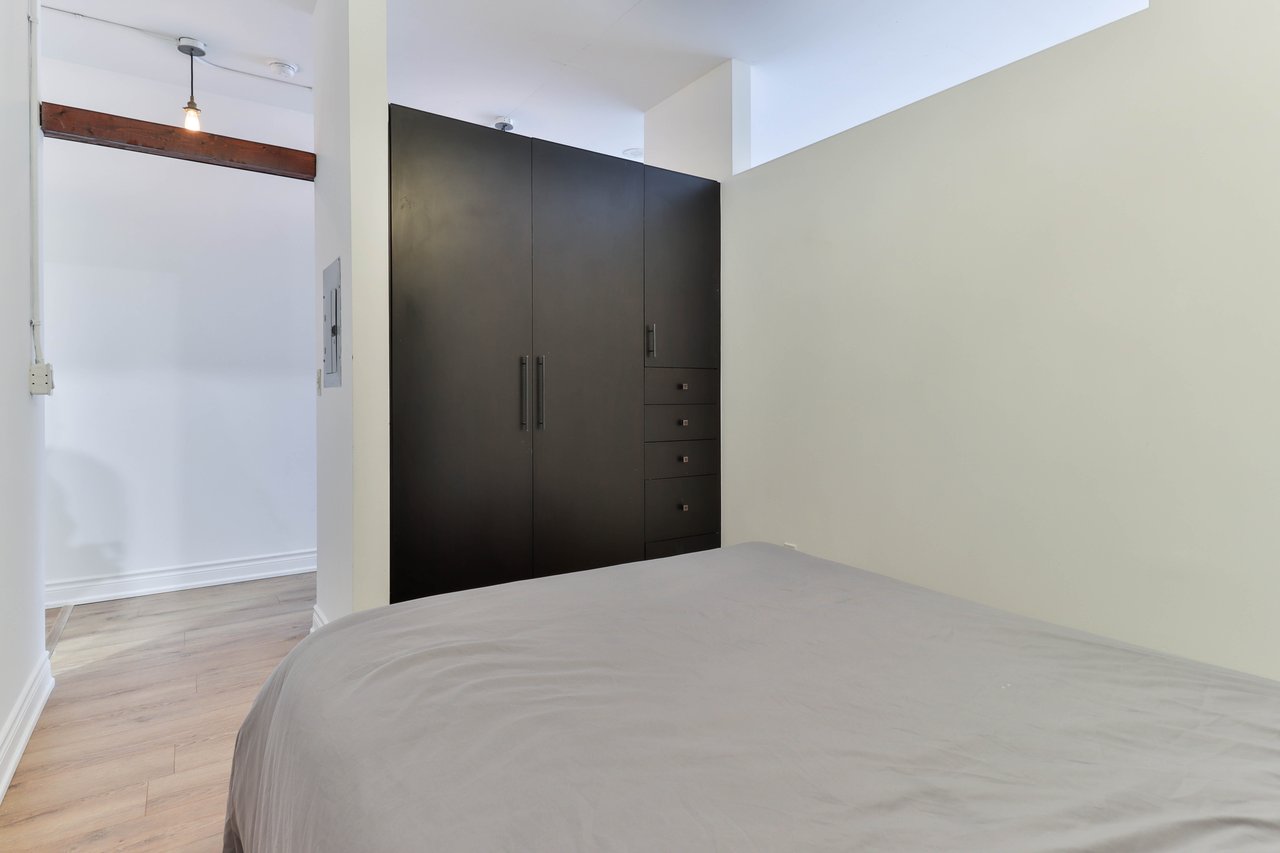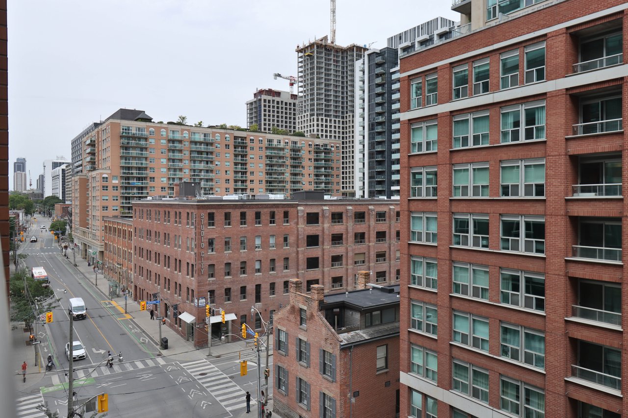 Welcome To This Spacious 1 Bedroom Loft In The Sought After Boutique Mozo Building! Thoughtfully Renovated, It Offers A Functional Open Layout With 9' Exposed Concrete Ceilings, Floor-To-Ceiling Windows, Upgraded Floors & A Gorgeous Renovated Bathroom. The Modern Kitchen Features A Large Island With Generous Storage, Stainless Steel Appliances & A Huge Island, And The Beautifully Renovated Bathroom Includes An Oversized Shower W/ Two Shower Heads, Marble Finishes & Great Lighting. Enjoy Access To The Building Amenities Such As A Fitness Centre, Sauna, Party Room, Visitor Parking, And 24-Hour Concierge. Mozo Is Known For Its Quiet, Well-Maintained Atmosphere And Friendly Community. Ideally Located Just Steps From St. Lawrence Market, Distillery District, And Financial District, With Restaurants, Cafes, Shops, And Groceries All Nearby. Ttc Right Outside, And Easy Access To DVP And Gardiner. This Is A Great Opportunity To Enjoy Both A Comfortable Loft Lifestyle And A Prime East Downtown Location!