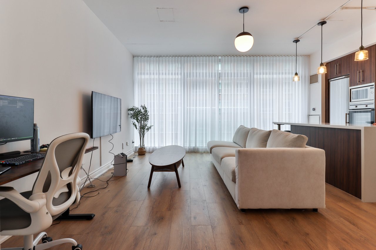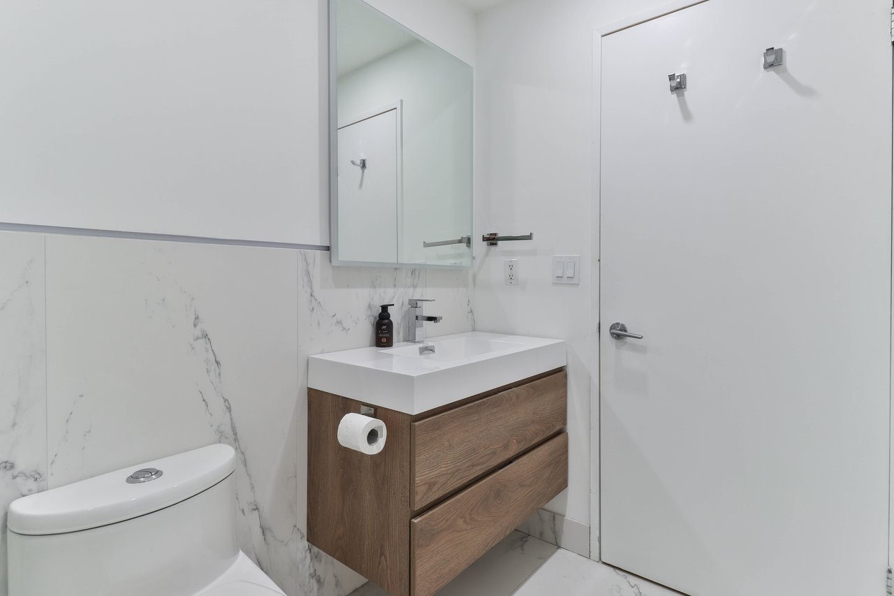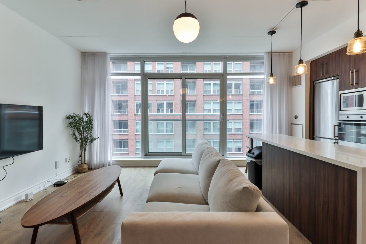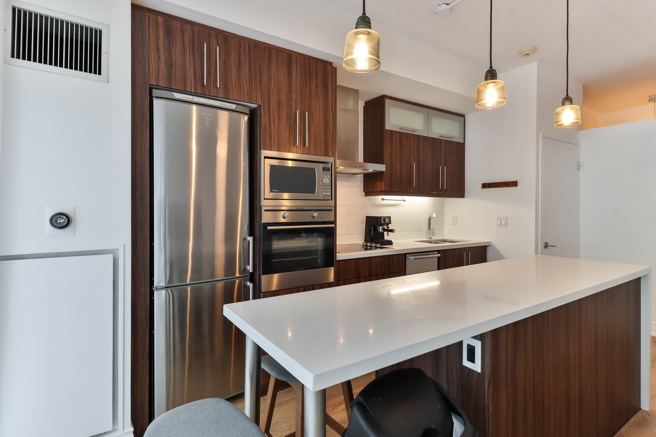 Welcome To This Spacious 1 Bedroom Loft In The Sought After Boutique Mozo Building! Thoughtfully Renovated, It Offers A Functional Open Layout With 9' Exposed Concrete Ceilings, Floor-To-Ceiling Windows, Upgraded Floors & A Gorgeous Renovated Bathroom. The Modern Kitchen Features A Large Island With Generous Storage, Stainless Steel Appliances & A Huge Island, And The Beautifully Renovated Bathroom Includes An Oversized Shower W/ Two Shower Heads, Marble Finishes & Great Lighting. Enjoy Access To The Building Amenities Such As A Fitness Centre, Sauna, Party Room, Visitor Parking, And 24-Hour Concierge. Mozo Is Known For Its Quiet, Well-Maintained Atmosphere And Friendly Community. Ideally Located Just Steps From St. Lawrence Market, Distillery District, And Financial District, With Restaurants, Cafes, Shops, And Groceries All Nearby. Ttc Right Outside, And Easy Access To DVP And Gardiner. This Is A Great Opportunity To Enjoy Both A Comfortable Loft Lifestyle And A Prime East Downtown Location!