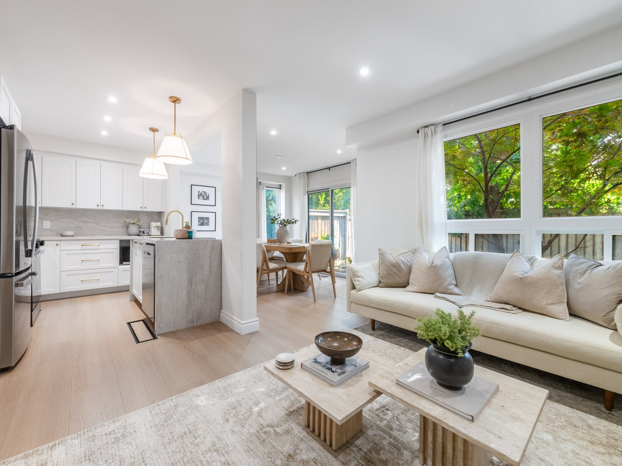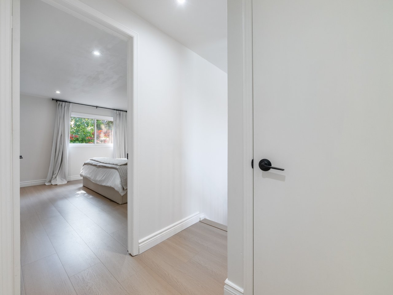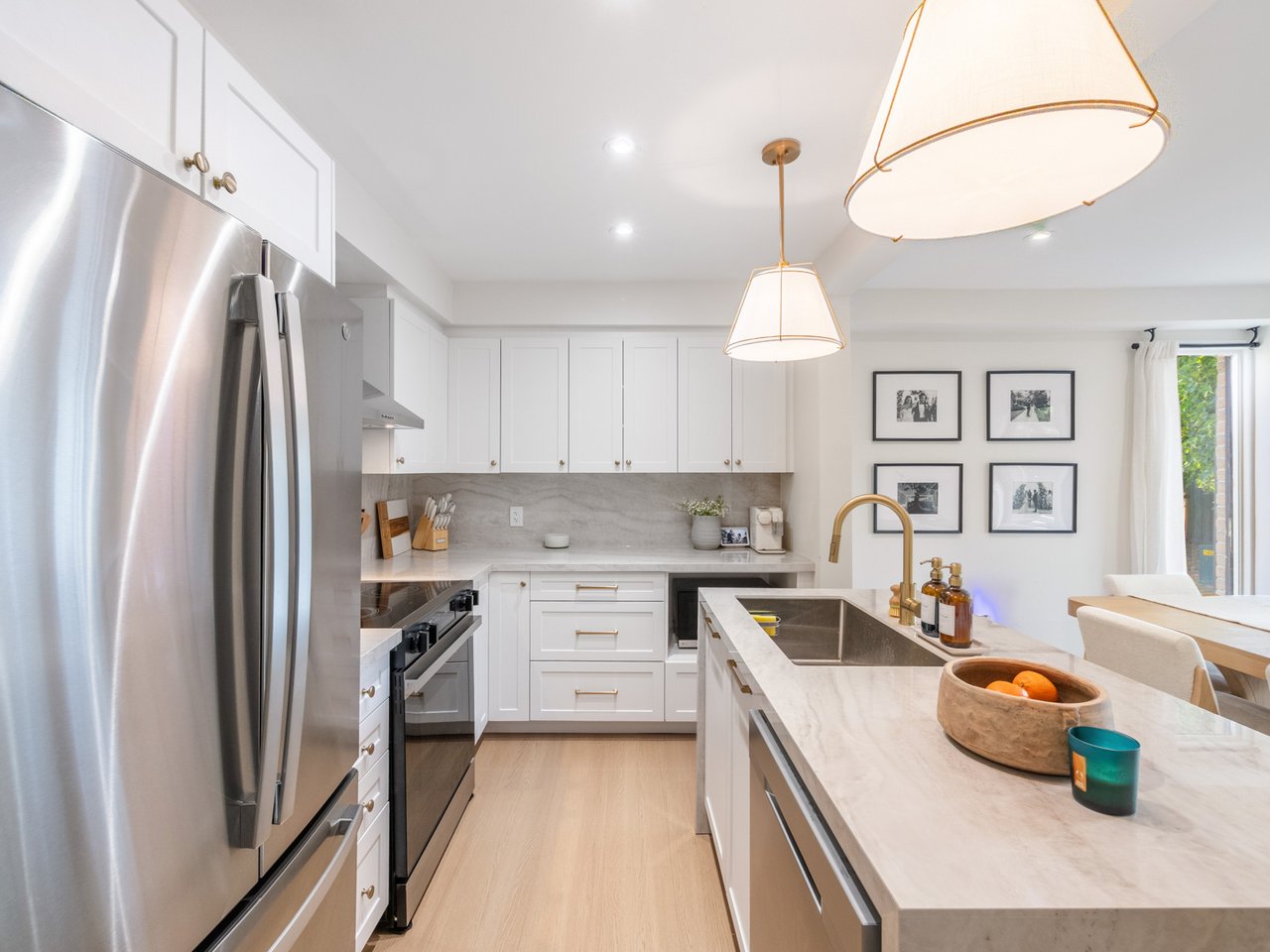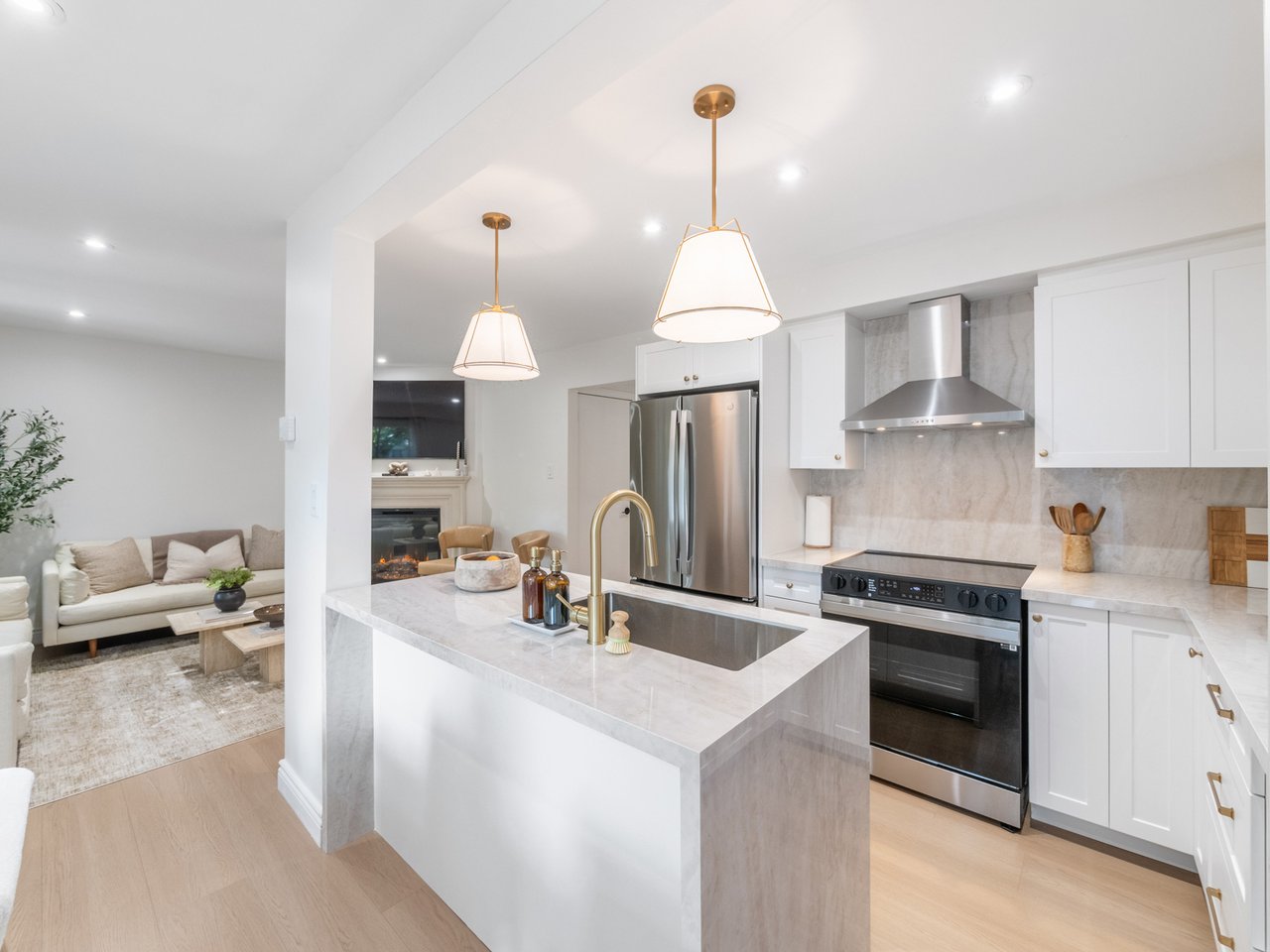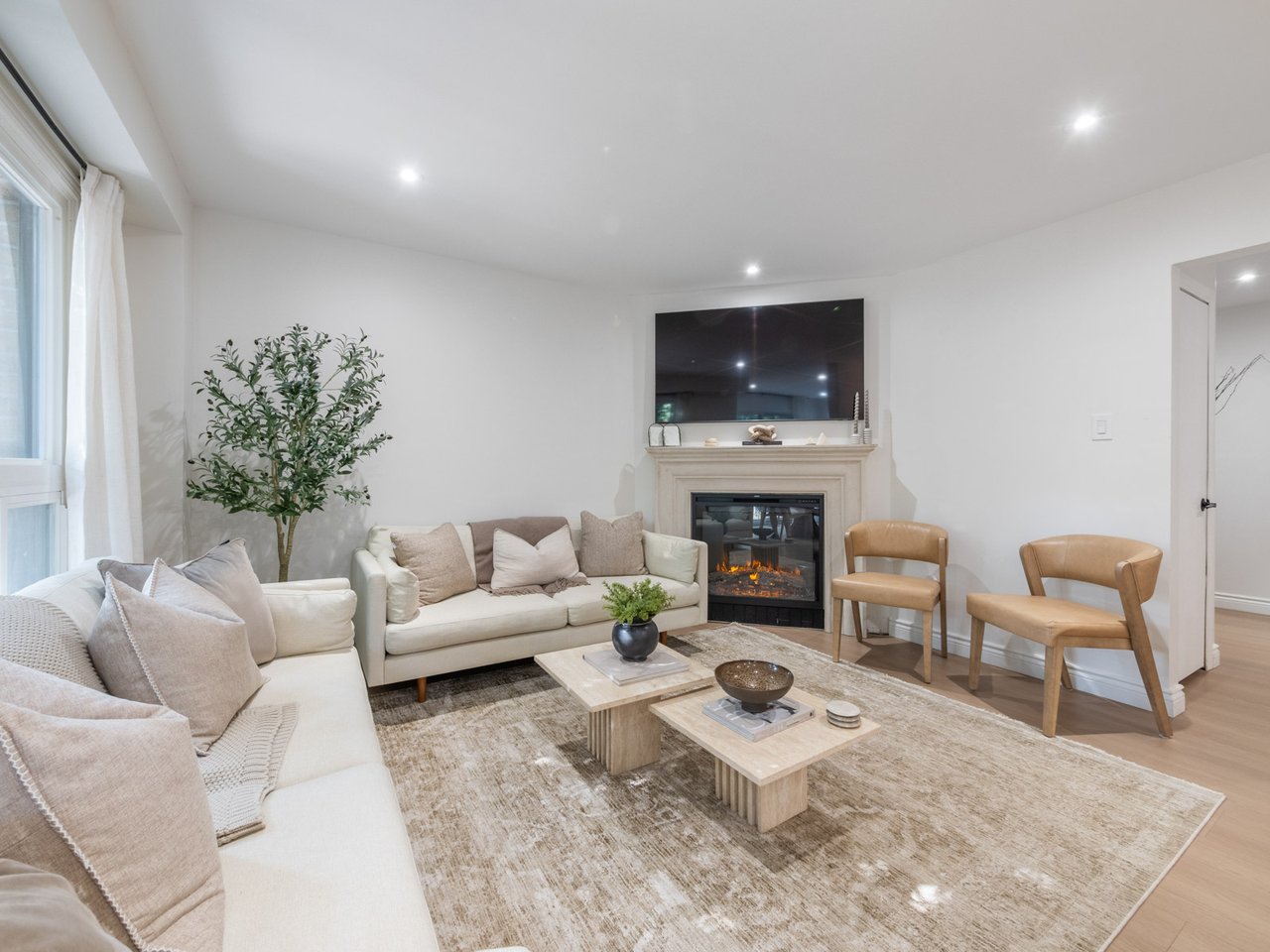 A newly renovated end-unit townhome in the highly sought-after Erin Mills community, this 3+1 bedroom, 3.5 bathroom residence offers nearly 1,400 sqft of meticulously designed living space with a bright, modern aesthetic. Throughout the home, youll find white oak flooring, solid hardwood stairs, and matte black finishes that create a sleek, cohesive look. The contemporary kitchen features porcelain countertops, brushed gold hardware, and brand-new appliances, offering the perfect blend of function and style. In the living area, an elegant electric fireplace with a custom fibreglass mantle sets a warm and inviting atmosphere. All bathrooms have been fully renovated with premium fixtures, modern vanities, and frameless glass shower doors for a spa-like feel. The primary bedroom is a true retreat, complete with a large walk-in closet customized for maximum storage and organization. Enjoy 4 parking spots (2-car garage + 2 driveway spots) and minimal condo fees, which include landscaping, snow removal, access to resident-only private pool, and exceptional management. Perfectly located near South Common Mall, Erin Mills Town Centre, Square One, and U of T Mississauga, with easy access to the 403, QEW, and GO transit. Surrounded by a family-friendly community featuring a private pool and play area, this move-in-ready home combines style, comfort, and convenience in one. End-units of this calibre are rarebook your showing today to experience it firsthand!