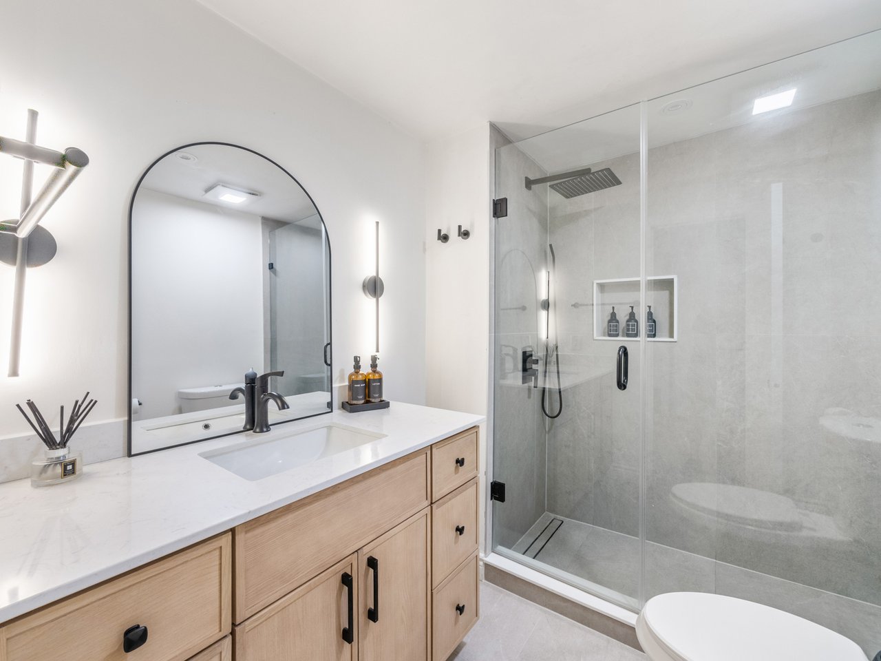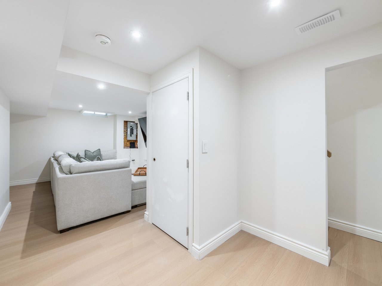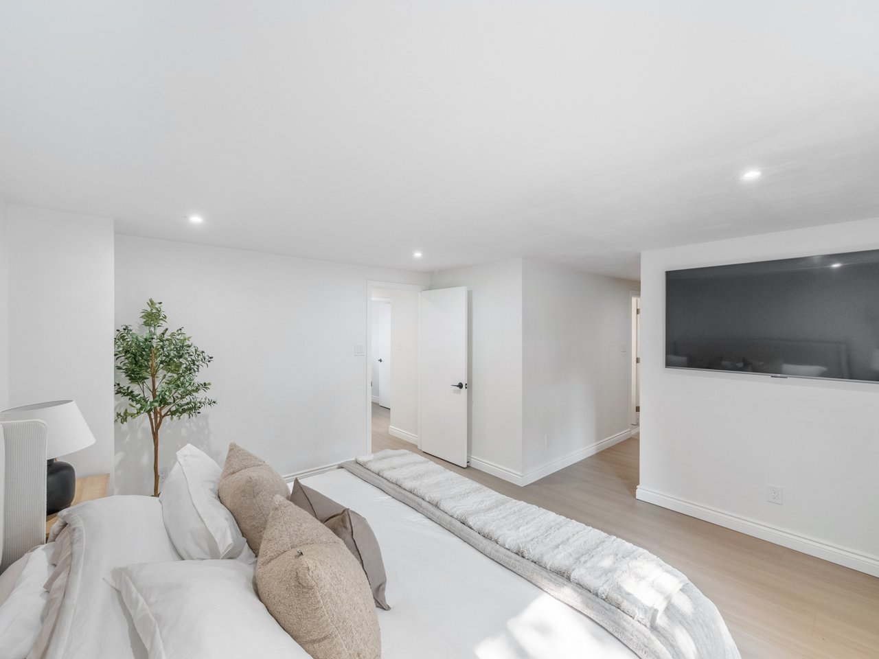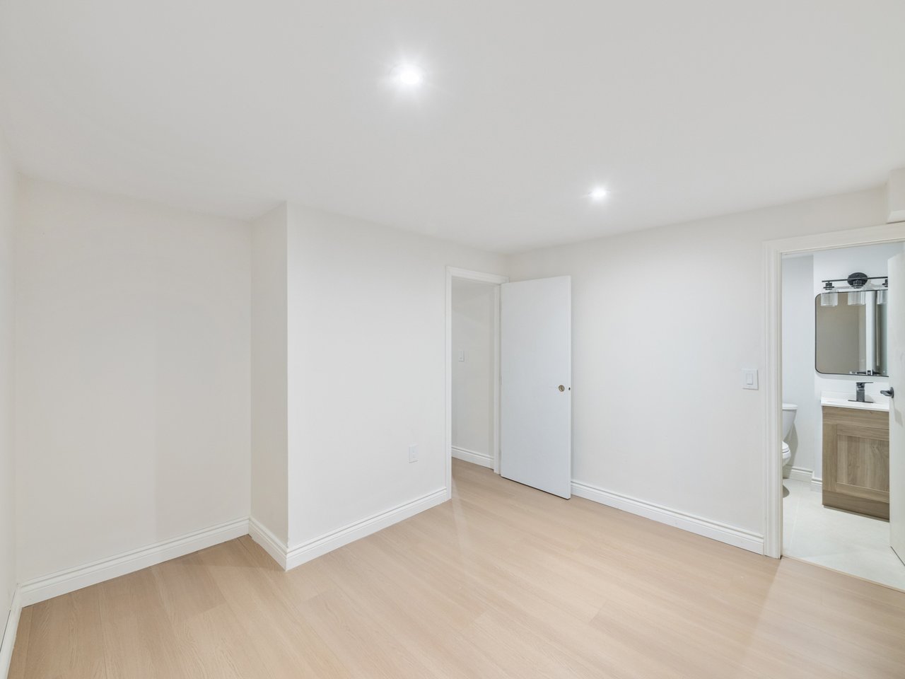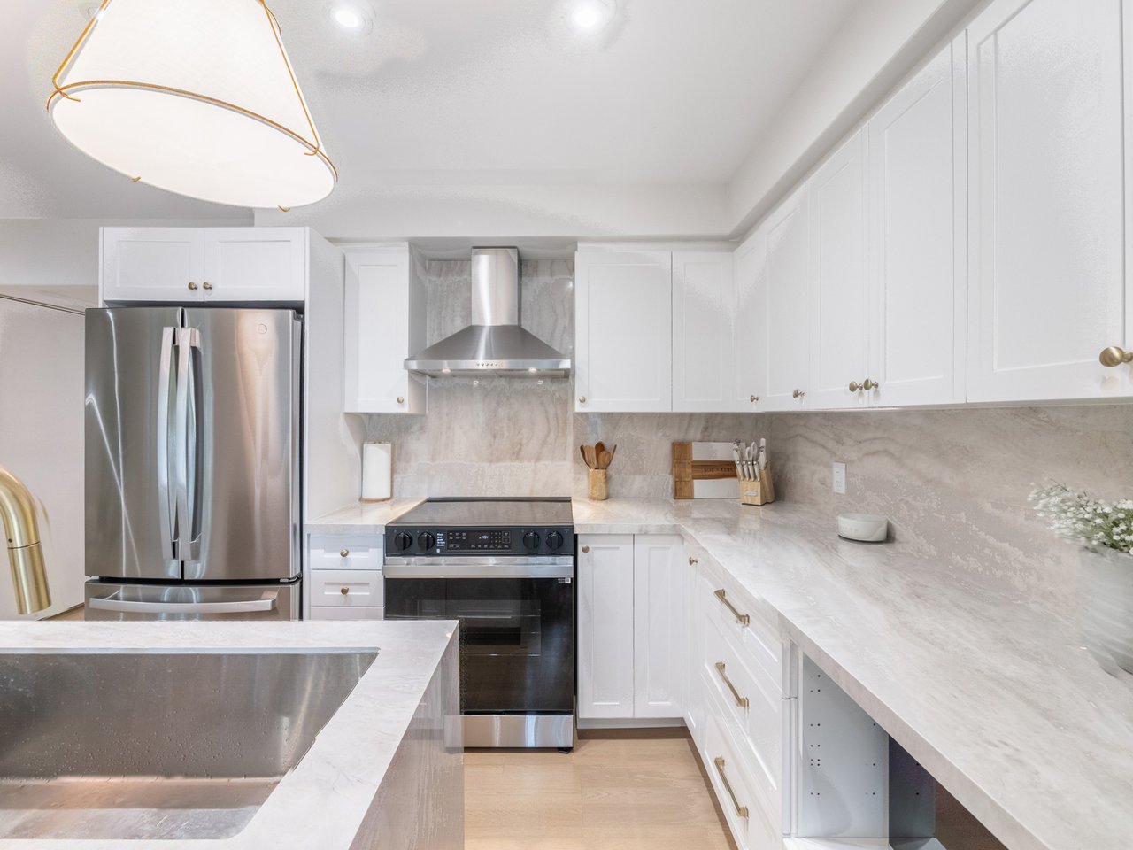 A newly renovated end-unit townhome in the highly sought-after Erin Mills community, this 3+1 bedroom, 3.5 bathroom residence offers nearly 1,400 sqft of meticulously designed living space with a bright, modern aesthetic. Throughout the home, youll find white oak flooring, solid hardwood stairs, and matte black finishes that create a sleek, cohesive look. The contemporary kitchen features porcelain countertops, brushed gold hardware, and brand-new appliances, offering the perfect blend of function and style. In the living area, an elegant electric fireplace with a custom fibreglass mantle sets a warm and inviting atmosphere. All bathrooms have been fully renovated with premium fixtures, modern vanities, and frameless glass shower doors for a spa-like feel. The primary bedroom is a true retreat, complete with a large walk-in closet customized for maximum storage and organization. Enjoy 4 parking spots (2-car garage + 2 driveway spots) and minimal condo fees, which include landscaping, snow removal, access to resident-only private pool, and exceptional management. Perfectly located near South Common Mall, Erin Mills Town Centre, Square One, and U of T Mississauga, with easy access to the 403, QEW, and GO transit. Surrounded by a family-friendly community featuring a private pool and play area, this move-in-ready home combines style, comfort, and convenience in one. End-units of this calibre are rarebook your showing today to experience it firsthand!