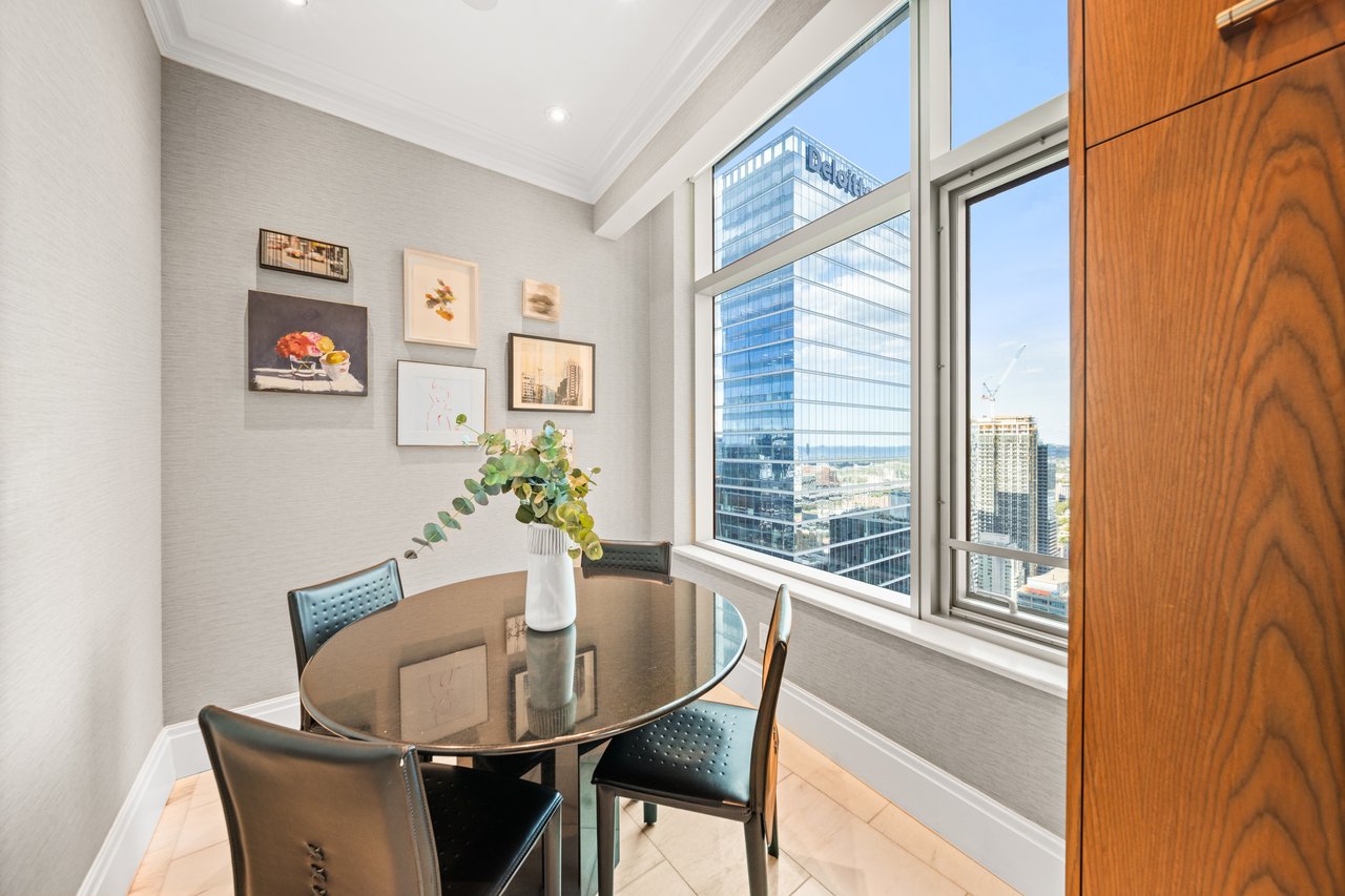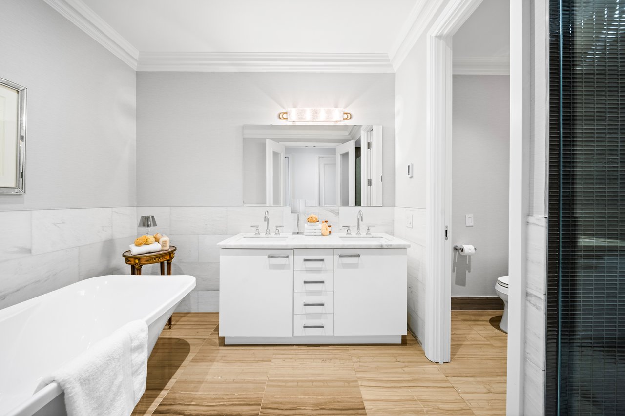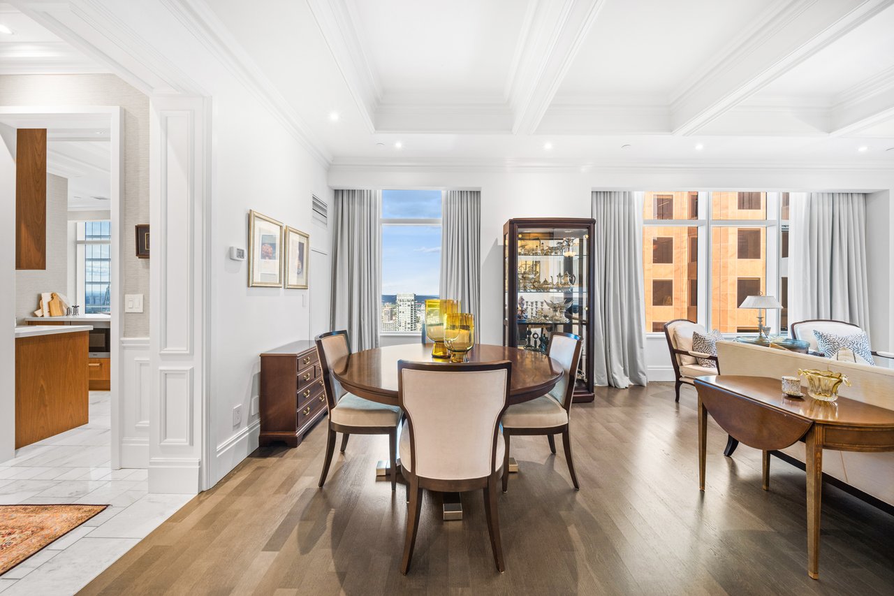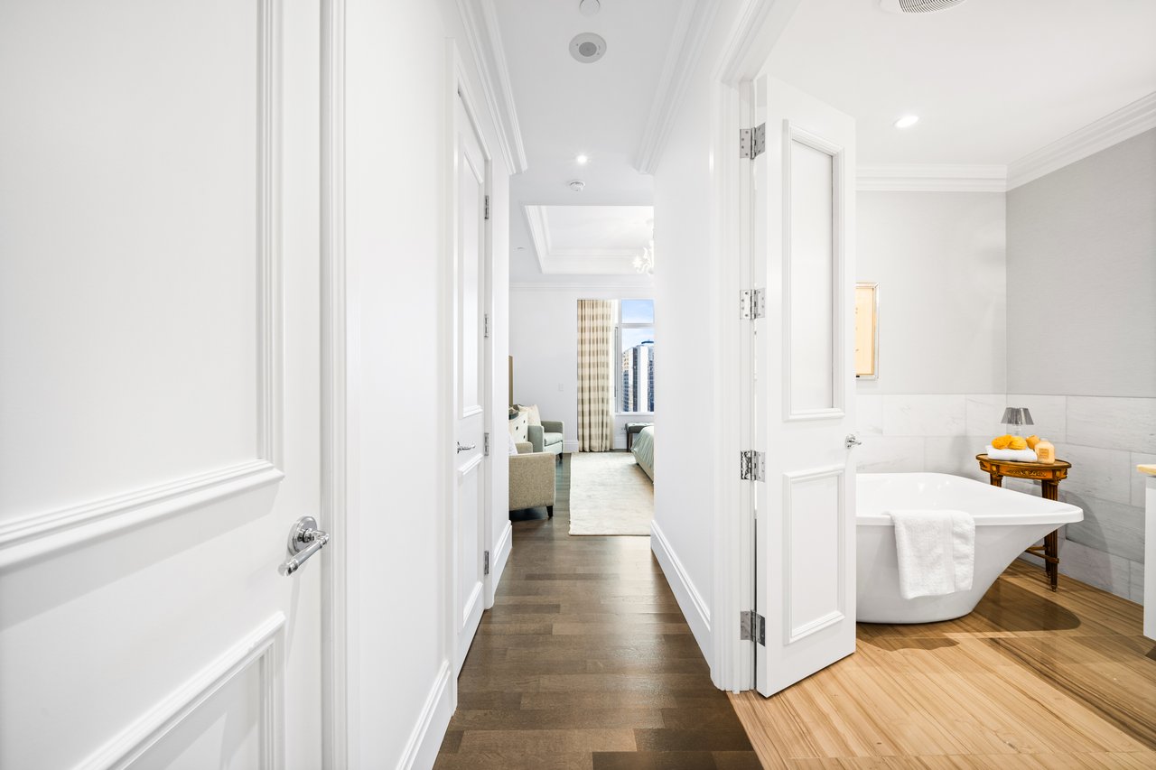Elegance And Opulence Awaits You At The St. Regis Residences. Welcome To Suite 3604, A Beautifully Appointed And Meticulously Maintained 2 Bedroom, 2 Full Bathroom Corner Suite. Spanning Just Shy Of 1,900 SF With No Expenses Spared - Designer Upgrades Along With 10.5ft Coffered Ceilings, Wainscotting, Marble & Italian Hardwood Flooring Throughout. Spacious, Open Concept Living & Dining Rooms Boast Ample Natural Light And Sweeping South East Views Of The Cityscape & Lake Ontario. All Window Coverings Included [Drapery, Sheers & Automated Shades]. Generously Sized Primary Bedroom Retreat Boasts Double Closets And A Spa-Like 6 Pc. Ensuite With Large Freestanding Bath & Heated Floors. Chefs Kitchen Offers Integrated Miele Appliances, Downsview Cabinetry, & Eat-in Breakfast Area. Enjoy Daily Access To Five Star Hotel Amenities: 24Hr. Concierge, Spa, Indoor Salt Water Pool, Sauna, State Of The Art Fitness Centre, Valet & Visitor Parking, As Well As The Private Residential Sky Lobby & Terrace.