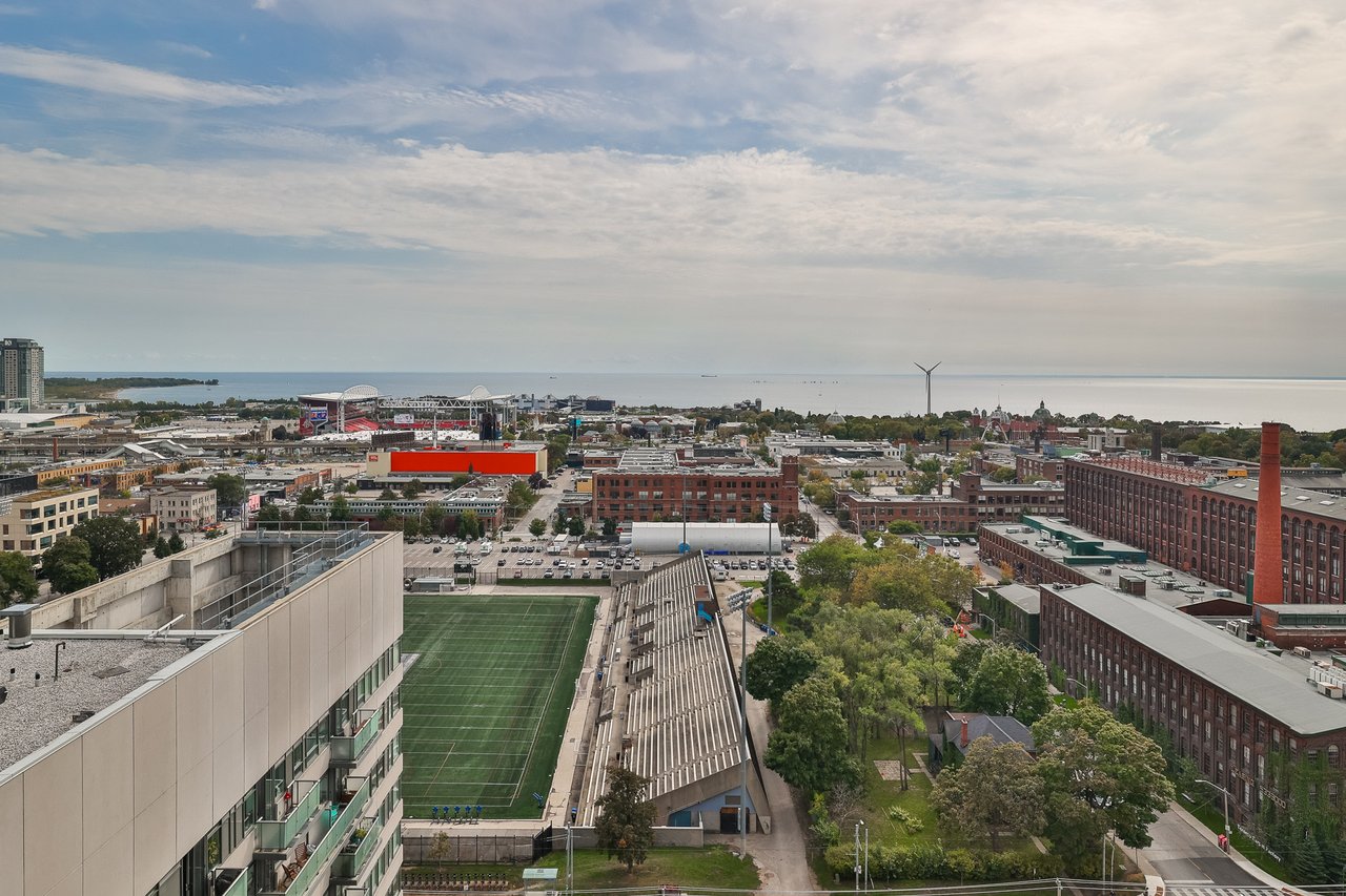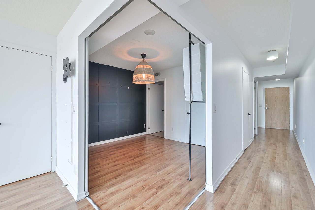 entertain or relax. The kitchen features full-size appliances, excellent storage and a practical breakfast bar that makes everyday living simple. The primary bedroom has large windows and a full-sized closet, while the den offers flexible proportions that are rarely available at this price point. Parking is included and remains a major advantage in this neighbourhood. The building offers strong amenities and an exceptional location. You are steps to Liberty Village, King West, Queen West, transit, groceries, parks, restaurants, cafes and the waterfront. A perfect option