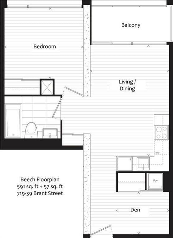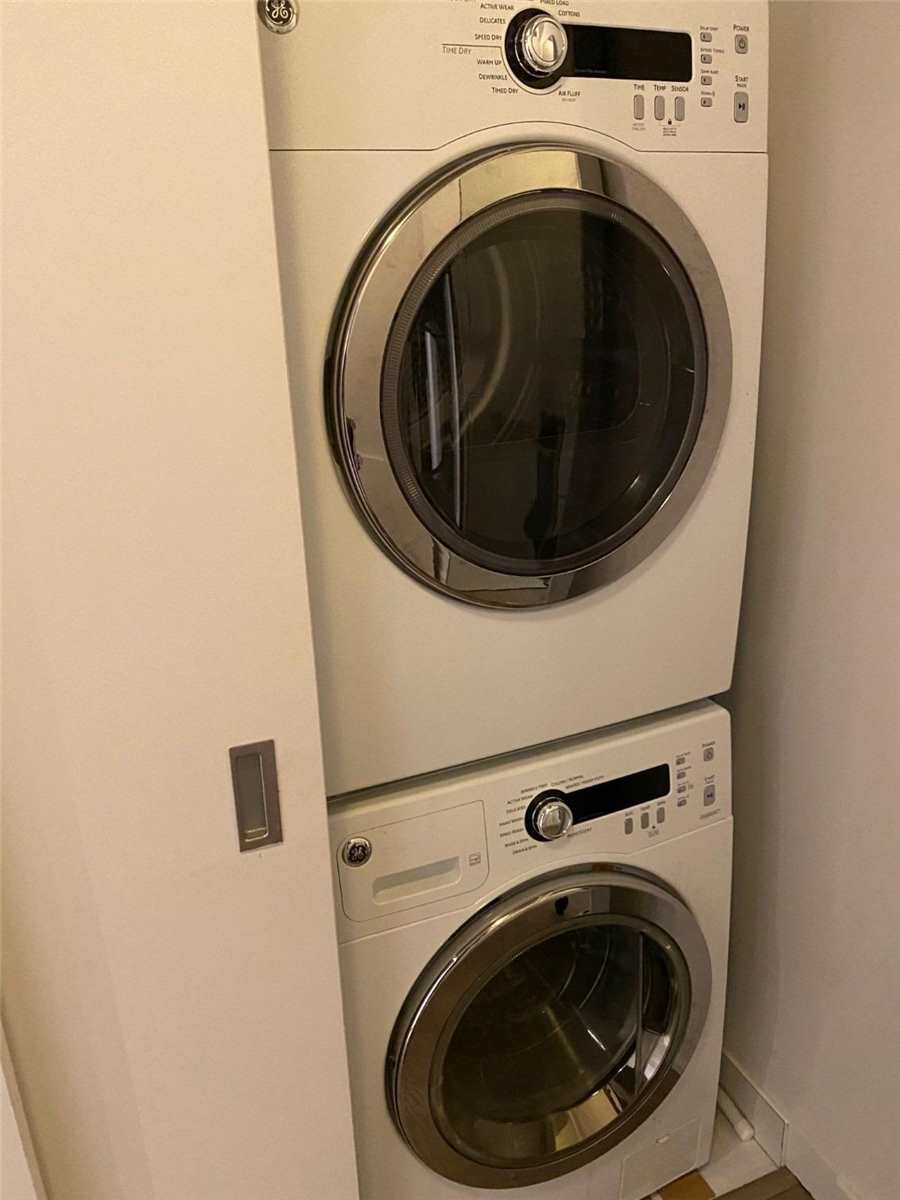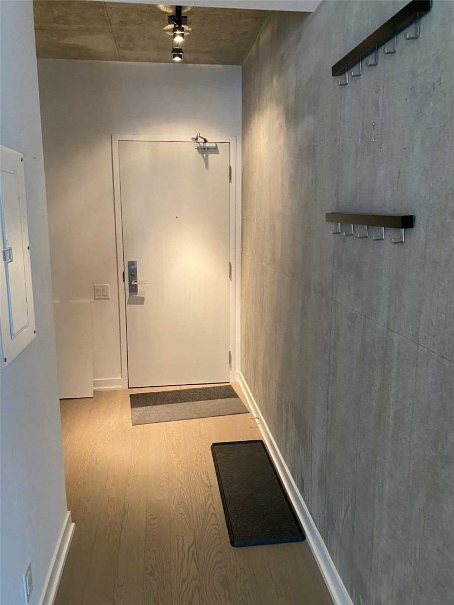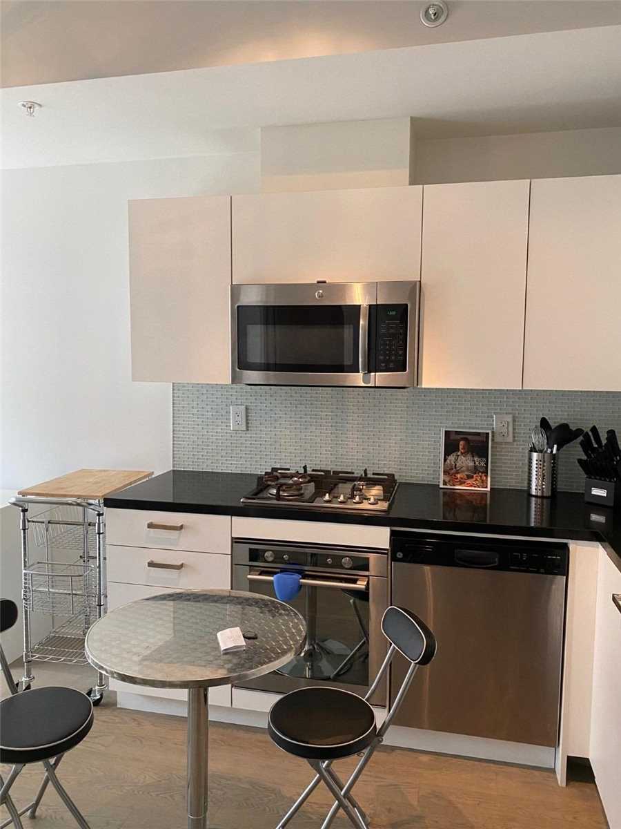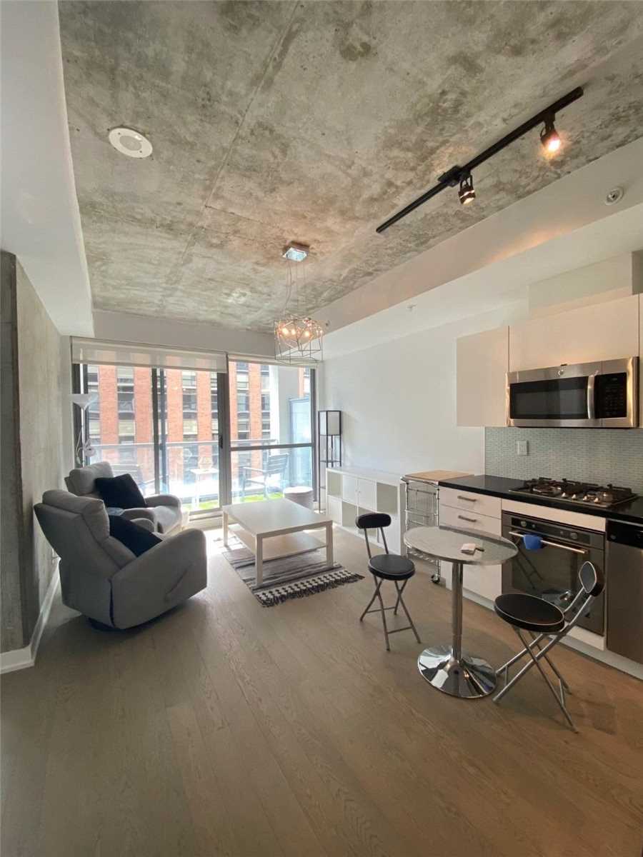 Your Exciting Downtown Life Starts Now! This 1-Bedroom + Den suite w/ locker is designed to impress with its sleek finishes, exposed concrete ceilings, and hardwood floors throughout. The open-concept living area is filled with natural light from floor-to-ceiling windows and offers a walkout to a spacious balcony. The custom kitchen boasts a gas range, quartz countertops, and stainless steel appliances. Enjoy a generous bedroom, ample storage, and the convenience of ensuite laundry. Building amenities include a 24-hour concierge, fully equipped gym, stylish party room, and more. Perfectly located between King and Queen West, you're steps from top restaurants, shopping, and city conveniences. Don't Miss Out - Book A Showing Today!