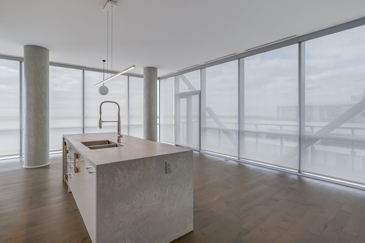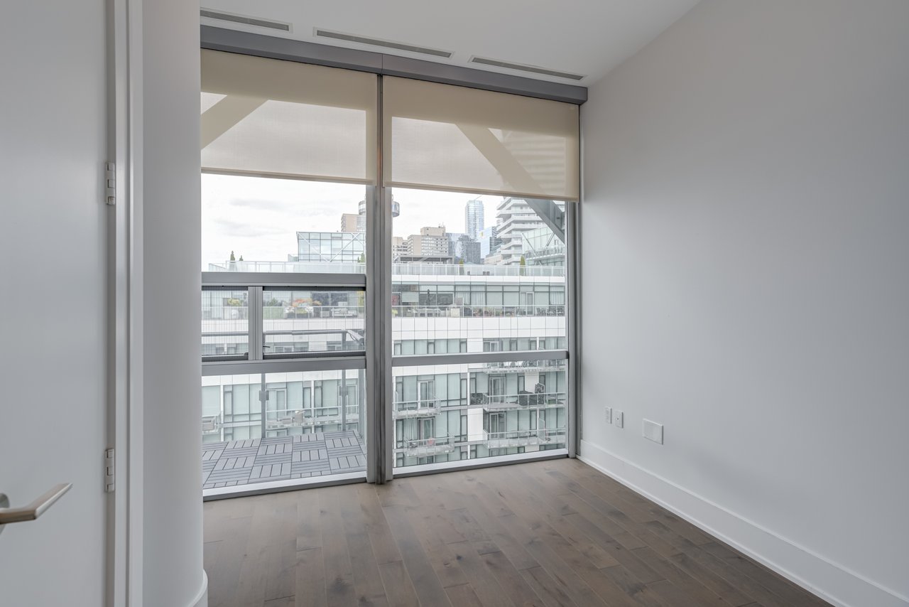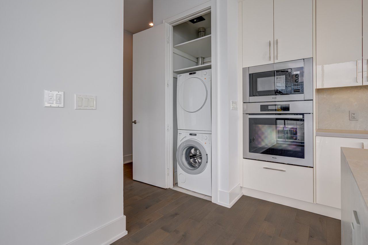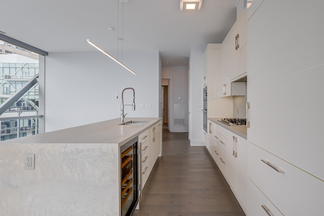 floor-to-ceiling windows, and an impressive layout with a large private balcony. The fully upgraded kitchen is a chefs dream, complete with a gas cooktop, Miele and Sub-Zero appliances, and sleek finishes throughout. Additional highlights include automated blinds, three spacious