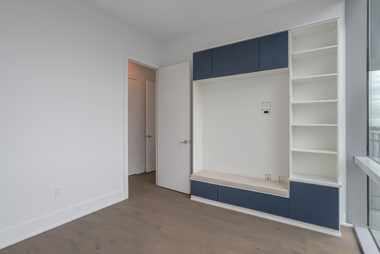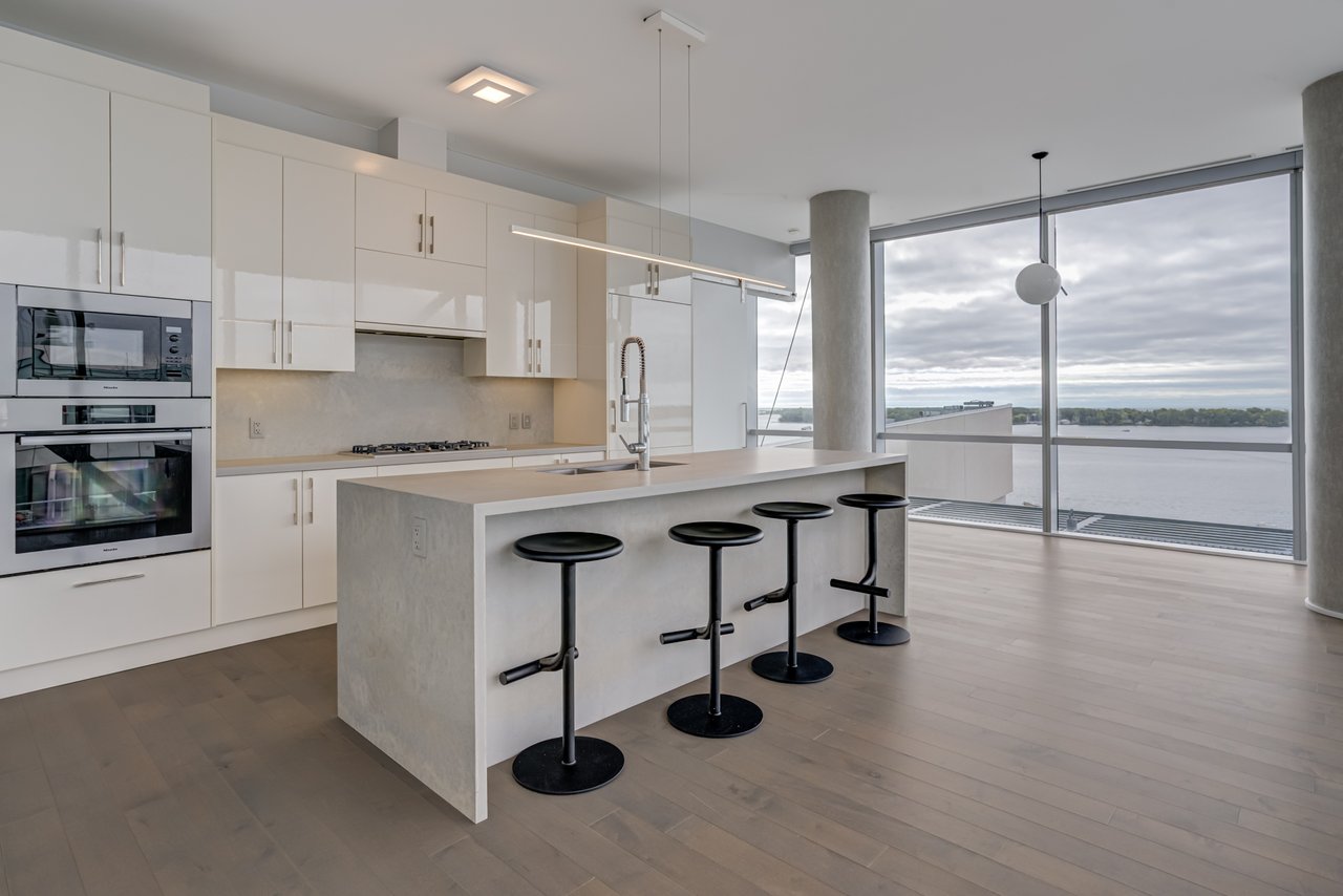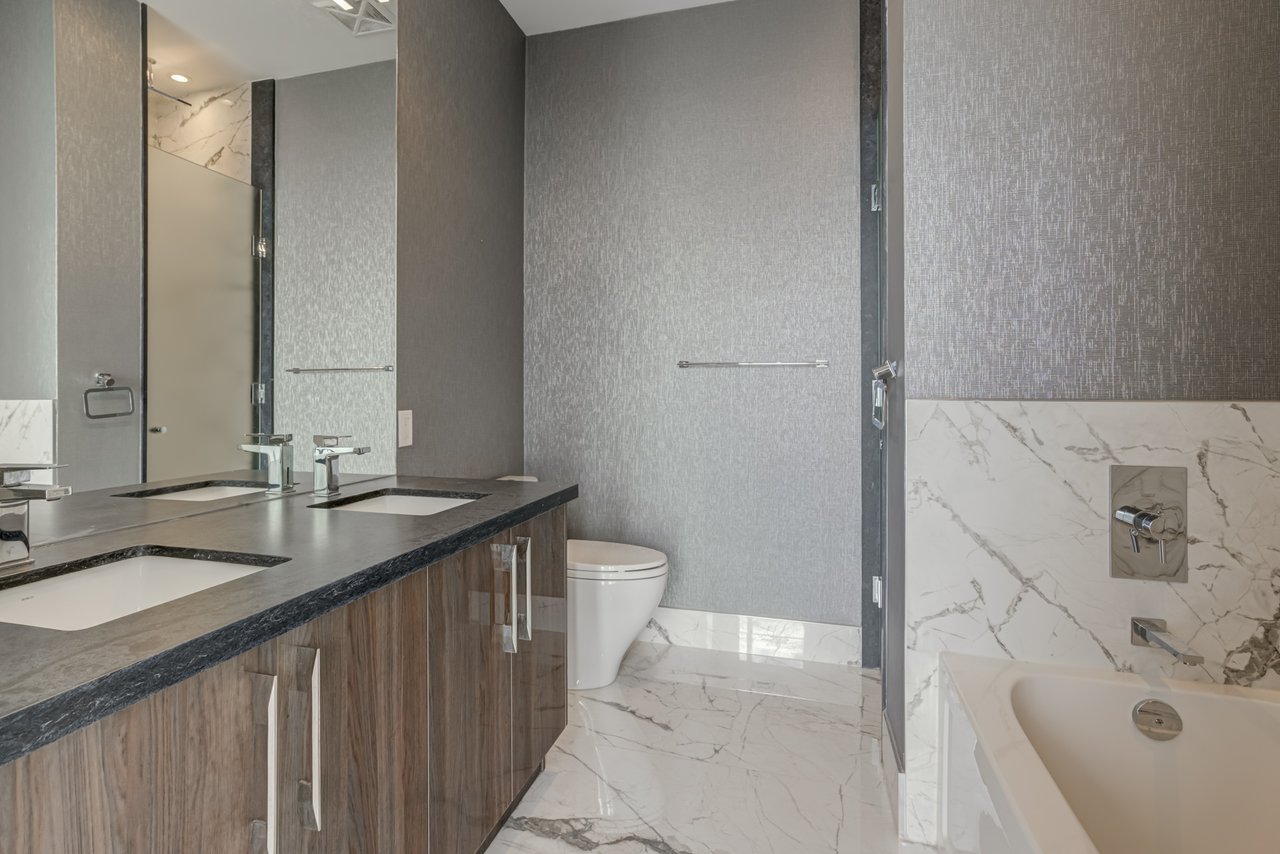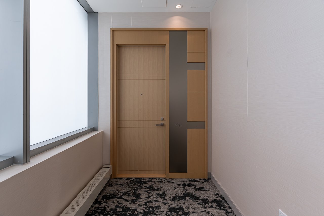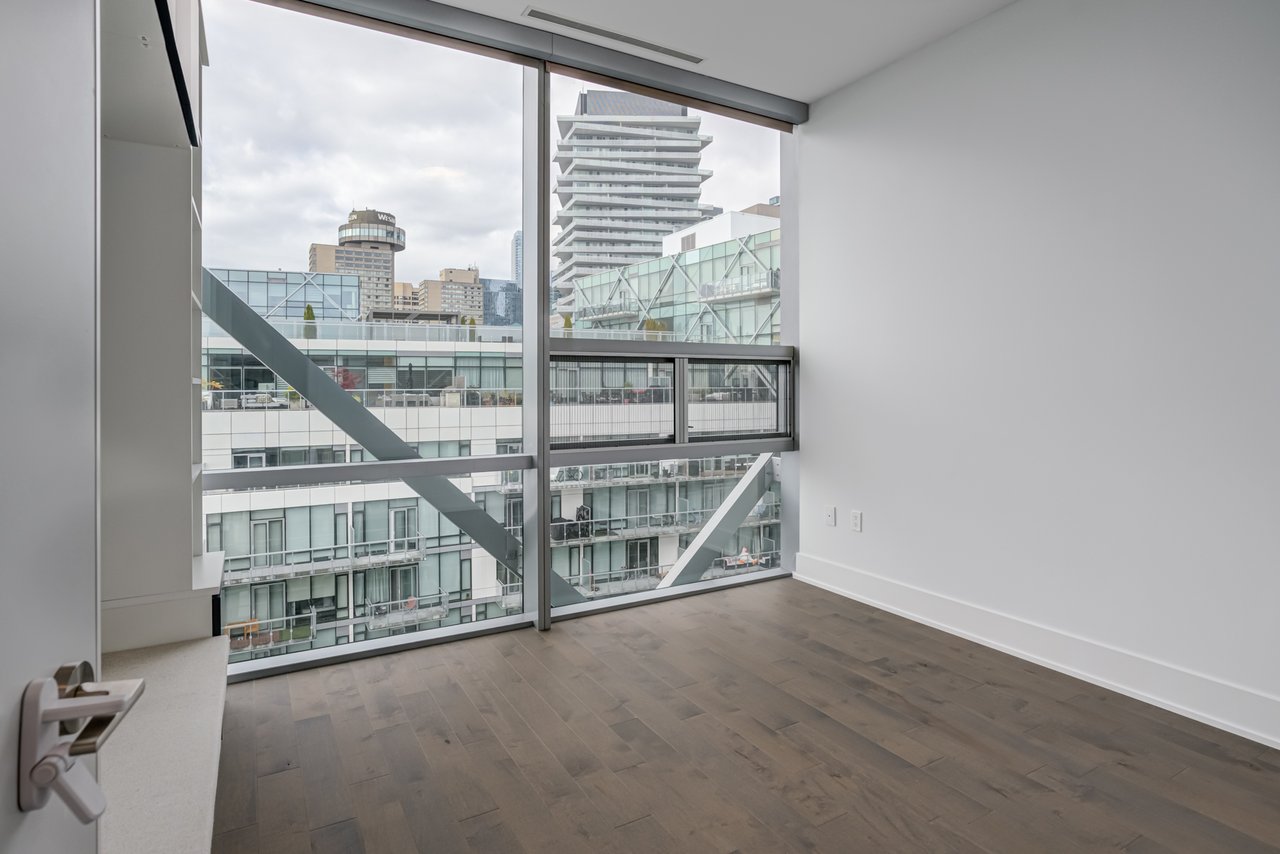 floor-to-ceiling windows, and an impressive layout with a large private balcony. The fully upgraded kitchen is a chefs dream, complete with a gas cooktop, Miele and Sub-Zero appliances, and sleek finishes throughout. Additional highlights include automated blinds, three spacious
