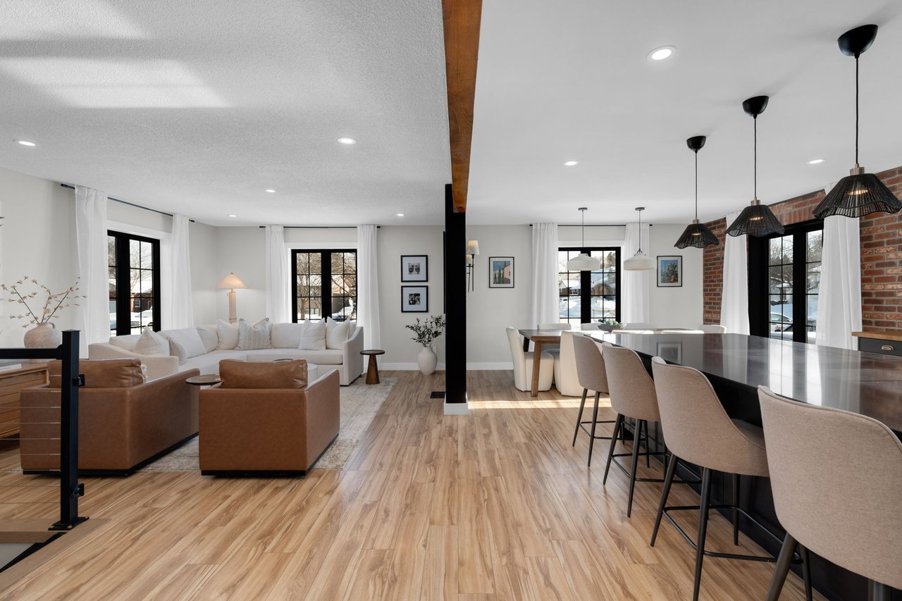 Fully renovated raised bungalow offering over 2,650 sq ft of finished living space, refined design, elevated comfort, and effortless everyday living in a vibrant, family-friendly community. Bathed in natural light and finished with exceptional attention to detail, this home delivers a seamless blend of modern elegance and inviting warmth. The main level showcases a stunning open-concept layout, anchored by a gourmet kitchen with an oversized island and complemented by a double-sided fireplace shared between the living and dining areas, creating a warm and inviting focal point for everyday living and entertaining. Five generously sized bedrooms provide exceptional versatility, including a serene primary retreat featuring dual walk-in closets that create a true sense of space and luxury. The fully finished lower level is bright and welcoming, complete with large above-grade windows and a generous secondary living area, ideal for movie nights, relaxed evenings, and hosting family and friends. Outdoors, the professionally designed backyard offers an exceptional entertaining experience, featuring an expansive patio with a built-in Napoleon BBQ and a dedicated fire pit lounge, creating the ultimate setting for summer evenings, weekend gatherings, and year-round enjoyment. Set within a connected community surrounded by scenic trails and parkland, this exceptional property enjoys immediate access to schools, grocery stores, dining, shopping, and everyday conveniences. Just 10 minutes to Wasaga Beach and the shores of Georgian Bay, and 15 minutes to Barrie, this location offers the perfect balance of natural beauty and urban accessibility. A truly turnkey residence delivering luxury, lifestyle, and location, thoughtfully designed for those who appreciate quality, comfort, and exceptional living.