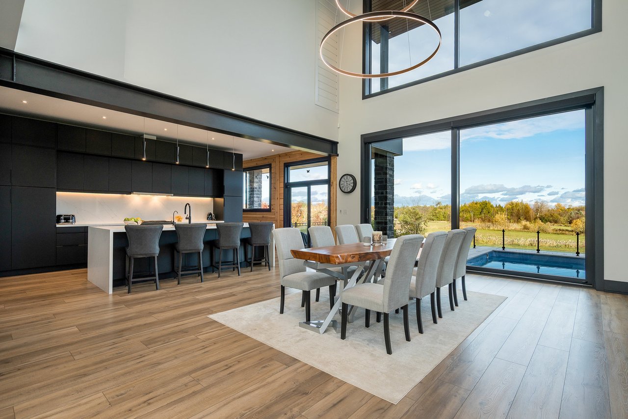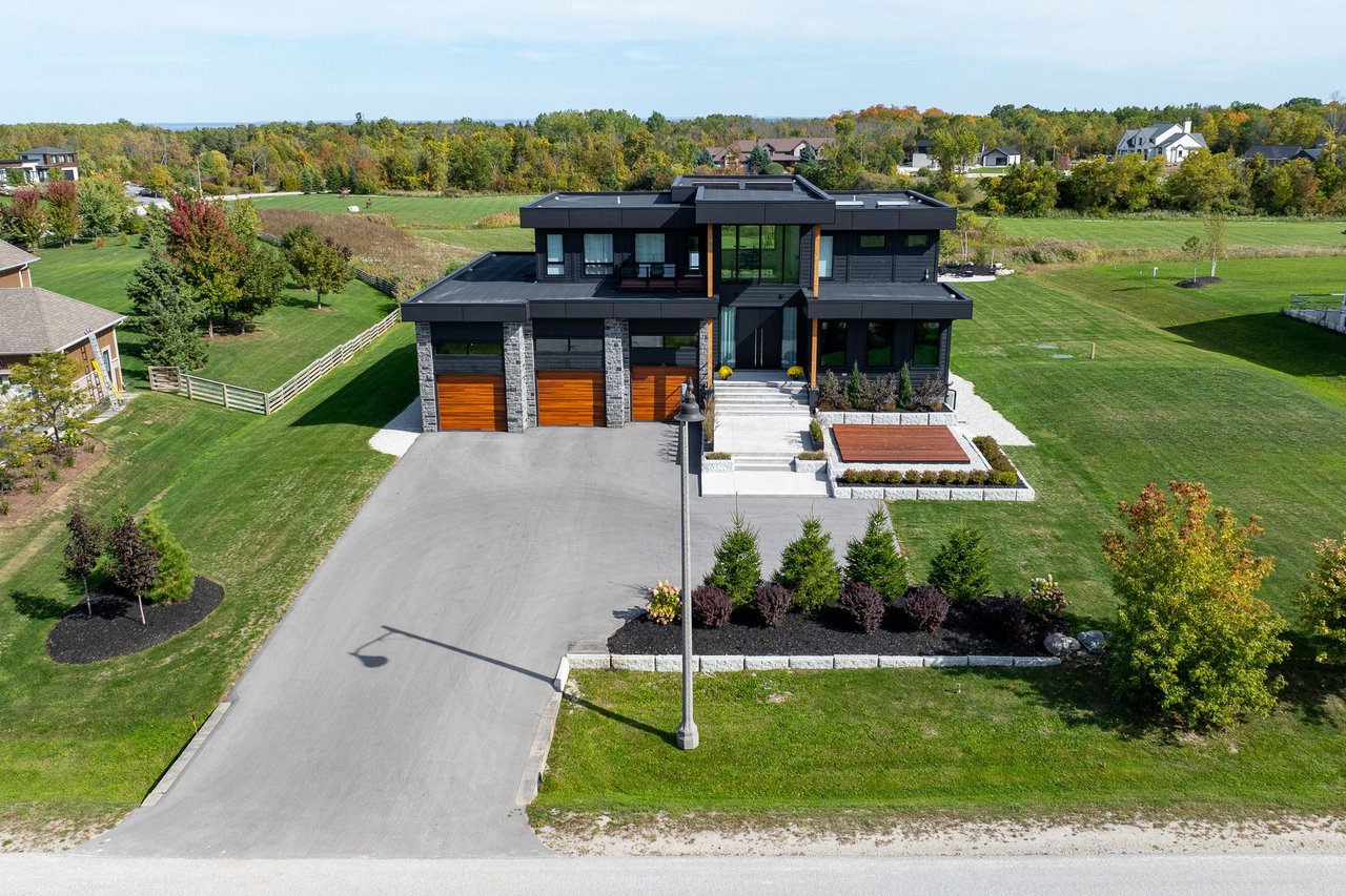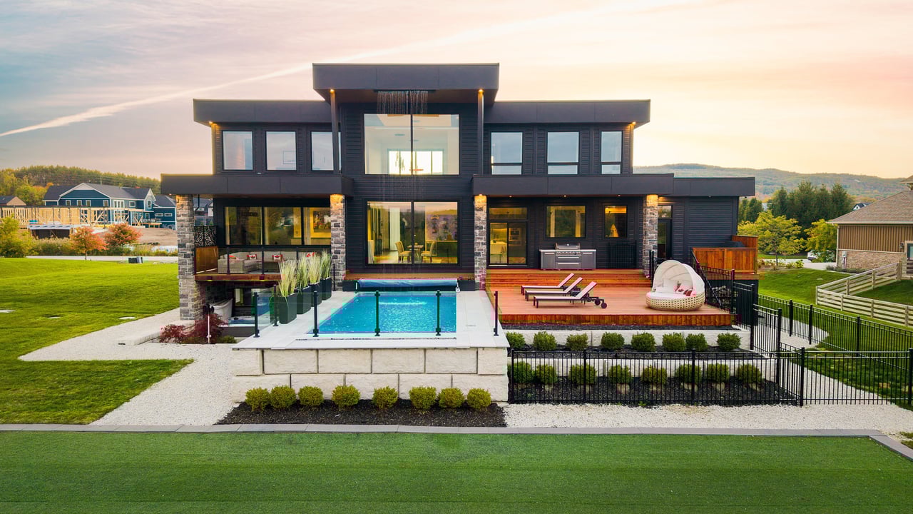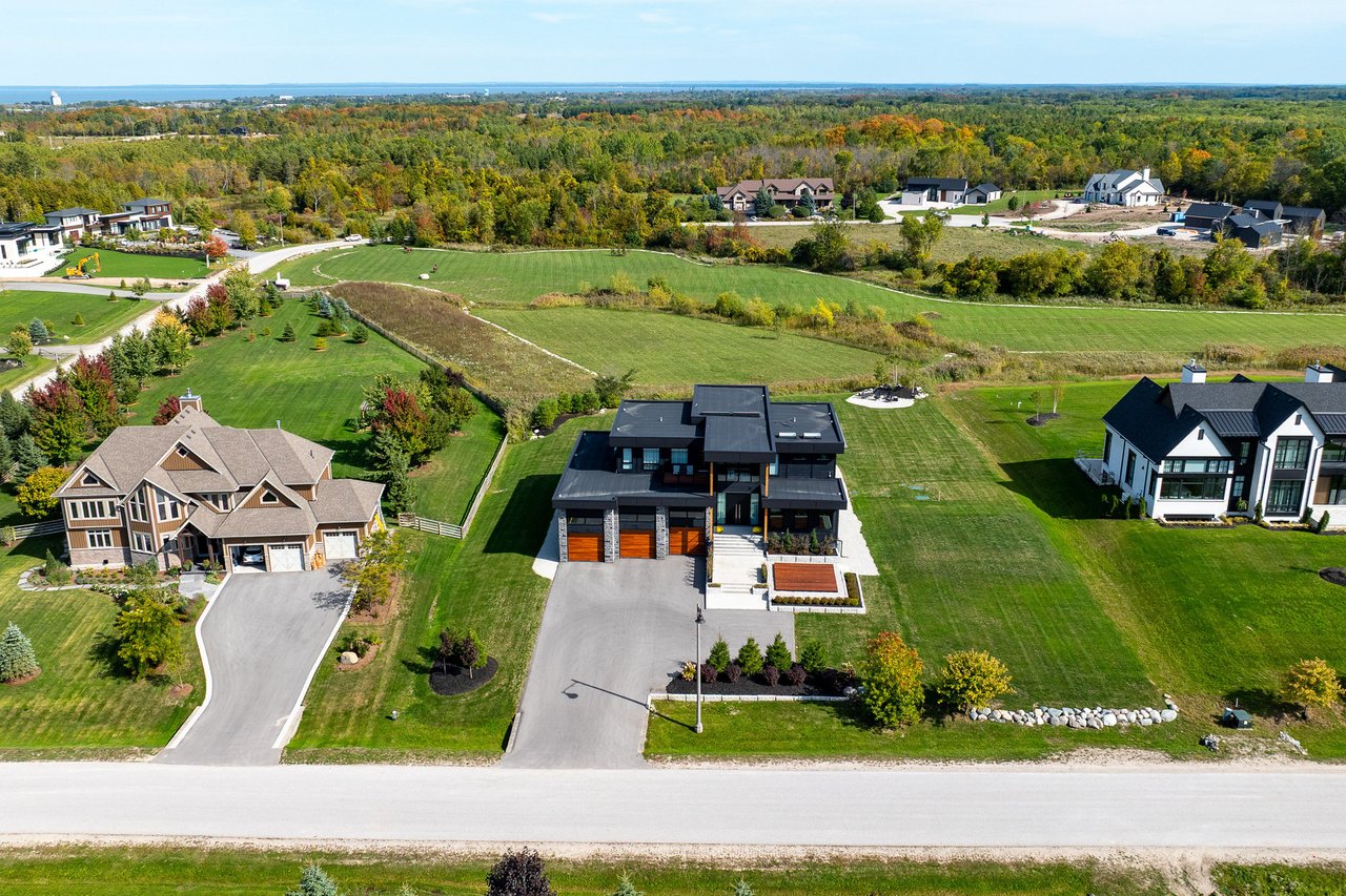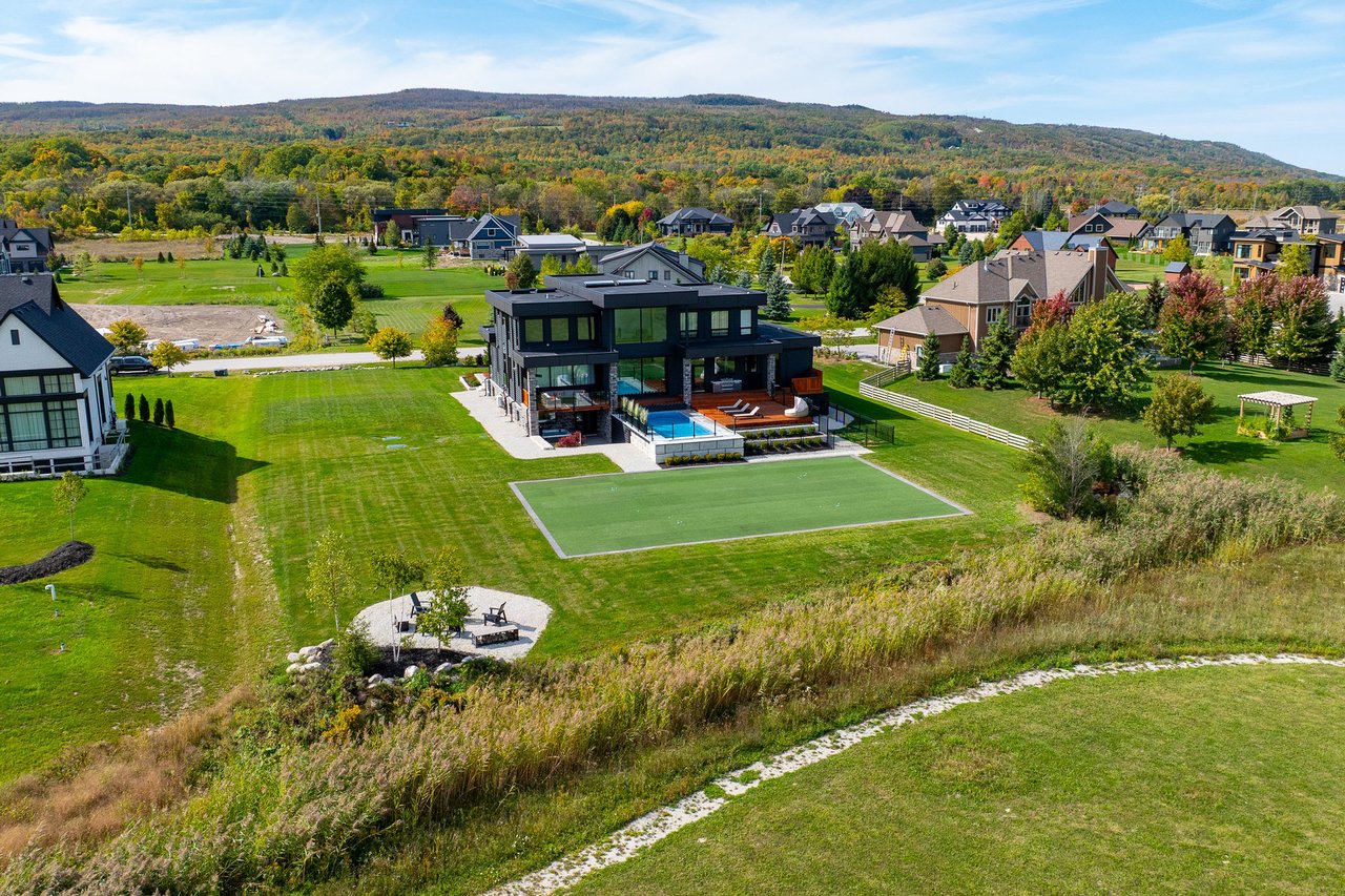 Welcome to the extraordinary living experience offered by 4 Raintree Court, nestled in the heart of Ontario’s ski country. This luxurious home in the exclusive Windrose Estates combines elegance and sophistication with functional amenities for today’s modern families. This custom-built home offers five spacious bedrooms, seven bathrooms, a home theatre, fully equipped gym, sauna, hot tub and heated pool over 8,600 square feet of interior space on a one-acre lot. High ceilings, custom lighting design, multiple skylights and walls of windows work with the wood accent walls to create a contemporary space that is flooded with light. In-floor radiant heating keeps the space cozy and warm throughout ski season as you sit by the fireplace watching the snow fall. The grand kitchen and dining area serve as the heart of this home, with soaring 23ft ceilings and the 10ft high by 16 ft wide sliding doors overlooking the backyard and 10-acre parkland beyond. Equipped with top-of-the-line appliances and designer counters and finishes, the kitchen is a perfect space for those who love to cook and entertain. The outdoor entertainment area includes a new outdoor kitchen, conversation area featuring patio heaters, heated pool and a waterfall that cascades from the upper roof into the pool. The property offers stunning mountain views of Osler Bluffs and Blue Mountain which can be enjoyed from throughout the home. Both resorts are less than ten minutes from the estate, as is downtown Collingwood. Simcoe County is known for its vibrant community atmosphere and natural beauty. From hiking trails to farmers' markets and local festivals—there's always something to see or do here. Notably, Clearview Township allows you to snowmobile or side by side directly out of your own property to the trails located right in the neighbourhood. 4 Raintree Court is more than just a house—it's a lifestyle destination that combines stylish luxury living within your own personal sanctuary.