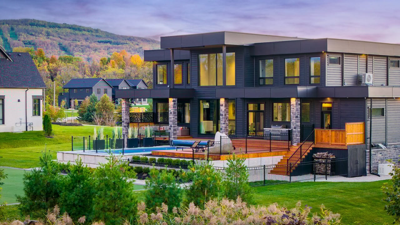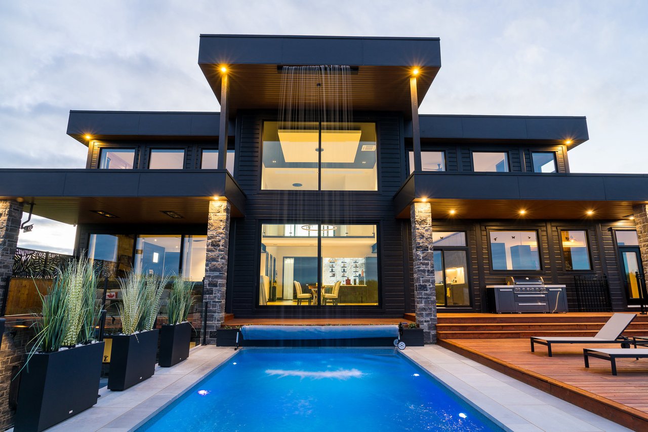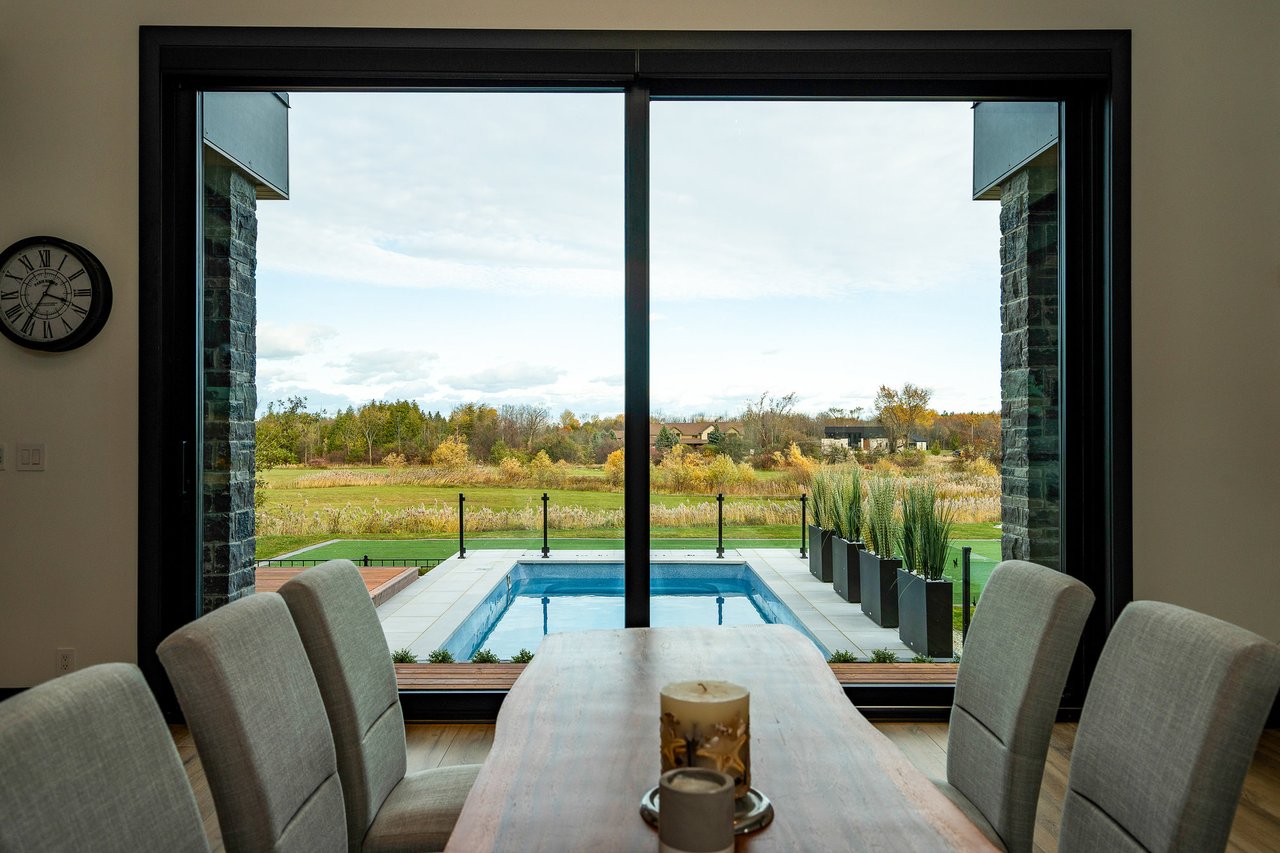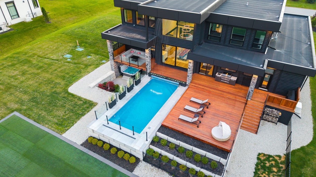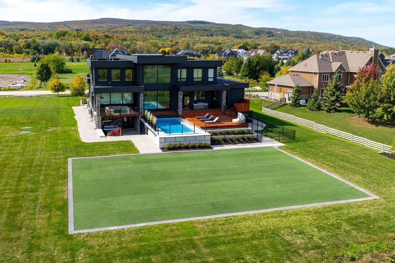 Welcome to the extraordinary living experience offered by 4 Raintree Court, nestled in the heart of Ontario’s ski country. This luxurious home in the exclusive Windrose Estates combines elegance and sophistication with functional amenities for today’s modern families. This custom-built home offers five spacious bedrooms, seven bathrooms, a home theatre, fully equipped gym, sauna, hot tub and heated pool over 8,600 square feet of interior space on a one-acre lot. High ceilings, custom lighting design, multiple skylights and walls of windows work with the wood accent walls to create a contemporary space that is flooded with light. In-floor radiant heating keeps the space cozy and warm throughout ski season as you sit by the fireplace watching the snow fall. The grand kitchen and dining area serve as the heart of this home, with soaring 23ft ceilings and the 10ft high by 16 ft wide sliding doors overlooking the backyard and 10-acre parkland beyond. Equipped with top-of-the-line appliances and designer counters and finishes, the kitchen is a perfect space for those who love to cook and entertain. The outdoor entertainment area includes a new outdoor kitchen, conversation area featuring patio heaters, heated pool and a waterfall that cascades from the upper roof into the pool. The property offers stunning mountain views of Osler Bluffs and Blue Mountain which can be enjoyed from throughout the home. Both resorts are less than ten minutes from the estate, as is downtown Collingwood. Simcoe County is known for its vibrant community atmosphere and natural beauty. From hiking trails to farmers' markets and local festivals—there's always something to see or do here. Notably, Clearview Township allows you to snowmobile or side by side directly out of your own property to the trails located right in the neighbourhood. 4 Raintree Court is more than just a house—it's a lifestyle destination that combines stylish luxury living within your own personal sanctuary.