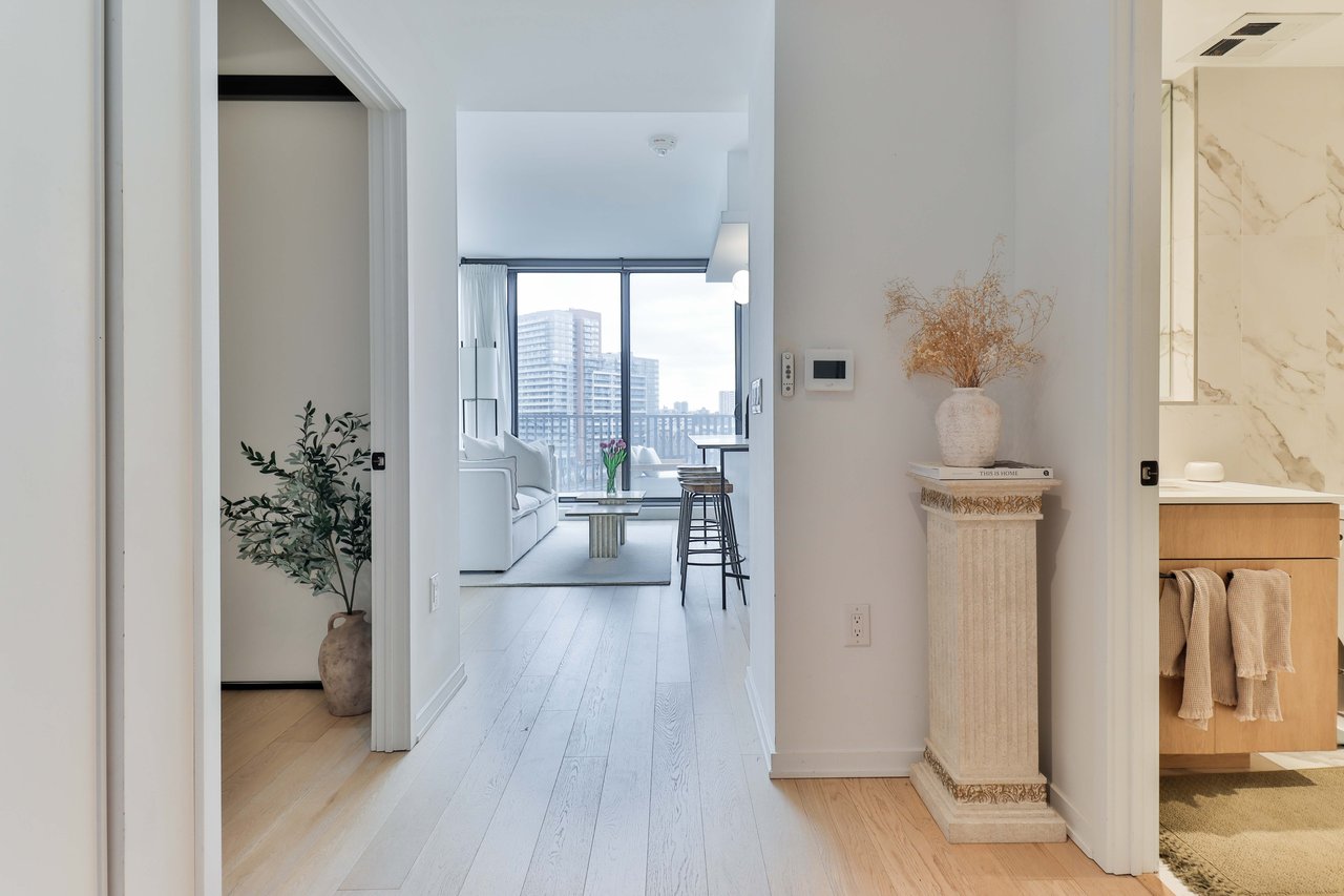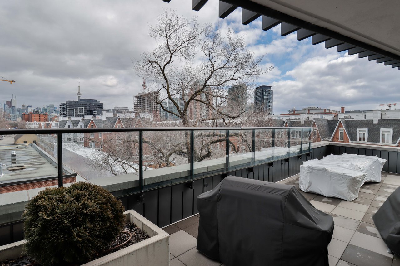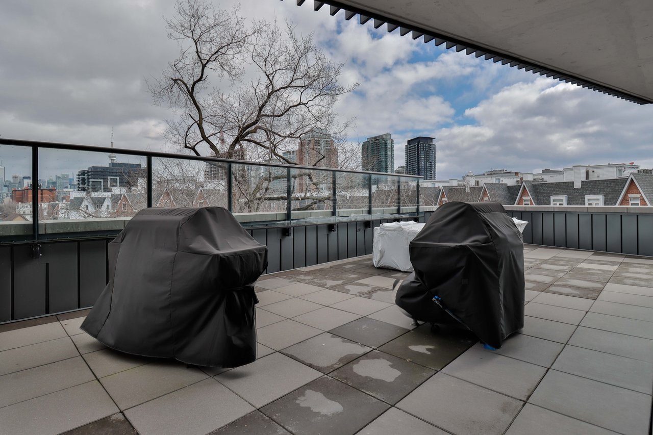Stunning Scandinavian Chic Design Condo In The Heart Of Queen West. This Two Bedroom Condo Boasts An Oversized Private Terrace Connected With A Gas Line To Bbq In The Summer. Chef's Style Kitchen With Full Sized Integrated Appliances, Gas Cooktop, Huge Centre Island And A24'' Kitchen Pantry. Primary Bedroom With Bright Western Windows & a W/I Closet & A Great Sized 2nd Bedroom. Many Upgrades Inc. Remote Blinds & Attention To Detail Throughout -This Condo Has It All!