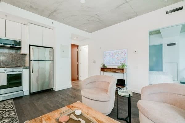 Seventy5 Portland. The Most Desirable Building In Toronto's Coveted & Central Fashion District, Walkable To Everything! Unit Boasts A Floor Plan Of Unmatched Efficiency W/High-End Finishes Throughout Including An Upgraded Scavolini Kitchen W/Stone Counters & New Appliances. Freshly Renovated Spa Like Bathroom Incl. Frameless Glass Shower W/Waterfall Rain Head. Large Full Length Balcony W/Xl Double Sliding Doors Create A Seamless Indoor/Outdoor Living Space.