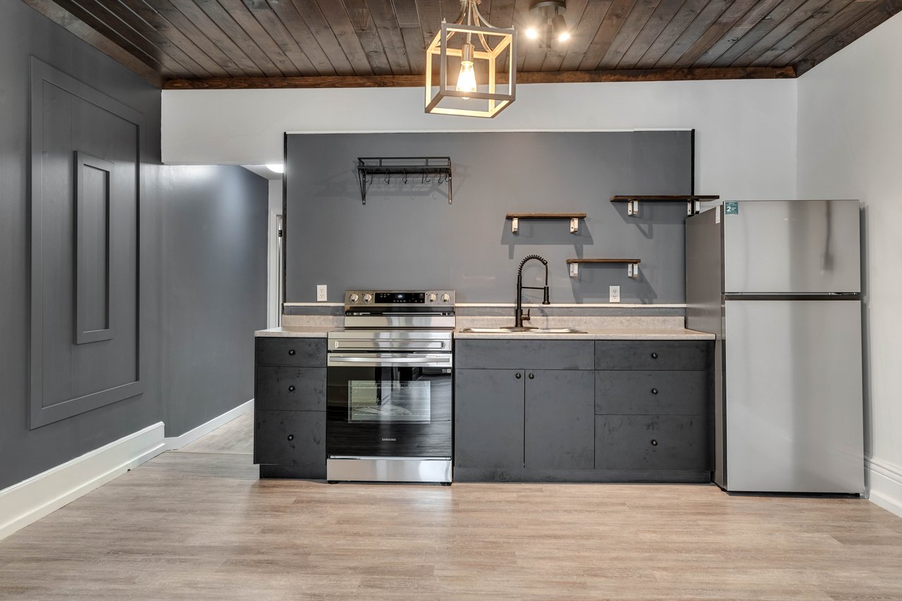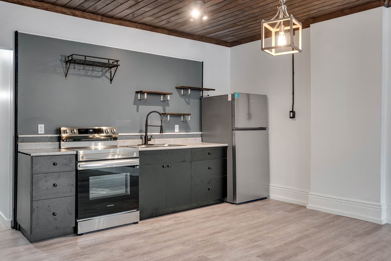 Discover this fully renovated, 1-bedroom apartment in the heart of downtown Bracebridge! Bright and modern, this space has been completely renovated with Muskoka style, freshly painted and features brand-new appliances and updated fixtures. Including a comfortable large sized bedroom and completely redone bathroom. The inviting living area includes a cozy fireplace, TV mount, and a large bay window. The spacious kitchen is equipped with a new fridge and stove. Enjoy additional ample storage. Move-in ready, this light-filled apartment with tons of character also offers on-site laundry facilities and optional parking per month. Don't miss your chance for this perfect rental spot in Historic downtown Bracebridge!