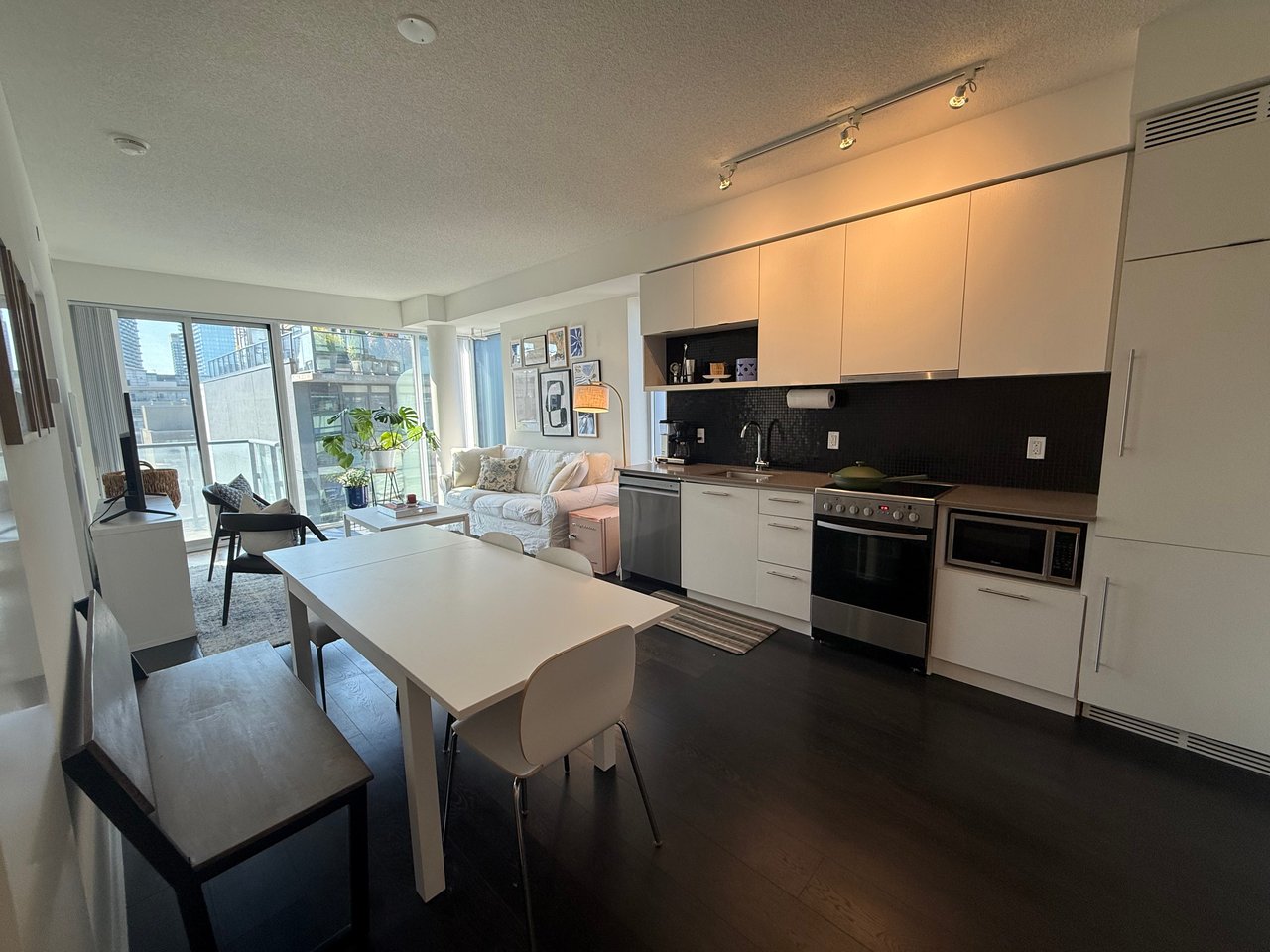 STUNNING and BRIGHT - 2 Bed/2 Bath At Fabrik Condos! Located In The Heart Of It All Nestled Right Between Queen West & King West. Grocery, Pharmacy, Transit, Cafes, Restaurants, Highway Access And Green Space All Within Minutes! This Unit Is Fabulously Laid-Out With Premium South/West Sunshine And Stunning City Views From Your Open Balcony.