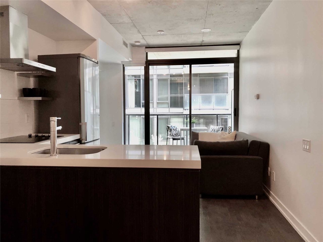In The Heart Of King West - A One Bedroom Opportunity Awaits. Floor To Ceiling Windows W/ Tons Of Natural Light. 9 Ft Concrete Ceilings, Hardwood Floors Throughout & Open Concept. Walking Distance To Entertainment District, Shops, Top Tier Restaurants, Transit, Park And Many More.