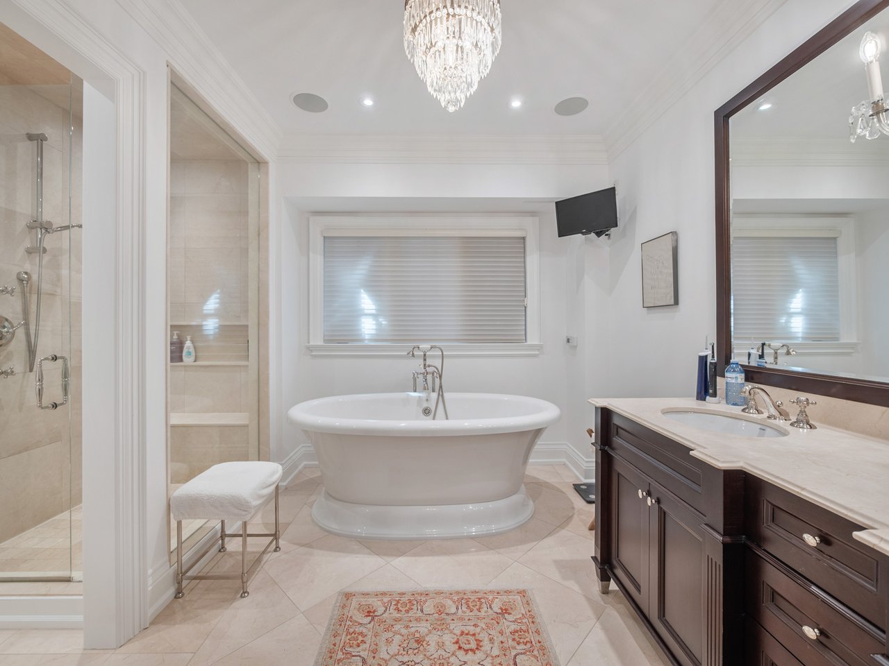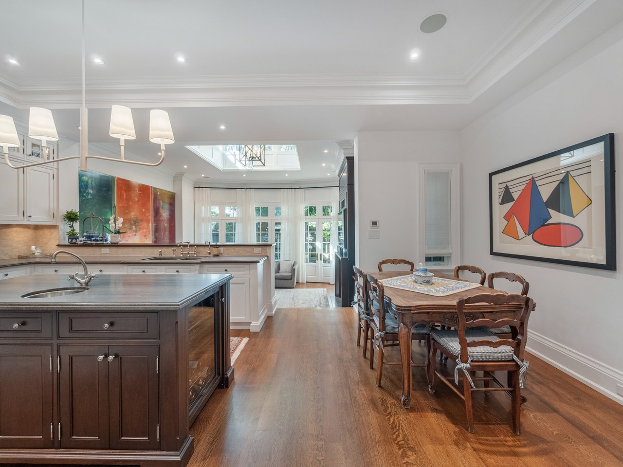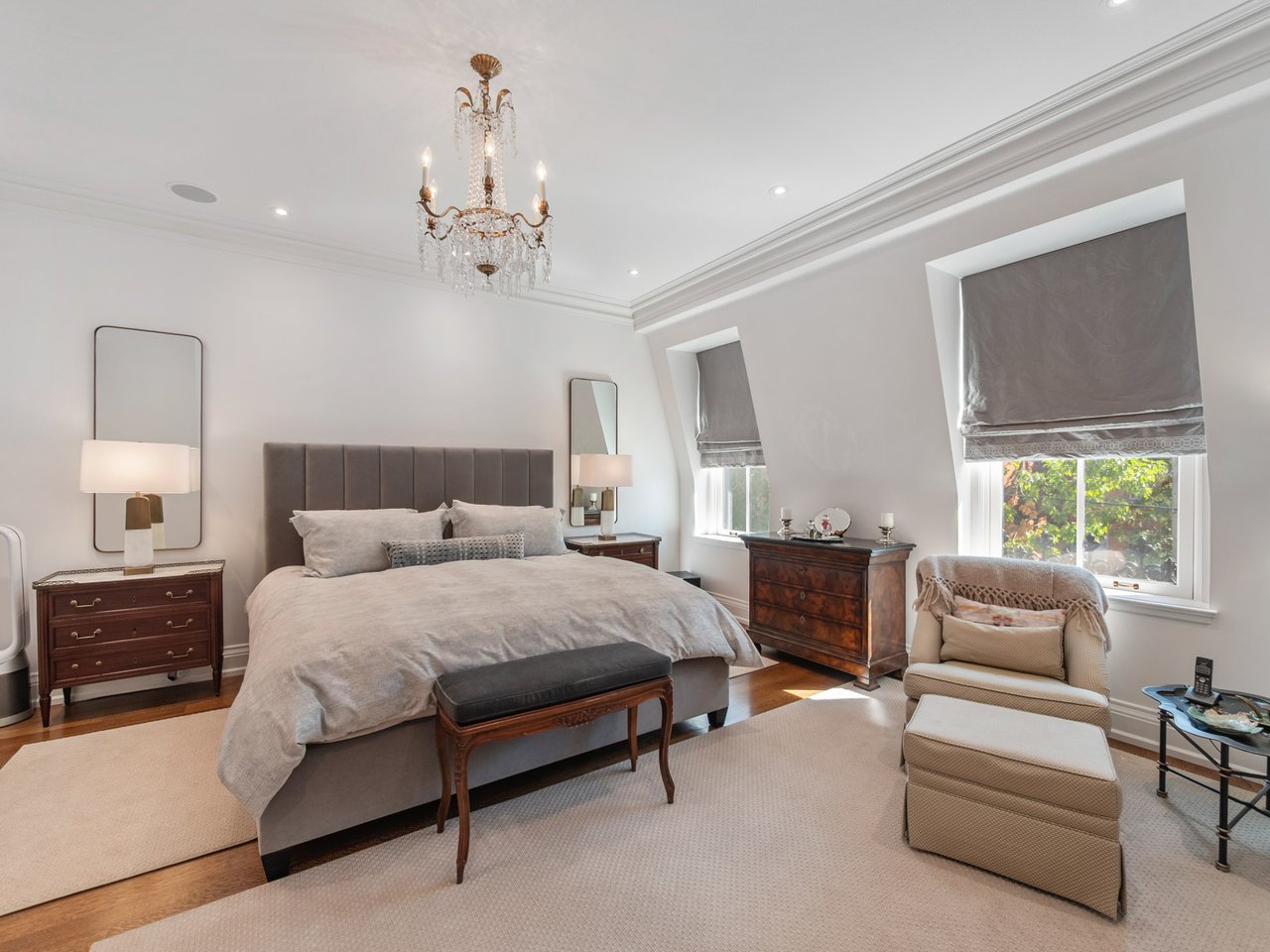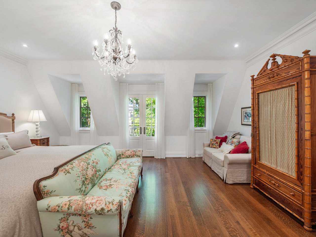 Steps from Yorkville, on one of the Annex’s most cherished tree-lined streets, this nearly 5,000 sqft detached Victorian residence by Richard Wengle masterfully balances timeless elegance with modern ease. Behind its preserved façade lies a complete architectural rebuild, where enduring craftsmanship and refined design are revealed at every turn. The family room makes a dramatic impression with soaring 11’8” vaulted ceiling, coffered detailing, and clerestory windows that bathe the space in natural light. A marble-clad fireplace and custom cabinetry ground the room, while French doors open onto a private garden terrace—an inviting extension of the living space, perfect for entertaining or quiet evenings. The chef’s kitchen is a showcase of bespoke cabinetry and Sub-Zero, Wolf, and Miele appliances, centred around a generous island designed for both cooking and gathering. Upstairs, the primary suite offers a sanctuary of comfort with a marble ensuite featuring heated floors, dual walk-in dressing rooms, and a fireplace. The second bedroom includes its own balcony walk-out, while the third floor provides a light-filled retreat with Juliette balcony, walk-in closet, and full bath—ideal for family, guests, or a home office. The lower level is designed for wellness and recreation, complete with a gym, sauna, steam shower, and lounge. An elevator connects the main living areas with ease, ensuring both convenience and longevity. A home of rare distinction—detached, elegant, and designed for those who value sophistication without compromise.