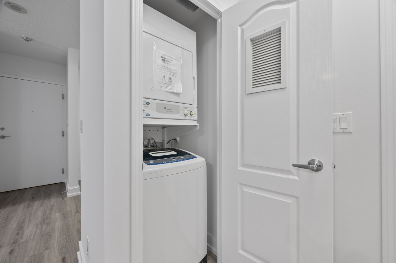 This spacious one-bedroom + den offers 715 square feet of thoughtfully designed living space. The modern, open-concept kitchen features a breakfast bar that seamlessly connects to the living and dining areas. Residents can enjoy a variety of amenities, including a concierge, gym, and a rooftop terrace with BBQs, along with a party room and lounge, movie theatre, and golf simulator for added entertainment. Situated in the heart of the city, this property offers unmatched proximity to the subway, financial district, entertainment district, and the lively neighbourhoods of King and Queen West, with easy access to the Gardiner Expressway. Experience Toronto's finest restaurants, theatre, shopping, and vibrant city life right at your doorstep!