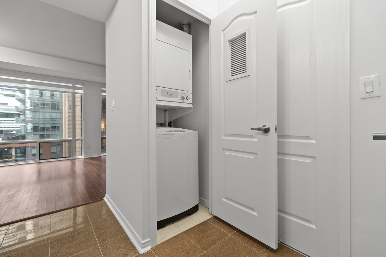 This Spacious One-Bedroom Offers 595 Square Feet Of Thoughtfully Designed Living Space. The Modern, Open-Concept Kitchen Features A Breakfast Bar That Seamlessly Connects To The Living And Dining Areas. Residents Can Enjoy A Variety Of Amenities, Including A Concierge, Gym, And A Rooftop Terrace With BBQs, Along With A Party Room And Lounge, Movie Theatre, And Golf Simulator For Added Entertainment. Situated In The Heart Of The City, This Property Offers Unmatched Proximity To The Subway, Financial District, Entertainment District, And The Lively Neighbourhoods Of King And Queen West, With Easy Access To The Gardiner Expressway. Experience Toronto's Finest Restaurants, Theatre, Shopping, And Vibrant City Life Right At Your Doorstep!