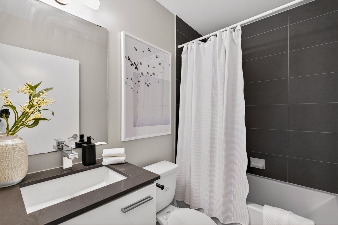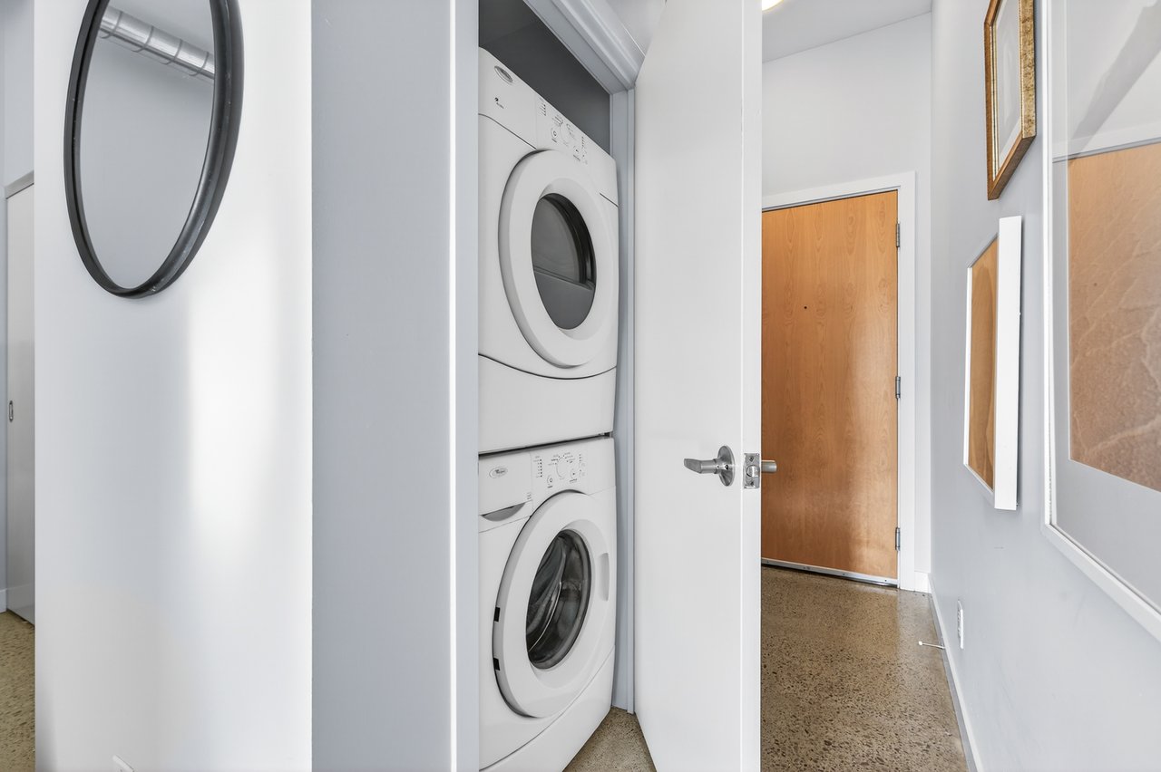 includes a 4-piece washroom, generous storage throughout, plus the convenience of a full-sized stacked washing machine and dryer. Building amenities include: gym, party room, rooftop terrace and meeting room! Commuting is a breeze, being close to several transit lines, and just