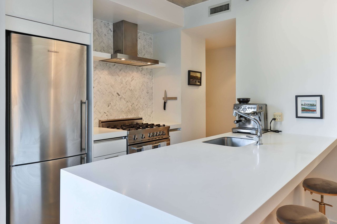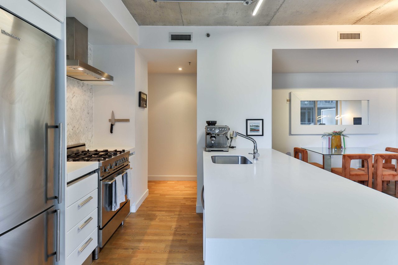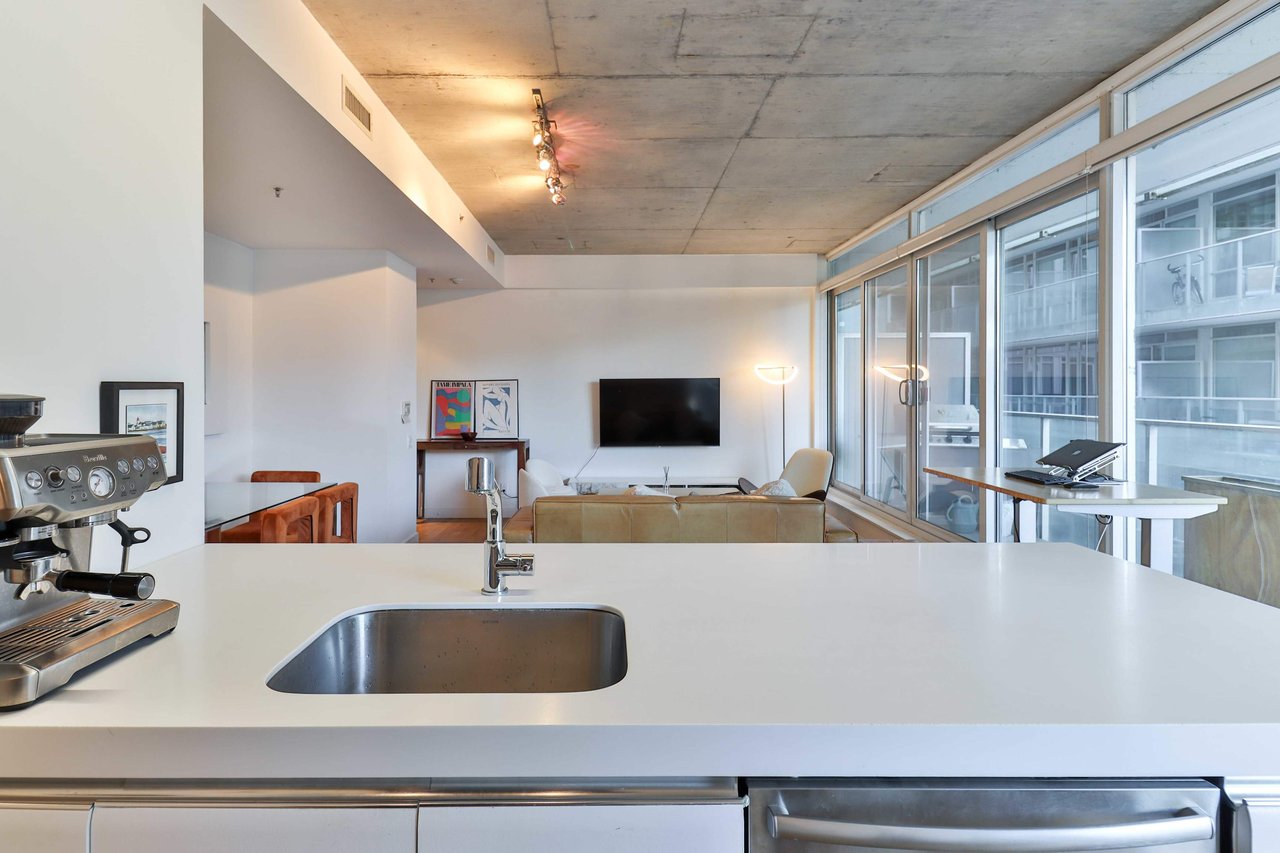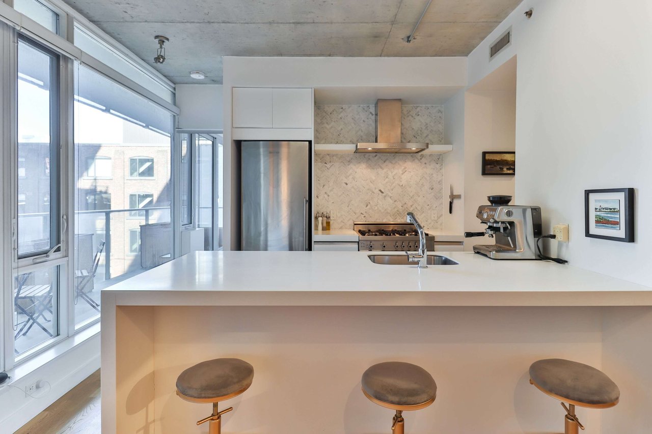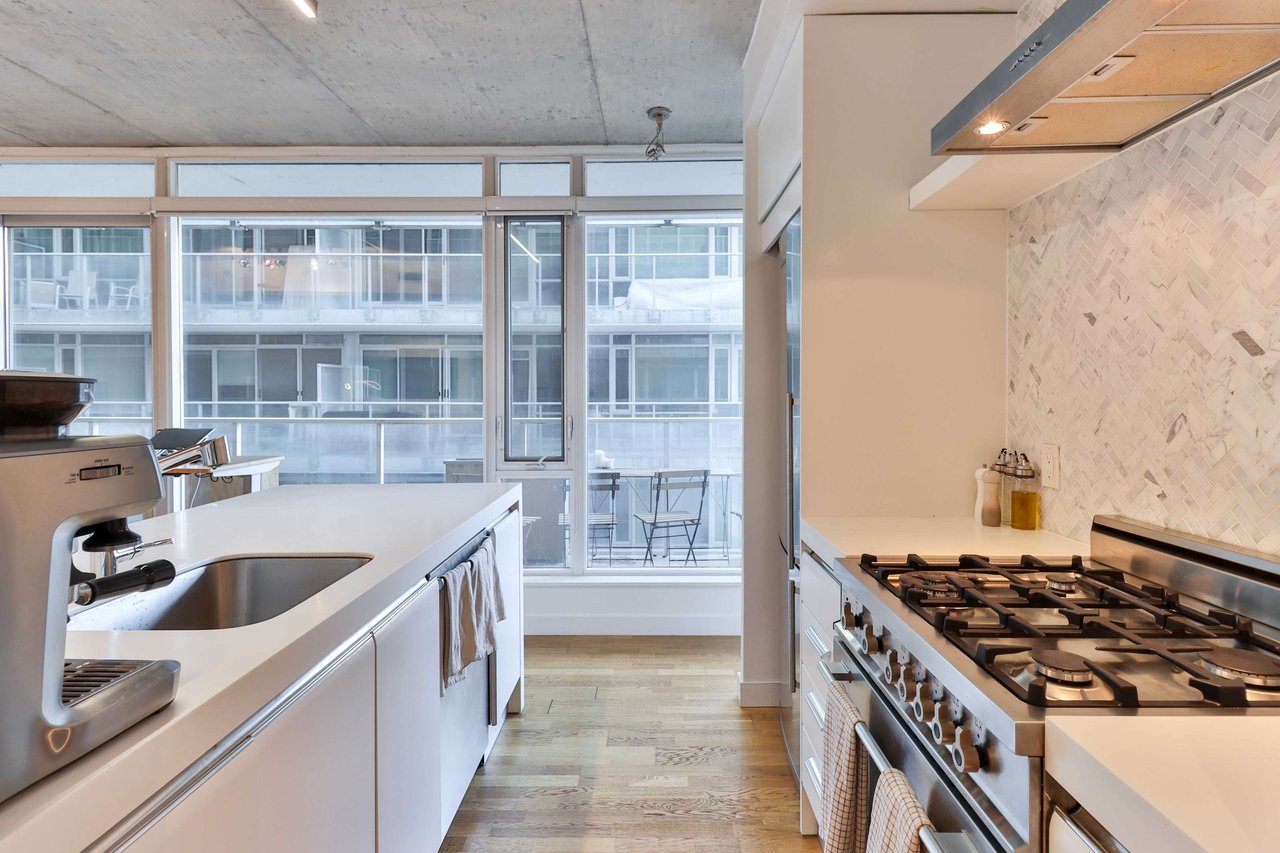Welcome To Seventy5 Portland, One Of King West's Most Sought-After Buildings. A Sleek Building Designed By Philippe Starck, A French Designer Who Is Globally Recognized As A Leading Innovator In Modern Contemporary Design. This Corner Unit Has A Spacious & Functional Layout At 737 Sf + Huge 176 Sf Balcony W/ Gas Hookup For Bbq And Dual Access From Living Rm & Bedroom. This Unit Features 9' Exposed Concrete Ceilings, Expansive Floor-To-Ceiling Windows, Gorgeous Scavolini Kitchen W/ Gas "Bertazonni" Range, Herringbone Backsplash, Eat-In Island & Renovated Bathroom. Be In The Heart Of Vibrant King West And Enjoy All That It Has To Offer: Some Of The City's Top Restaurants, Great Patios, Amazing Cafes & Bars! Close To Everything You Need, Including 3 Parks (With Off-Leash Dog Areas), TTC, The Well, Gardiner Expressway, Queen West, Waterfront, Rogers Centre, Entertainment District, Stackt Market, Grocery, Gyms, Yoga Studios & Much More!