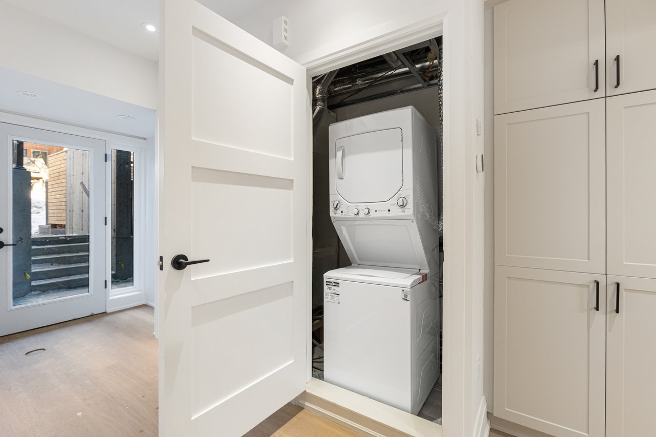 Limited Time Incentive - Apply Before April 1st And Receive 1 Months Free Rent! Modern Living In A Private Leslieville Enclave! A Rare Opportunity To Experience Elevated Urban Life On A Tranquil Cul-De-Sac With No Through-Traffic. Be The First To Call This Beautifully Appointed 2-Bedroom, 2-Full-Bathroom Residence Home. Featuring Its Own Private Entrance On Raised Lower Level, This Suite Offers The Privacy With The Sleek Design Of A Contemporary Build. The Bright, Open-Concept Layout Is Designed For Effortless Entertaining And Everyday Comfort. A Chef-Inspired Kitchen Anchors The Space, Complete With A Large Centre Island, Full-Sized Stainless Steel Appliances, Premium Stone Countertops, And High-End Finishes That Elevate Both Form And Function. The Seamless Flow Between Kitchen And Living Areas Creates An Inviting Atmosphere. Enjoy The Front-Facing Outdoor Space, Perfect For Morning Coffee Or Unwinding After A Long Days Work. All Light Fixtures And Window Coverings Are Included [Roller Blinds Throughout]. Suite Boasts Two Generously Sized Bedrooms That Provide Flexibility For Families, Guests, Or A Dedicated Home Office. The Primary Bedroom Retreat Features A Private 3pc Ensuite Bathroom And Custom-Built Closets. Ideally Situated In A Quiet, Child-And-Pet-Friendly Pocket Of Leslieville, Yet Steps To Trendy Cafés, Acclaimed Restaurants, Local Boutiques, And Artisan