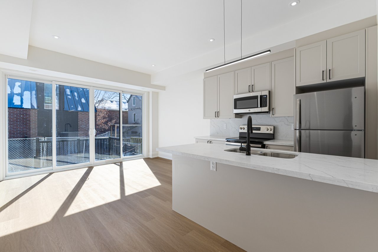 Limited Time Incentive - Apply Before April 1st And Receive 1 Month Free Rent! Modern Living In A Private Leslieville Enclave! A Rare Opportunity To Experience Elevated Urban Life On A Tranquil Cul-De-Sac With No Through-Traffic. Be The First To Call This Beautifully Appointed 2-Bedroom, 2-Full-Bathroom Residence Home. Featuring Its Own Private Entrance, This Suite Offers Privacy And The Sleek Design Of A Contemporary Build. The Bright, Open-Concept Layout Is Designed For Effortless Entertaining And Everyday Comfort. A Chef-Inspired Kitchen Anchors The Space, Complete With A Large Centre Island, Full-Sized Stainless Steel Appliances, Premium Stone Countertops, And High-End Finishes That Elevate Both Form And Function. The Seamless Flow Between Kitchen, Dining, And Living Areas Creates An Inviting Atmosphere. Enjoy Outdoor Living On The Back Deck Overlooking A Private, Fenced Backyard. Perfect For Relaxing Evenings, Entertaining Guests, Or Letting Pets And Kids Play Freely. All Light Fixtures And Window Coverings Included [Roller Blinds Throughout]. Two Generously Sized Bedrooms That Provide Flexibility For Families, Guests, Or A Dedicated Home Office. The Primary Bedroom Retreat Features A Private 3pc Ensuite Bathroom And Sizeable Closet. Ideally Situated In A Quiet, Child-And-Pet-Friendly Pocket Of Leslieville, Yet Steps To Trendy Cafés, Acclaimed Restaurants, Local Boutiques, And Artisan Shops Along Queen Street East. Tenant To Pay Hydro & Water. On-Site Bike Storage Is Available, Perfect For Commuting Or Exploring The Vibrant Surroundings. Enjoy Easy Access To TTC, Nearby Parks, And The Unique Sense Of Community That Makes This Area One Of Toronto's Most Desirable Places To Live.