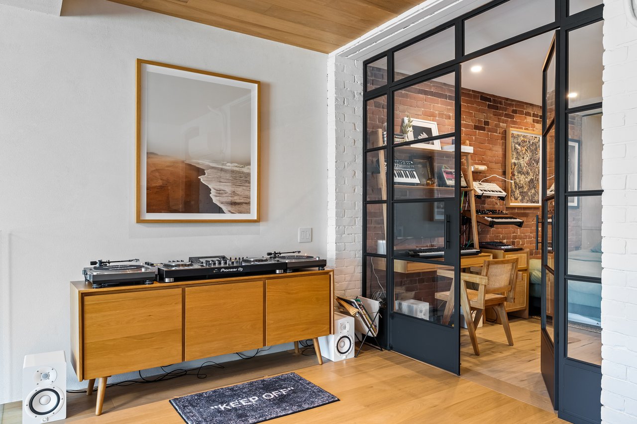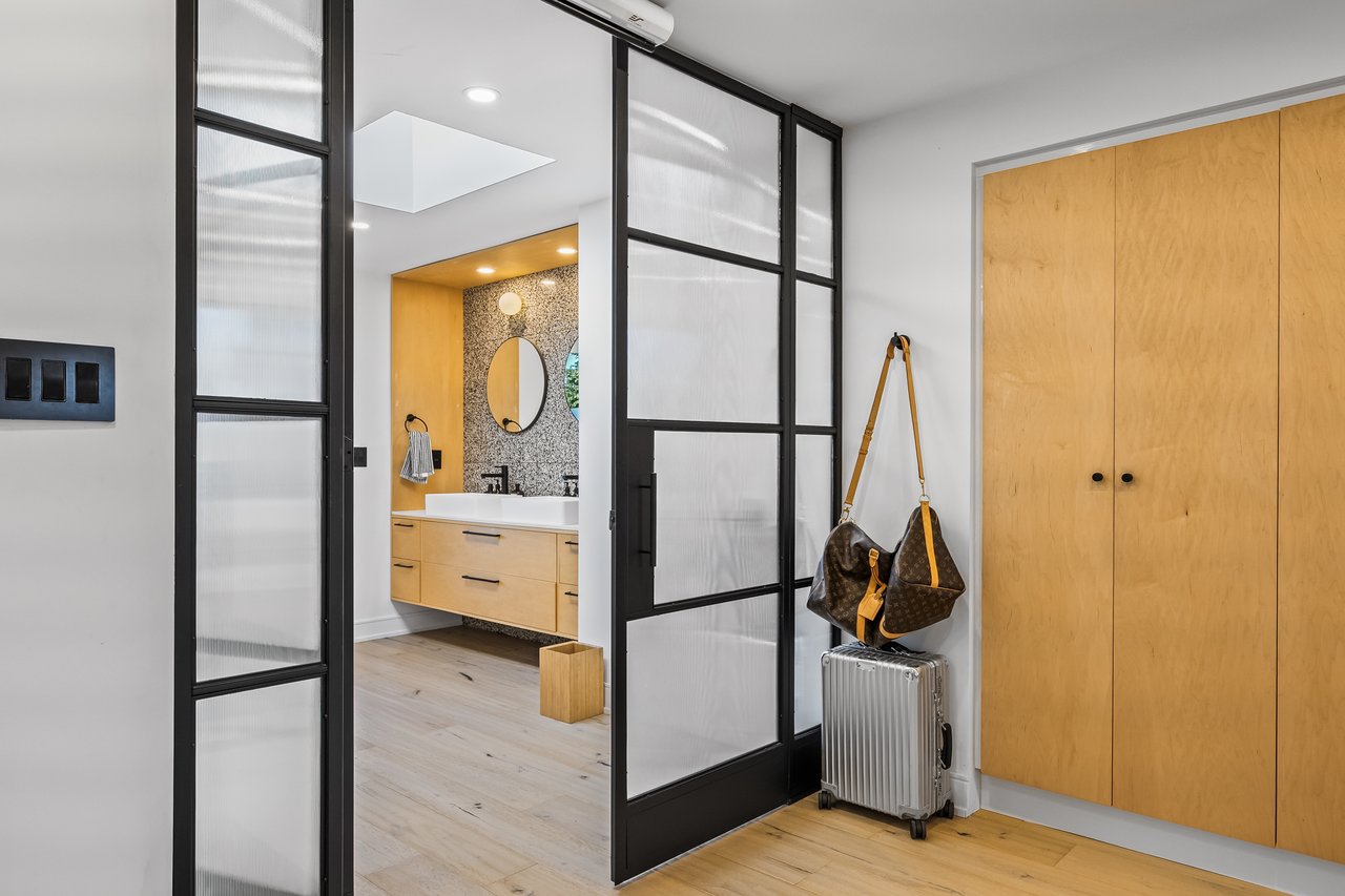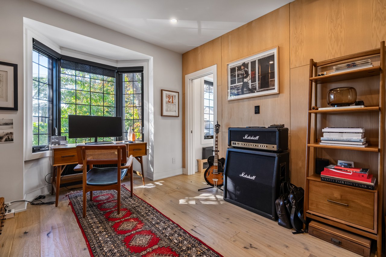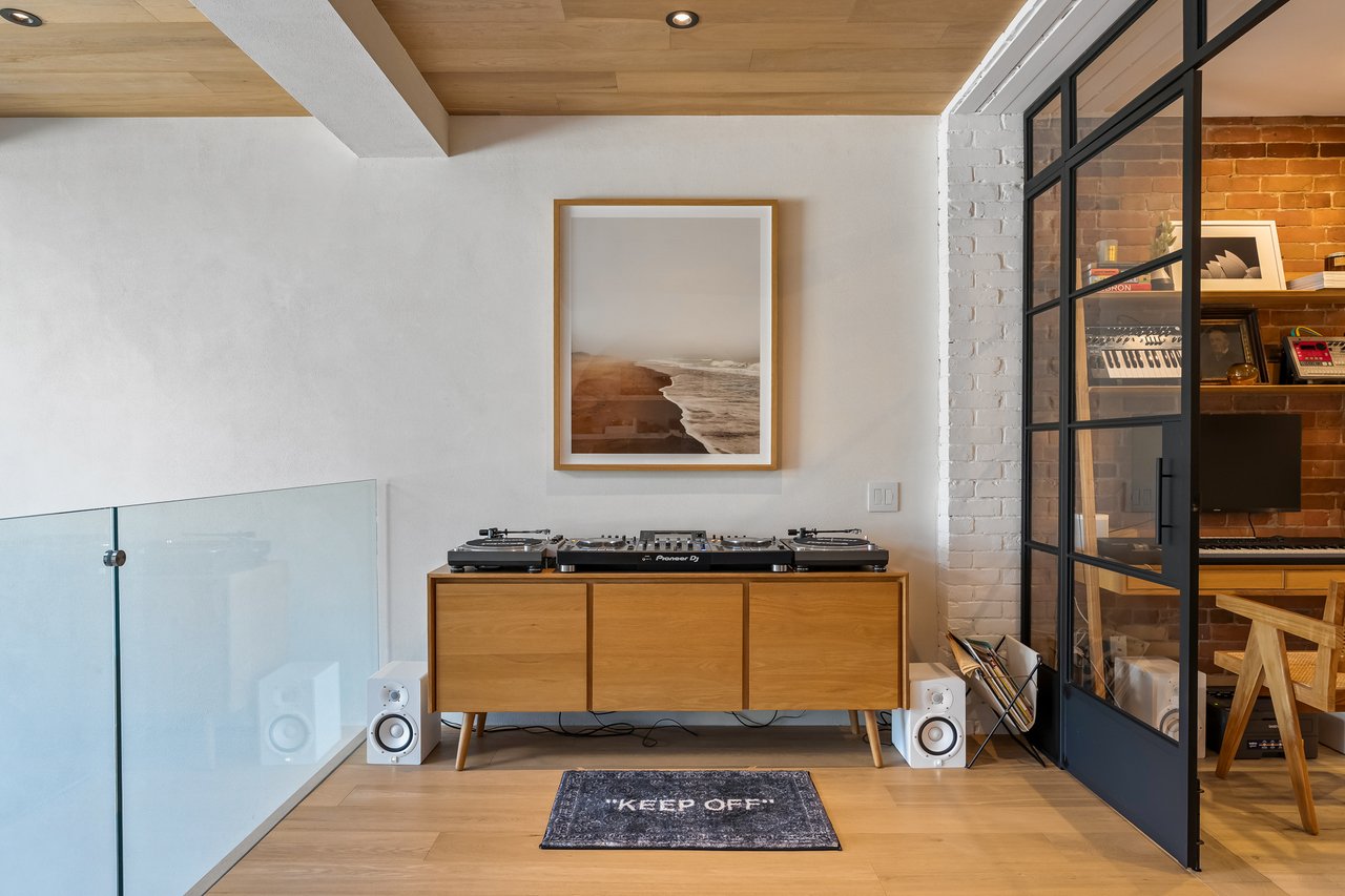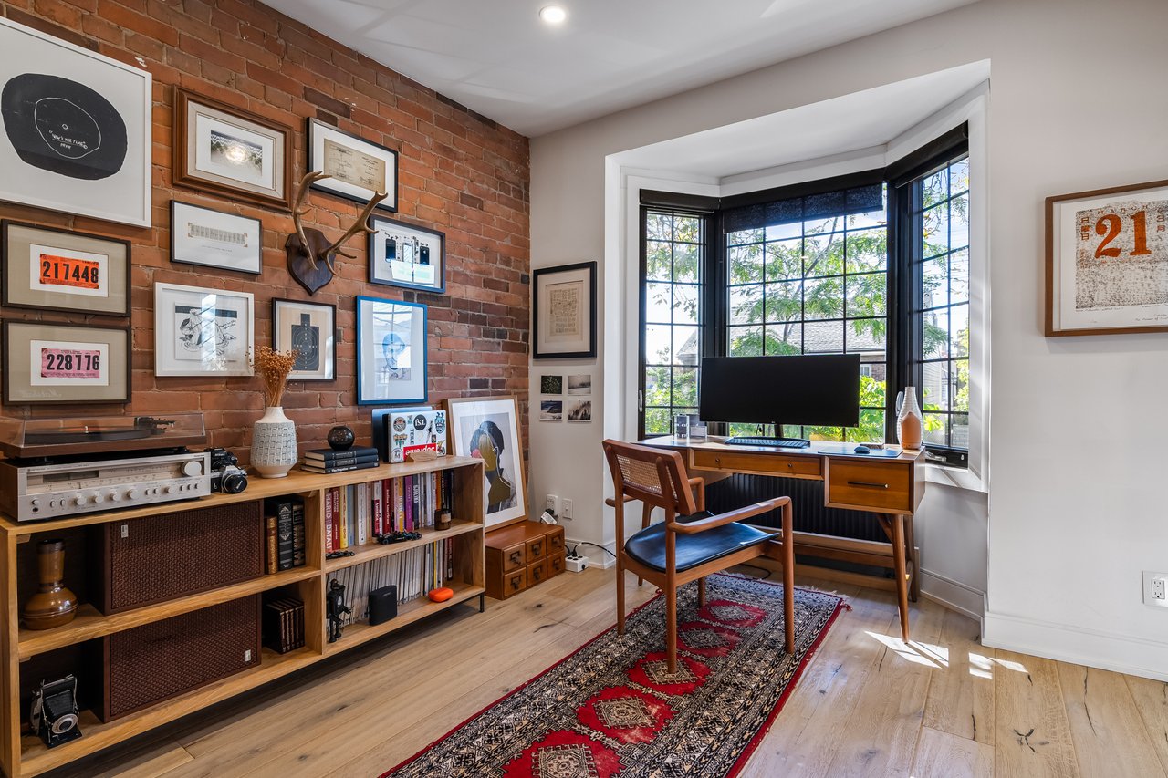 Discover an extraordinary architectural residence on Palmerston Avenue, one of Trinity Bellwoods' most sought-after streets. With history dating back to the 1860s, the home has gone through an extensive transformation, including a remarkable custom addition crafted by Whitaker Construction, a firm widely regarded as one of the city's leading builders, elevating it into a true design landmark. Featured earlier this year in the Toronto Star in an article titled "Is this the coolest living room in Toronto?" the answer is, yes. The main living space showcases striking 20-foot ceilings anchored by a sprawling sunken lounge, designed with a clean aesthetic that blends warmth with modern design. With east and west exposure, the combination of floor-to-ceiling glass and two large skylights allows natural light to pour through the entire home. The property features meticulous millwork in natural oak, micro-cement walls, heated concrete floors, and recessed lighting that together create a sense of calm sophistication. A beautifully designed mezzanine level, part of the custom addition, overlooks the main living space and features a serene library with arched custom shelving, creating an inspiring, light-filled vantage point with views of the city skyline. This thoughtfully planned 3-bedroom residence includes an entire third level dedicated to the primary retreat, featuring a spa-like ensuite that extends to an expansive private rooftop terrace, partially covered and perfectly positioned for Toronto skyline and CN Tower views. An oversized double-sided 1.5 car garage provides exceptional functionality, accommodating two smaller vehicles or offering ample additional space. The lower level includes a washroom and a dedicated area ideal for storage. Celebrating craftsmanship and innovation at every turn, every element has been curated with exceptional intention, resulting in a home that is both artful and livable, an inspired piece of architecture rarely found in the city.