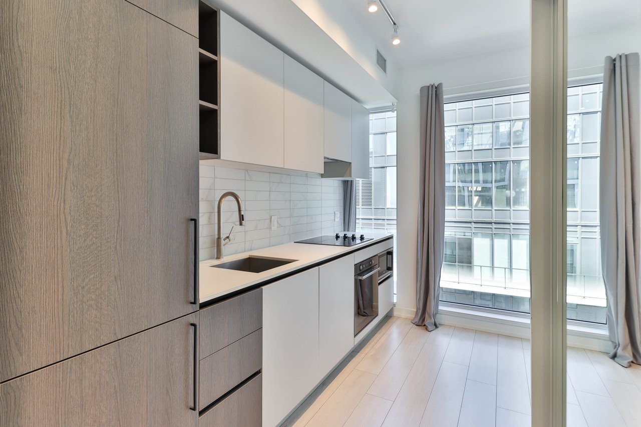 Welcome To This Stylish And Exceptionally Designed Bachelor Unit At 55 Mercer St! This Bright And Spacious Suite Offers Nearly 400 Sq Ft Of Thoughtfully Planned Living Space With A Smart, Functional Layout That Truly Stands Out. Unlike Typical Bachelor Units, This Floor Plan Features A Defined Living/Sleeping Area With A Natural, Comfortable Flow. Other Features Include 9 Ft Ceilings, Floor-To-Ceiling Windows, A Sleek Kitchen With Built-In Appliances, Quartz Countertops, Huge Bathroom With Walk-In Glass Shower, And Modern Finishes Throughout. Enjoy Access To Amenities That You Will Love Including A Fitness Centre With Peloton Rooms, Outdoor Fitness And Basketball Court, Co-Working Spaces, Rooftop BBQs & Fire Pits, A Gorgeous Party Room,24/7 Concierge & More. Perfectly Situated With Close Proximity To The Path, TTC, Rogers Centre, CN Tower, Scotiabank Arena, Union Station, Financial District, Eaton Centre, Trendy King West, Restaurants, Cafes, Nightlife, And Everyday Conveniences - This Is Downtown City Living At Its Best!