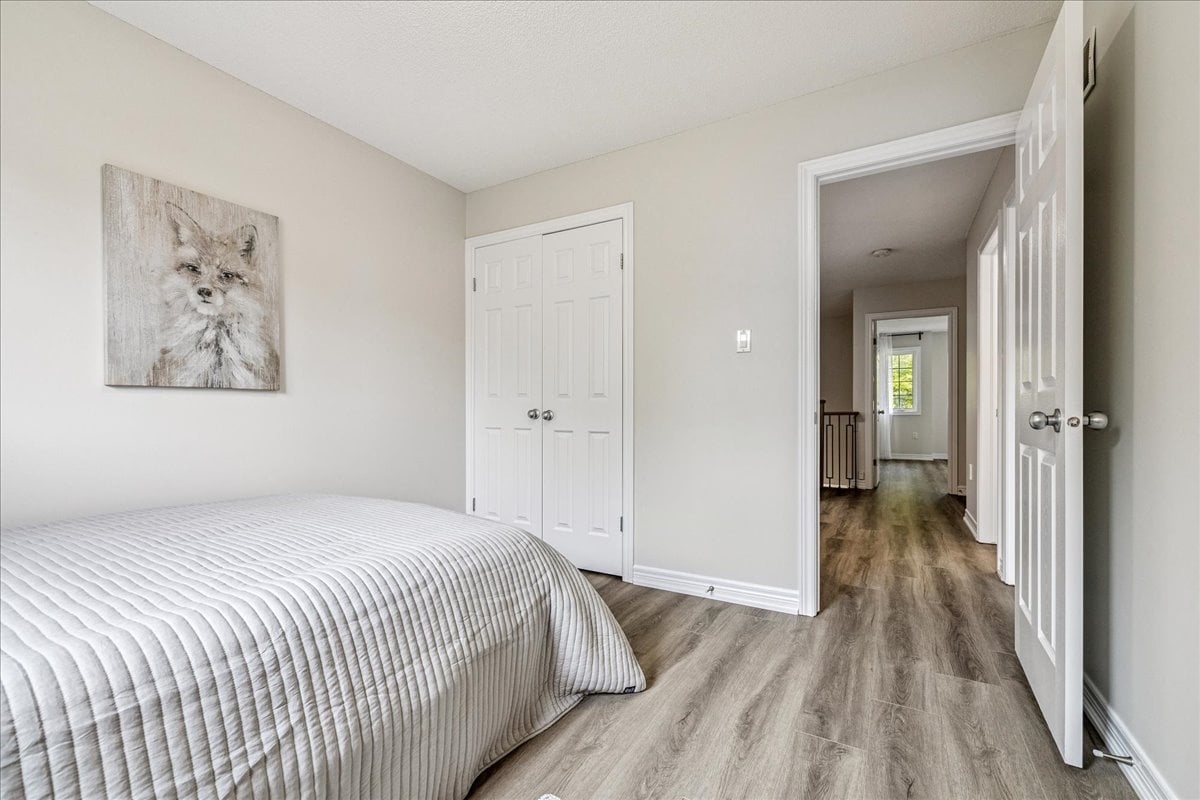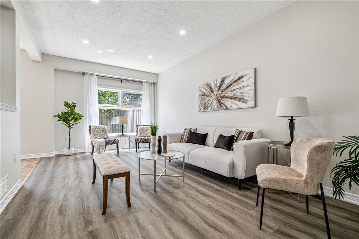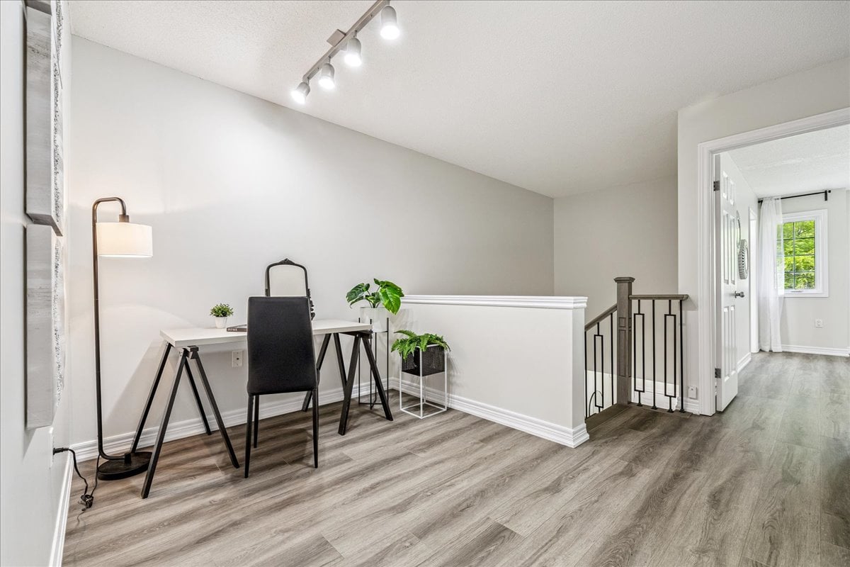 Step into this beautifully updated townhome, tucked away in a small, well-managed, and meticulously maintained complex with low condo fees. Offering 3 spacious bedrooms plus a spacious upper-level office nook, this home is perfect for families, professionals, or anyone seeking flexible living space. Enjoy a long list of recent updates including a modern stairway and railing, fresh paint throughout, new baseboards and door frames, updated flooring on every level, granite countertops, new kitchen appliances, roof shingles (2021), and a new garage door. The fully finished basement (2025) provides even more room to relax, work, or entertain. Ideally located close to a long list of shops, great highway access, parks and trails, excellent schools, and a local cinema — this home delivers comfort, style, and convenience in one well-rounded package.