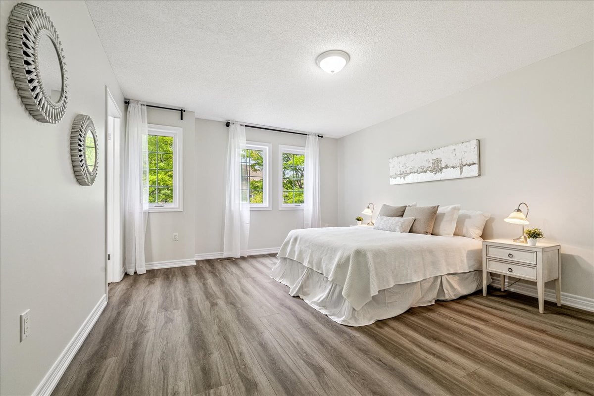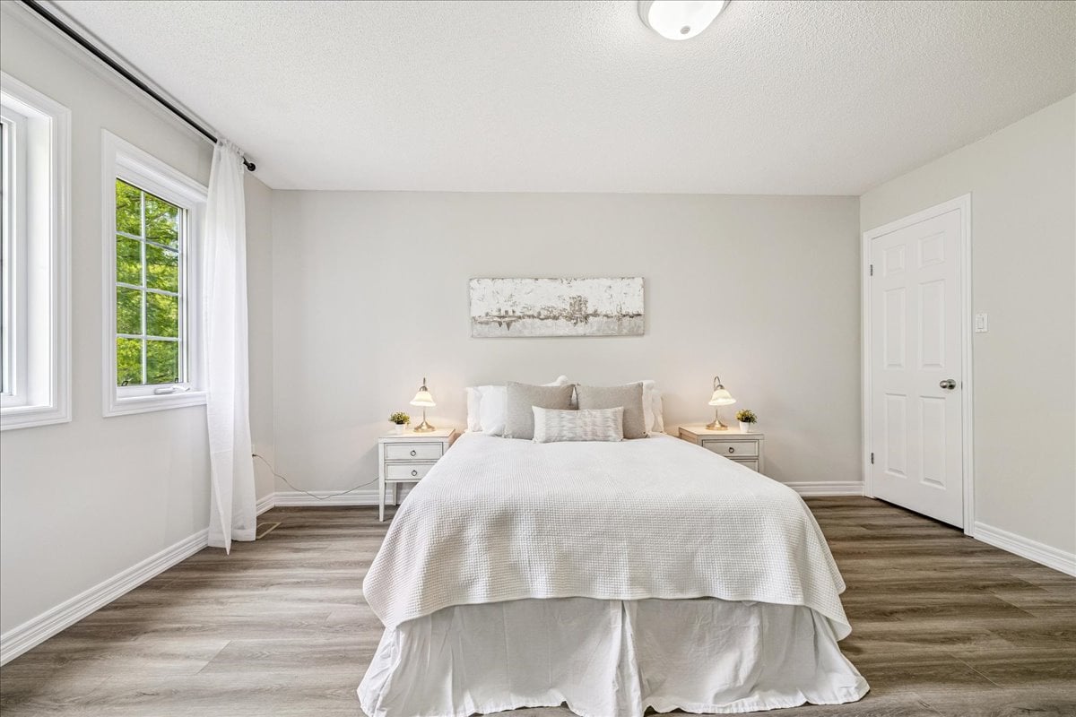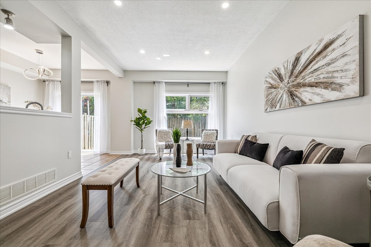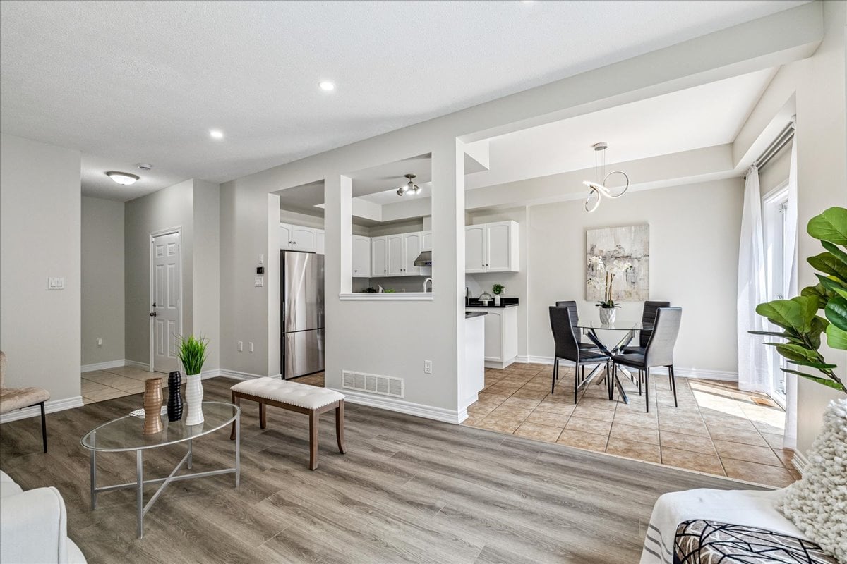 Step into this beautifully updated townhome, tucked away in a small, well-managed, and meticulously maintained complex with low condo fees. Offering 3 spacious bedrooms plus a spacious upper-level office nook, this home is perfect for families, professionals, or anyone seeking flexible living space. Enjoy a long list of recent updates including a modern stairway and railing, fresh paint throughout, new baseboards and door frames, updated flooring on every level, granite countertops, new kitchen appliances, roof shingles (2021), and a new garage door. The fully finished basement (2025) provides even more room to relax, work, or entertain. Ideally located close to a long list of shops, great highway access, parks and trails, excellent schools, and a local cinema — this home delivers comfort, style, and convenience in one well-rounded package.