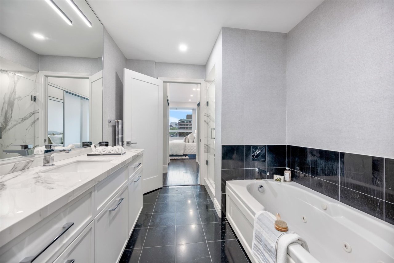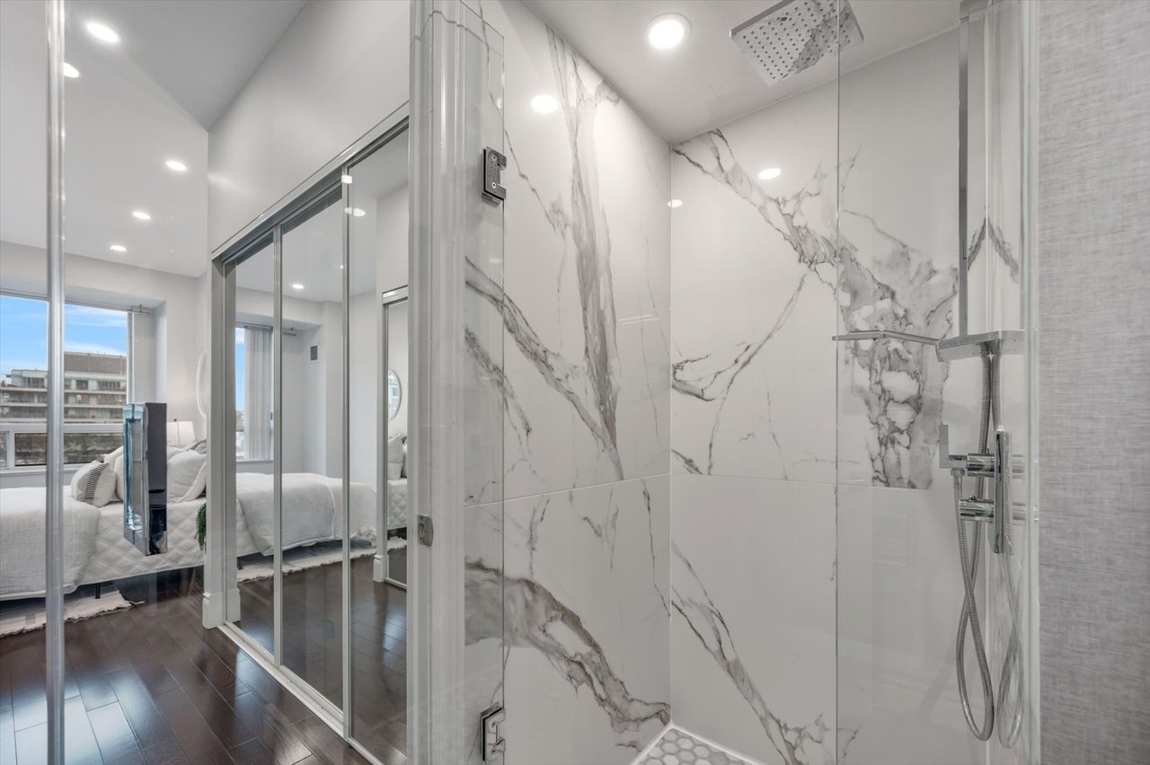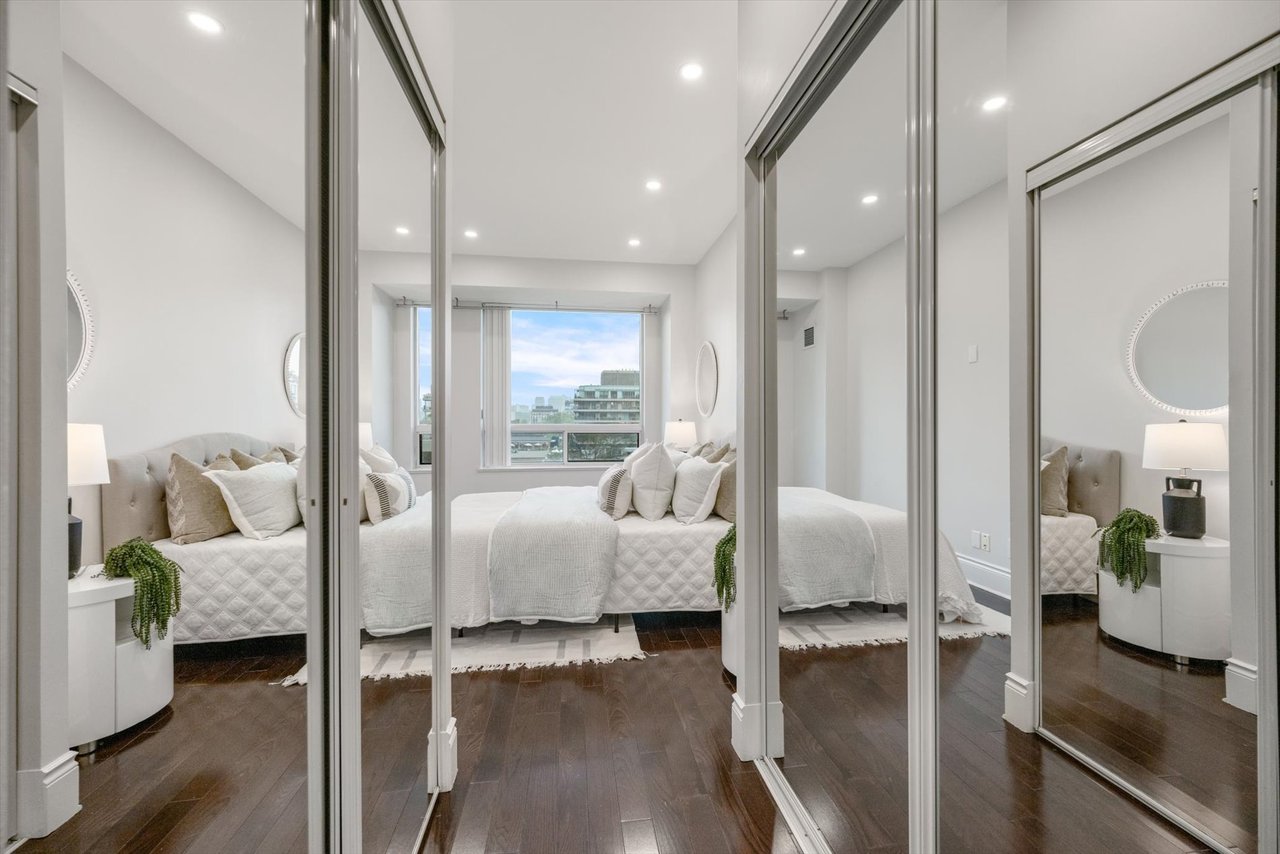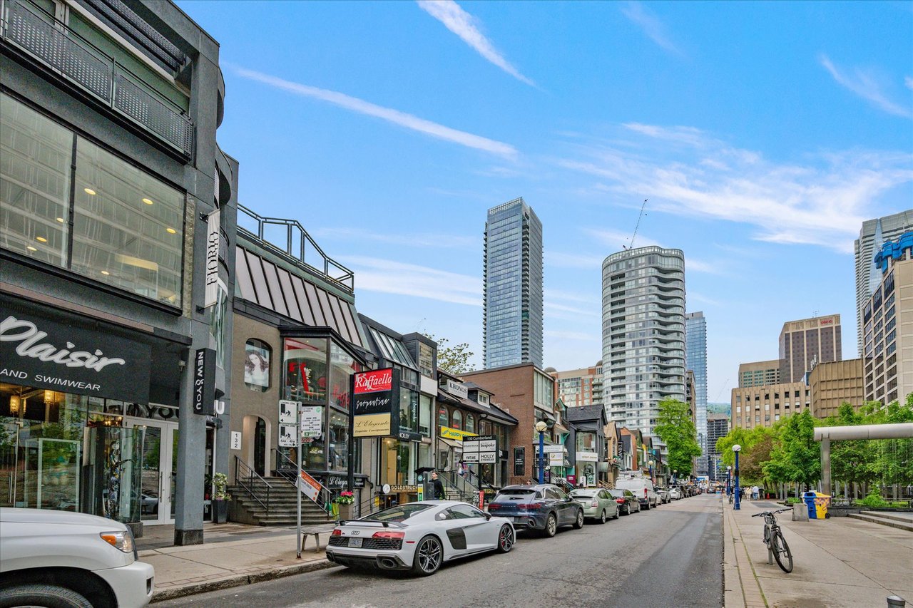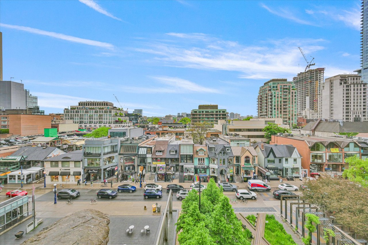 Experience refined urban living in this beautifully updated 1-bedroom residence, offering captivating views over Yorkville. Perfectly situated near the TTC, Yorkville, and Bloor amenities, this approximately 900 sq. ft. home blends modern elegance with timeless charm. The spacious primary bedroom includes dual closets and ensuite access to a luxurious soaker tub plus a separate walk-in shower. Hardwood floors flow throughout the living spaces, complemented by sleek stainless steel appliances in the newly renovated kitchen. Additional highlights include a same-floor locker, available parking opportunities at 10 Bellair, marble flooring in the entrance, kitchen, and bathroom, pot lights, and expansive windows framing clear, unobstructed views. The custom-renovated kitchen features stone countertops and a bar, while the designer bathroom showcases a custom vanity and marble walk-in shower. Modern doors and hardware, generous closet space, and 24-hour concierge service complete this outstanding opportunity. Dont miss it!