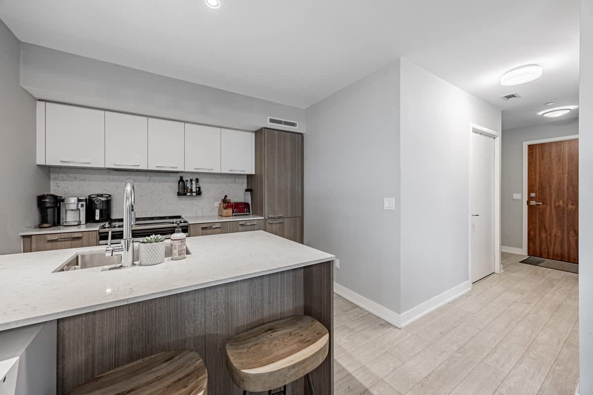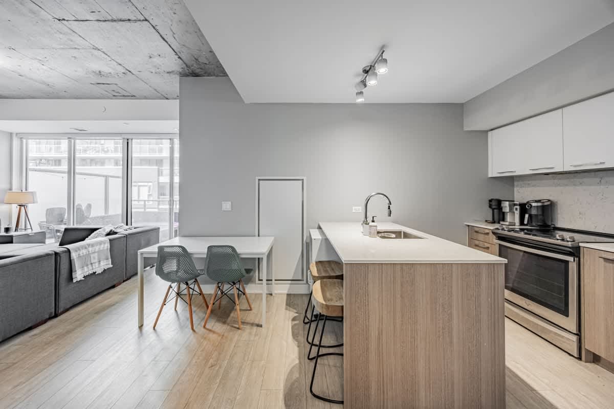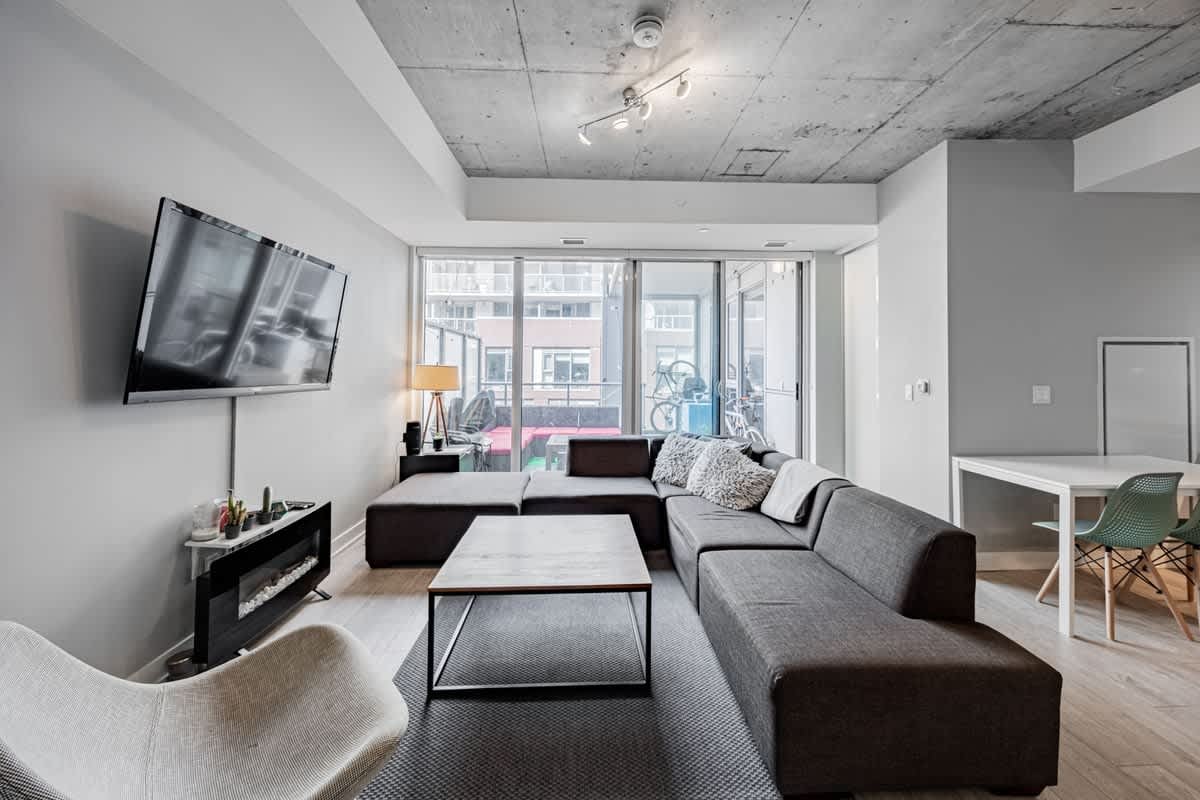 Discover This Welcoming 3-Bedroom Unit In A Modern Building! Approximately 1000SF, Enjoy Open-Concept Living With Large Floor-To-Ceiling Windows That Create A Seamless Indoor-Outdoor Flow. The Sleek Kitchen Is A Standout Feature, Equipped With Integrated Appliances, A Large Island, And Plenty Of Counter Space For Cooking And Entertaining. The Unit Also Boasts A Spacious Terrace With A Gas Line And BBQ, Perfect For Gatherings. The Primary Bedroom Includes An Ensuite Bathroom And A Generously Sized Area, While The Other Two Bedrooms Offer Massive Closets And Ample Space. Additional Highlights Include A Full-Size Ensuite Laundry And An Oversized Main Bathroom With Additional Storage. Embrace The Vibrant Neighbourhood With Shopping, Dining, And TTC Access, Including King And Queen Streetcars, Right At Your Doorstop. Ideal For 2-3 Roommates Seeking Economical Living With Increased Living Space In Toronto Or A Young Family!