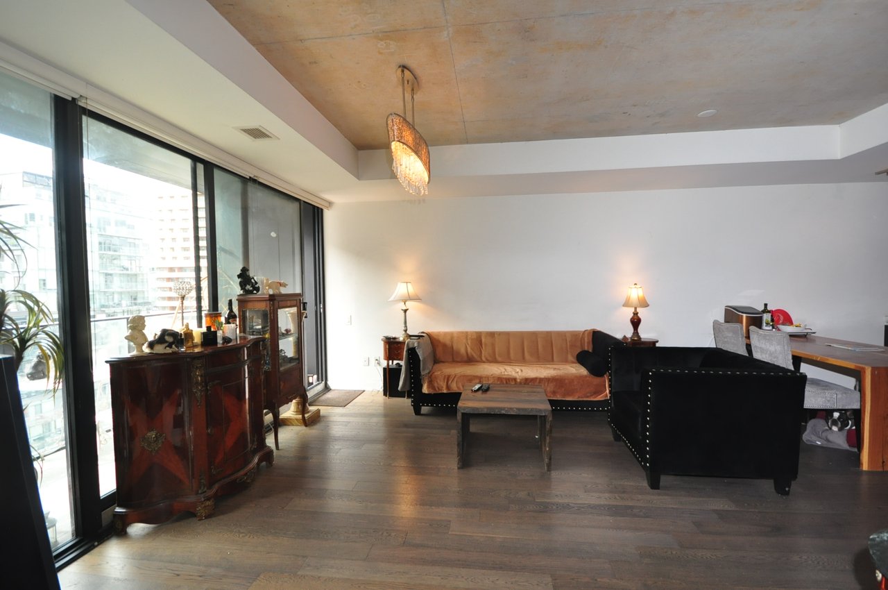 Thompson Residences in the heart of King West where luxury meets lifestyle. This oversized 1-bedroom suite offers open-concept living with soaring exposed concrete ceilings, floor-to-ceiling windows and modern finishes. The great layout features a designer kitchen with integrated appliances, a large living/dining area perfect for entertaining as well as a-walkout to large balcony with BBQ gas line hookup, an elegant bathroom and tons of storage in the extra large closet. Situated in one of Toronto's most popular condos with 24/7 concierge, a world-class gym, and Lavelle rooftop pool and bar. Located in one of Toronto's most vibrant neighbourhoods with everything at your fingertips, surrounded by the best restos, lounges and cafes. Steps to multiple grocery stores (Metro, Farm Boy), the LCBO, The Well, Waterworks Food Hall and more. You'll have multiple TTC options at your front door! A short walk to the Financial District, Queen West, Stackt Market, Lakefront trails, Kensington Market, China Town and the Ossington Strip. Parking And locker included.