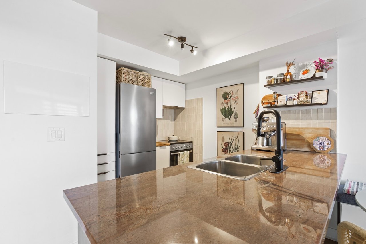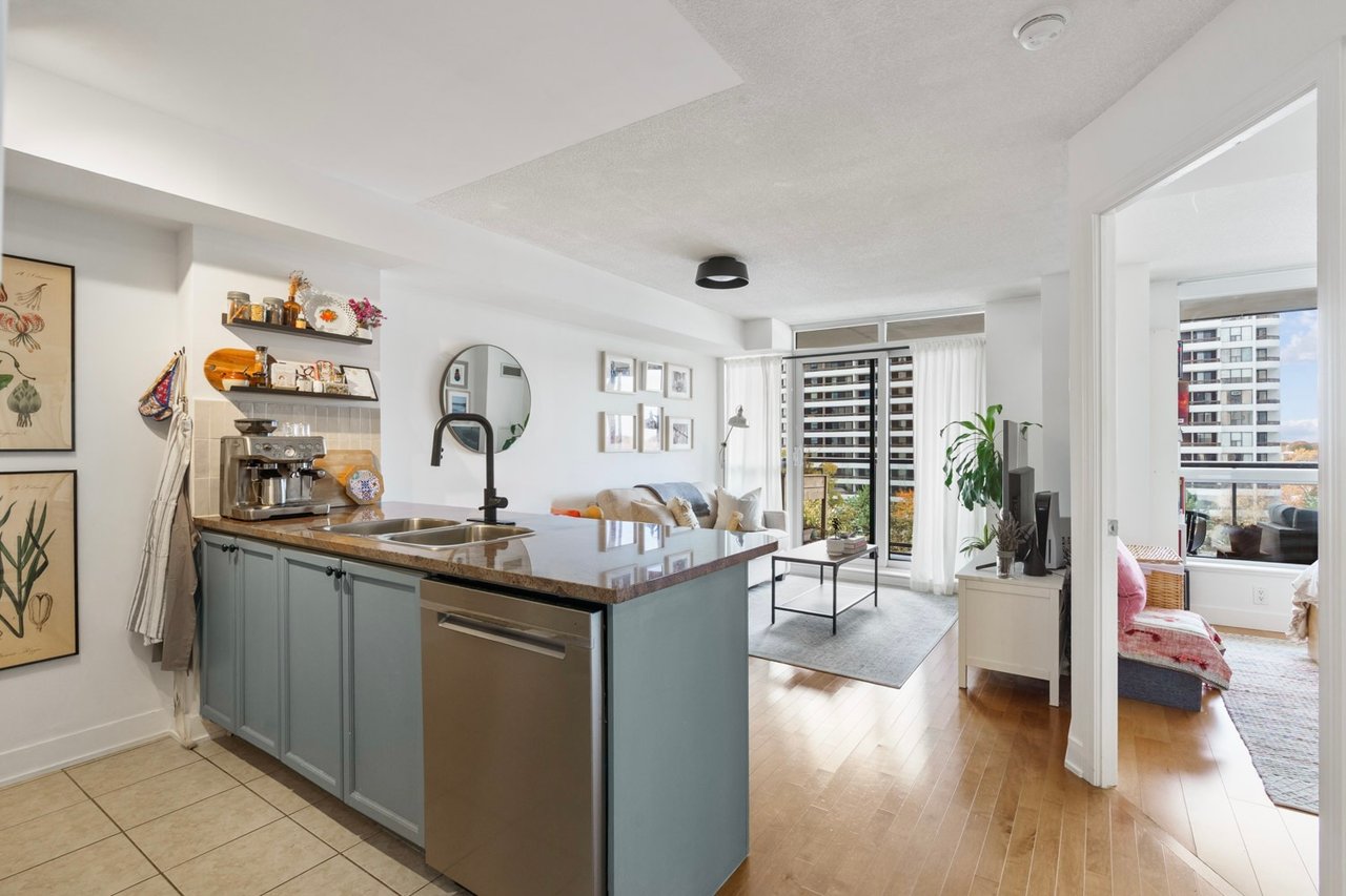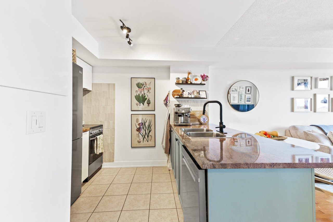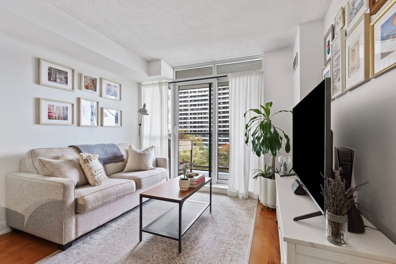 Here it is! Your very own High Park haven. Where history meets the horizon, this stylish one bedroom, one bathroom suite, with its large entertainer's balcony and al fresco sunset views, is the perfect accompaniment to the building's striking classical grandeur born of a heritage church site. Featuring a flawlessly functional layout, a beautifully renovated kitchen with granite countertops and new appliances. Storage is never an issue with the entrance's generous closet, the bedroom's double closet with built-in wardrobes, and a locker for any seasonal items. Designer touches are found all throughout: foyer accent-wall of playful fronds; straw-toned ceramic backsplash; remote-operated blackout blinds; and the woven bedroom light fixture. All awash in an abundance of natural light streaming through the floor to ceiling windows add to overall warmth. One of the showcase amenities is a ground-level, grassy courtyard with a BBQ that's perfectly suited for starlit soirées with friends and family. This legacy location marries the pulse of the city and the rhythms of nature. You're three minutes to the Subway and High Park's 400 acres of wanderlust where you can meander the leafy trails, and picnic under ancient oaks. Shop from hundreds of boutique, grocers, brewers, cafes, and restaurants along the adjacent Bloor West Village.