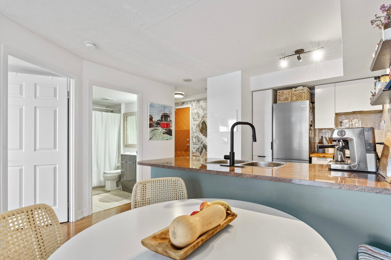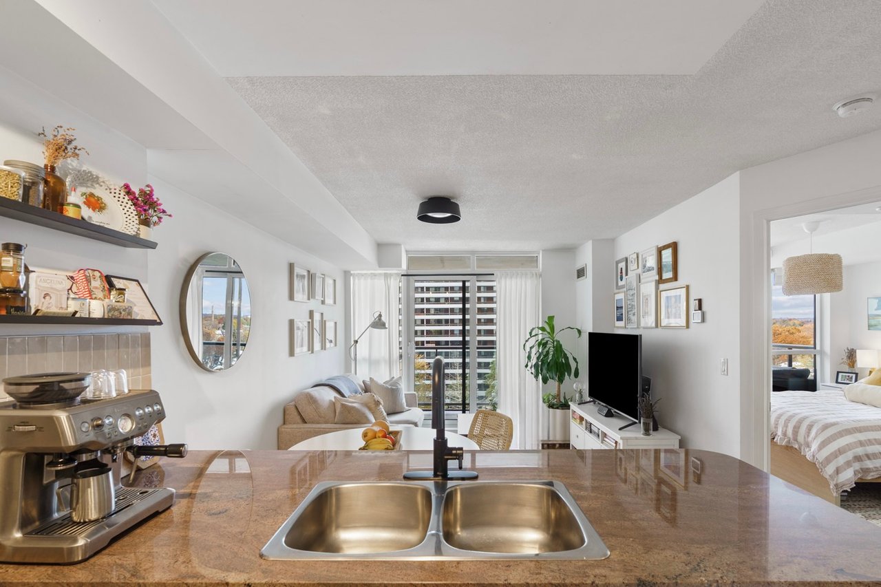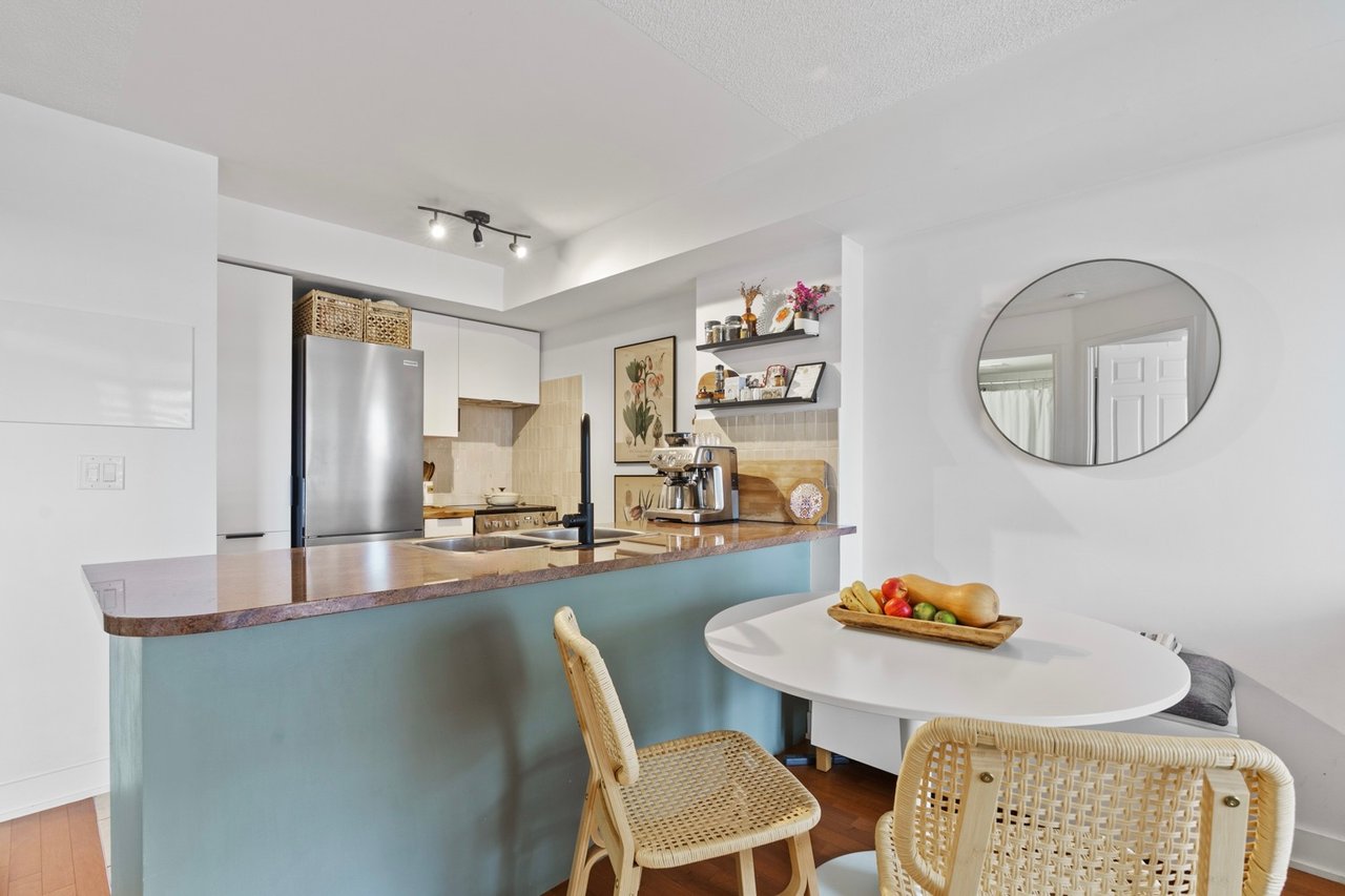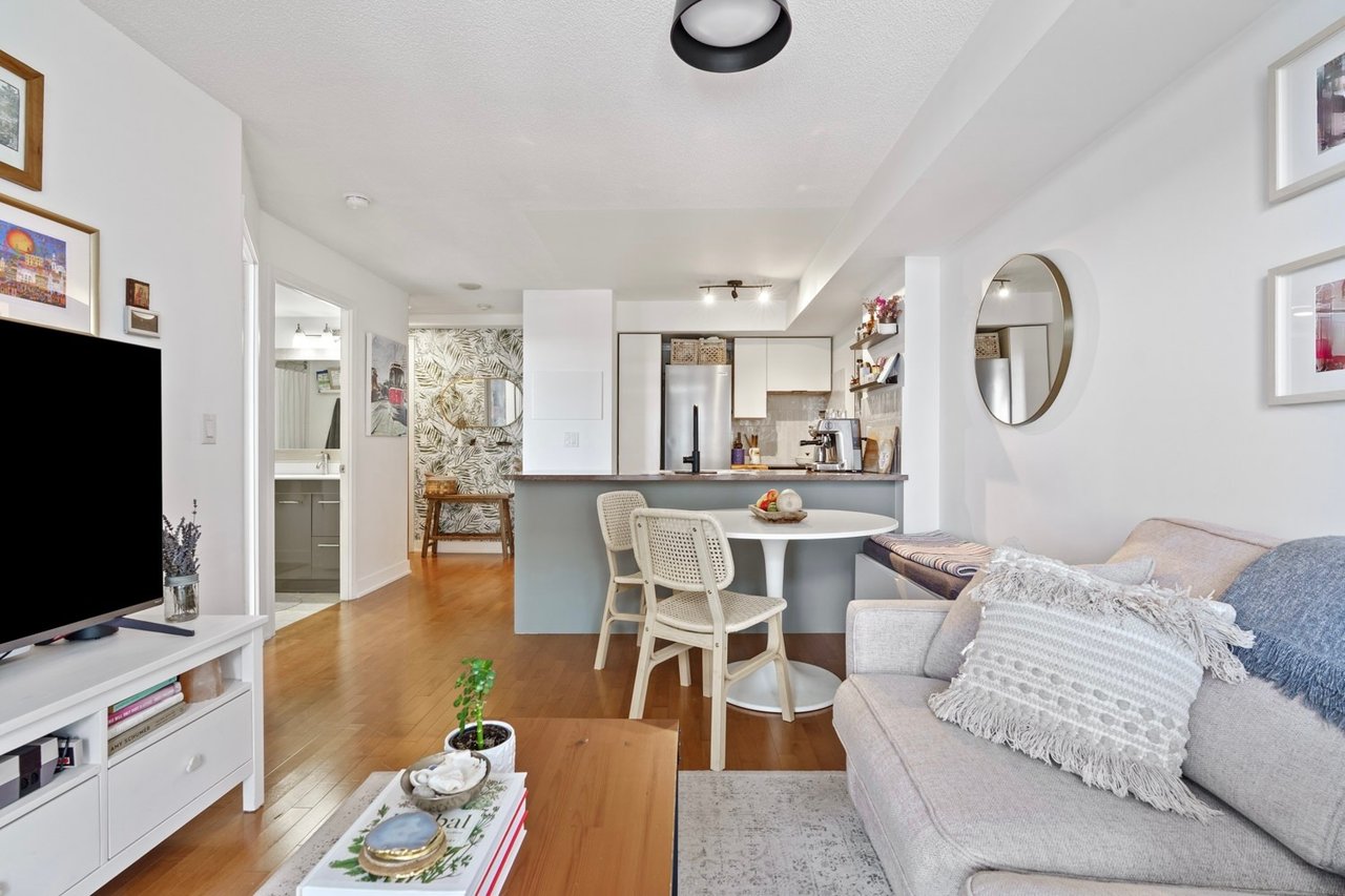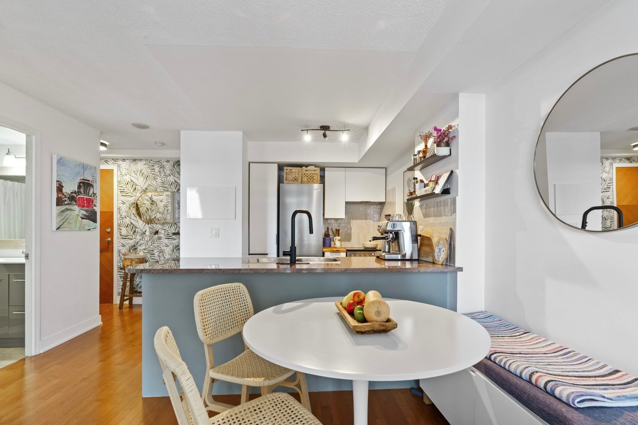Here it is! Your very own High Park haven. Where history meets the horizon, this stylish one bedroom, one bathroom suite, with its large entertainer's balcony and al fresco sunset views, is the perfect accompaniment to the building's striking classical grandeur born of a heritage church site. Featuring a flawlessly functional layout, a beautifully renovated kitchen with granite countertops and new appliances. Storage is never an issue with the entrance's generous closet, the bedroom's double closet with built-in wardrobes, and a locker for any seasonal items. Designer touches are found all throughout: foyer accent-wall of playful fronds; straw-toned ceramic backsplash; remote-operated blackout blinds; and the woven bedroom light fixture. All awash in an abundance of natural light streaming through the floor to ceiling windows add to overall warmth. One of the showcase amenities is a ground-level, grassy courtyard with a BBQ that's perfectly suited for starlit soirées with friends and family. This legacy location marries the pulse of the city and the rhythms of nature. You're three minutes to the Subway and High Park's 400 acres of wanderlust where you can meander the leafy trails, and picnic under ancient oaks. Shop from hundreds of boutique, grocers, brewers, cafes, and restaurants along the adjacent Bloor West Village.