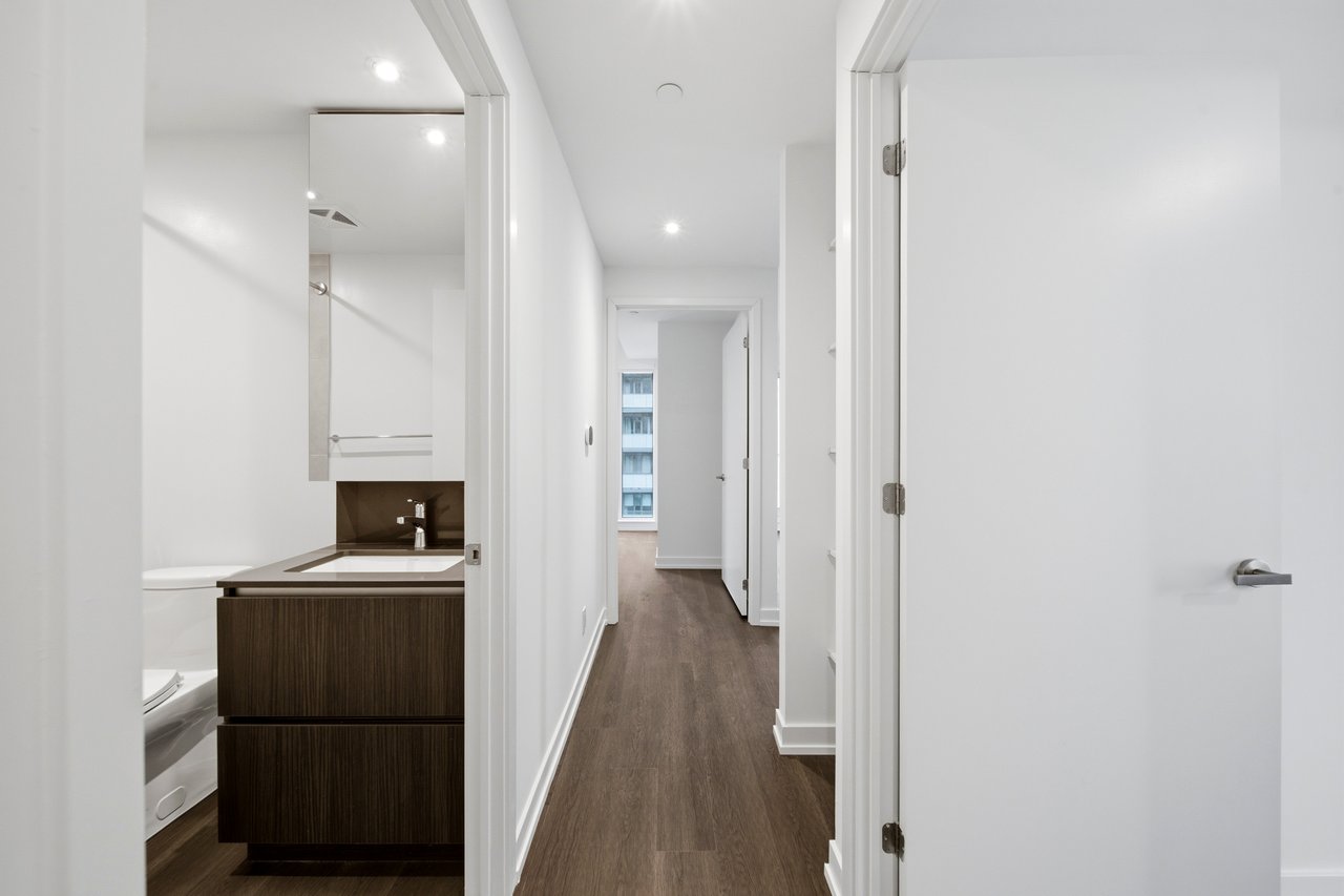 Welcome to SVNTY, a brand-new residence in the heart of Liberty Village. From the moment youenter the lobby to the thoughtfully designed suites, every detail has been curated to deliver arefined living experience, complete with premium finishes and an exceptional offering ofamenities. Be the first to call this beautifully designed two-bedroom corner suite home.Thoughtfully designed for functional living, the modern kitchen with a large island openseffortlessly into the living and dining areas, enhanced by expansive windows that fill thespace with natural light and extend onto a private balcony. The suite showcases premiumbathroom finishes, including a private primary ensuite, along with spacious closets, vinylflooring throughout, and smart thermostats, all designed for an elevated living experience.SVNTY offers an impressive selection of amenities, including a state-of-the-art fitness centre,yoga studio, multiple resident lounges, dining room, games room, and screening lounge. Outdoorspaces include the SVN Terrace and Skyview Terrace, complete with fire pits and BBQs, wellsuited for relaxing or entertaining. Additional features include a co-working lounge with Wi-Fiand a lobby café available to all residents. Your future home is ideally situated just stepsfrom Altea Active, grocery stores, LCBO, banks, parks, the waterfront, public transit, and avibrant mix of local shops and restaurants, along with everything Liberty Village has to offer.