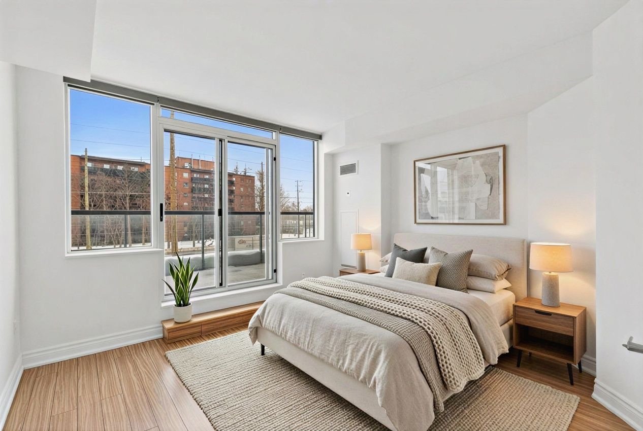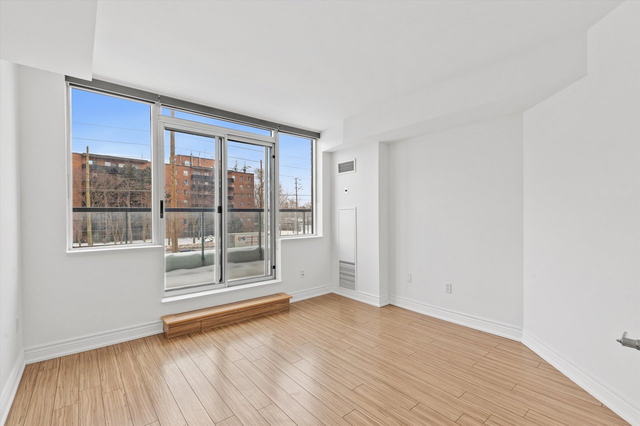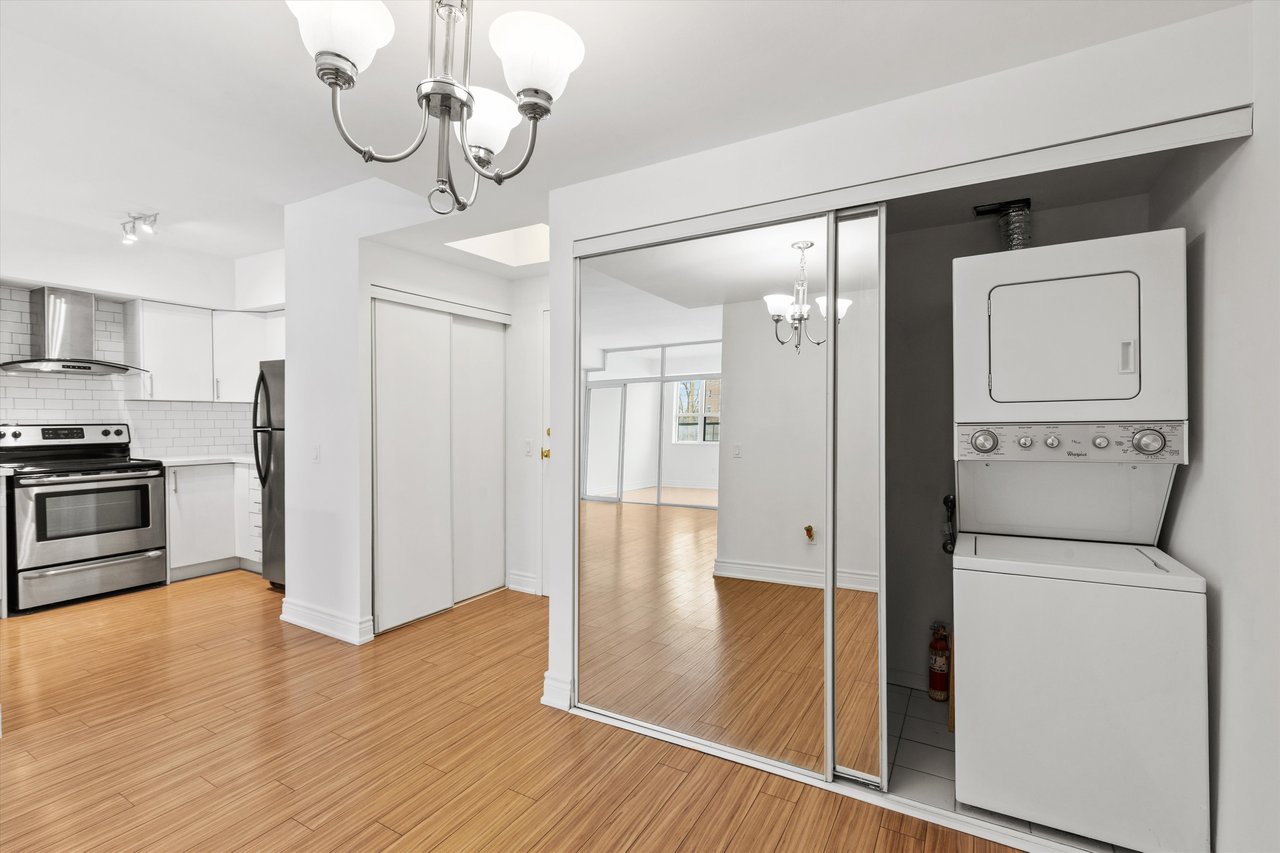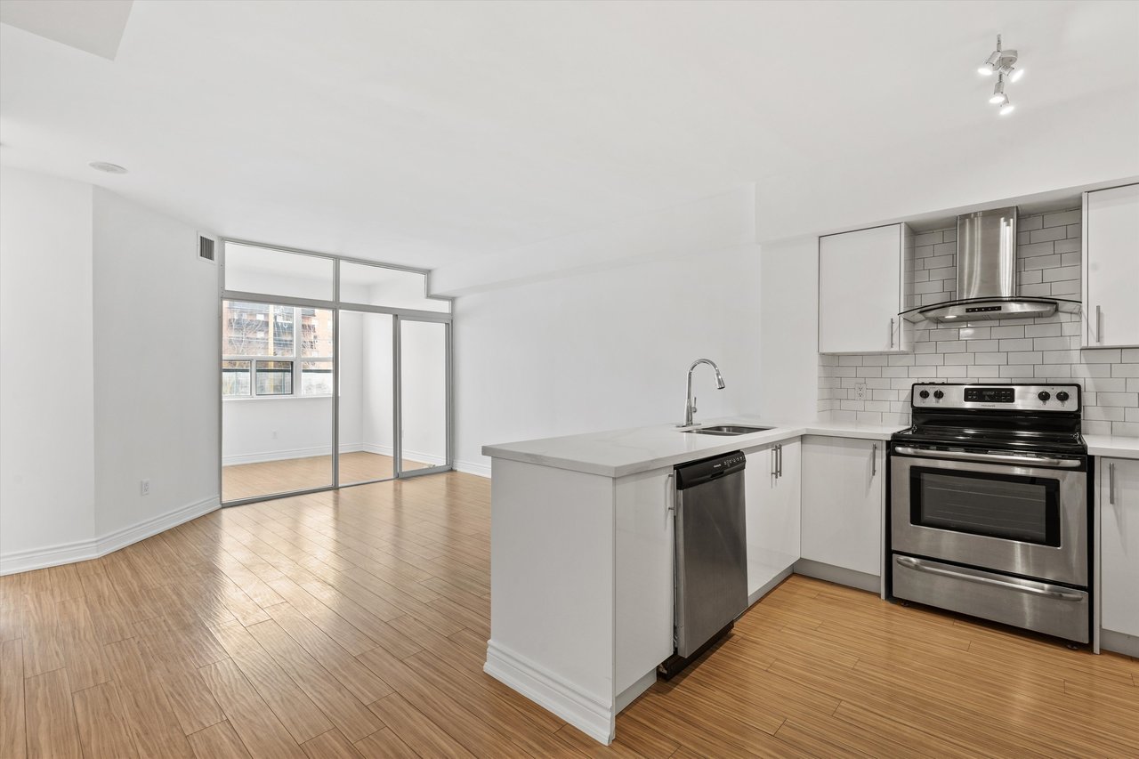 Presenting a superb 1-bedroom + den condo set along the Yonge Street corridor in an established Thornhill community. A perfectly proportioned and planned layout offers generously sized principal rooms, plus a glass-enclosed den that can easily function as a second bedroom or home office - ideal for a single professional, couple, or young family seeking a smart and flexible living space. This unit features a beautifully updated and highly functional kitchen with expansive quartz countertops, full-size stainless steel appliances, a subway tile backsplash, and a practical double sink, blending modern style with timeless appeal. Open-concept living shines here, with the kitchen perfectly positioned to overlook both the dining and living areas, creating an inviting space for entertaining and everyday life. Large sliding glass doors in both the bedroom and den lead to a full-length balcony, seamlessly extending your living space outdoors. Freshly updated throughout with new paint, smooth plaster ceilings, LED light fixtures, custom roller blinds, a new kitchen faucet, an updated bathroom mirror, and the convenience of an ensuite washer and dryer, the unit also includes one underground parking space and a storage locker. Situated in a prime Yonge Street location just steps to groceries, restaurants, cafés, and community services, residents also enjoy excellent connectivity with easy access to transit and major roadways. Set within an established, family-friendly community known for its stable and desirable neighbourhood feel, the area features a pleasant mix of townhomes, detached homes, and condominiums surrounded by mature landscaping.