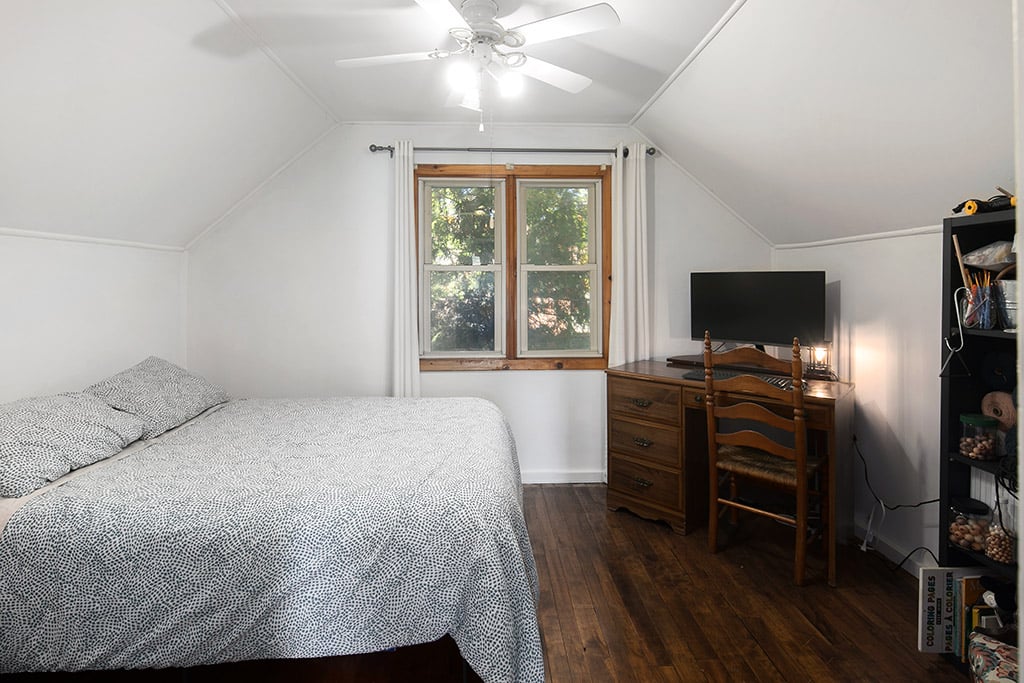 Welcome to this charming 1 1/2 storey home, brimming with warmth and natural light! Step inside to find original hardwood floors, a large west-facing living room window with gorgeous sunsets, and a new patio sliding door (2022) that opens to a spacious back deck, perfect for soaking up the sun or entertaining. The farmhouse kitchen radiates cozy charm, and a brand new bathroom (2025) adds a touch of modern style. Recent additional updates include a new roof (2022), dishwasher, washer and dryer (2024 - all with transferable warranty), and refinished oak steps up to the second floor. The unfinished basement offers 7-foot ceilings and ample storage, ready for your finishing touches. Enjoy your private backyard backing onto quaint park, complete with wooden planters, clothes line, pear tree & a garden shed. Located close to schools, amenities, hospital, YMCA & more. This home is a perfect balance of warmth, character and ready for its new owner to fall in love! Perfect for first-time buyers, or investors with proven rental potential!!