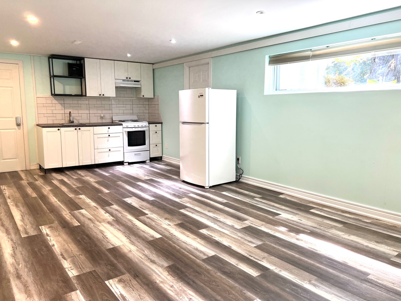 Beautifully Finished Lower-Level Apartment Available For Lease! This Self-Contained Basement Suite Features A Spacious Open-Concept Living Area, Modern Kitchen, And Private 3-Piece Bathroom. Enjoy The Convenience Of Private Ensuite Laundry With Your Own Washer And Dryer. Abundant Natural Light From Large Windows Complements The Sleek Laminate Floors Throughout. Ideal For Professionals Or Small Families Seeking A Quiet, Comfortable Space With A Separate Entrance And Close Proximity To Transit, Shopping, And Parks. No Smoking, No Pets. Utilities Will Be Calculated Based On The Number Of Occupants. Don't Miss This Fantastic Opportunity!